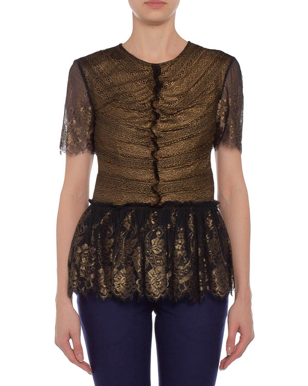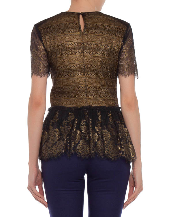 Топ с коротким рукавом и кружевной баской. Застежка на спине на пуговицу.