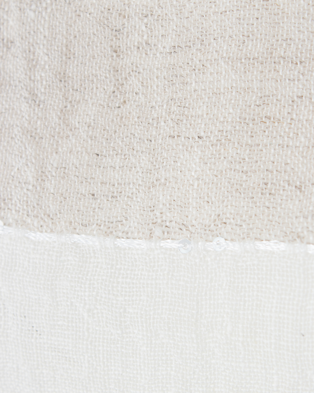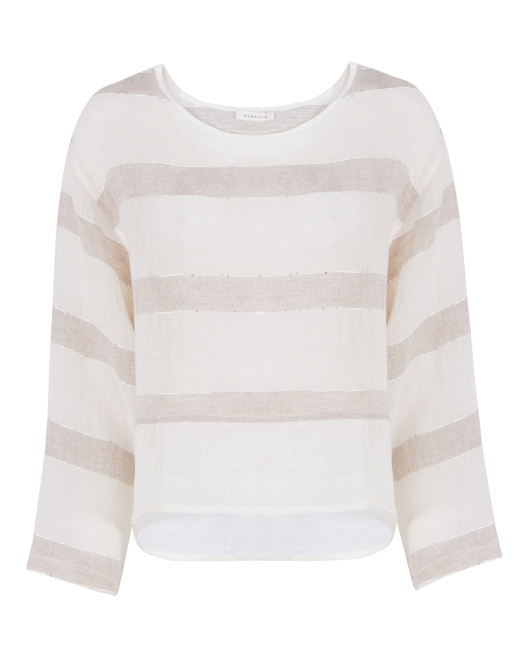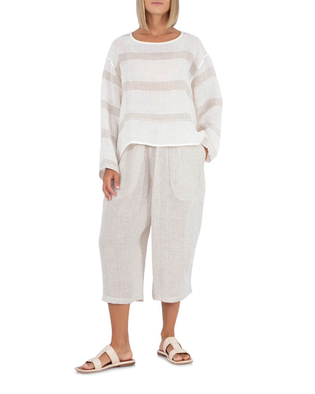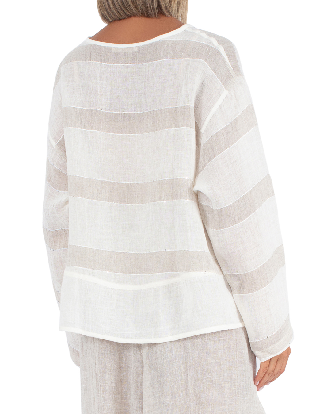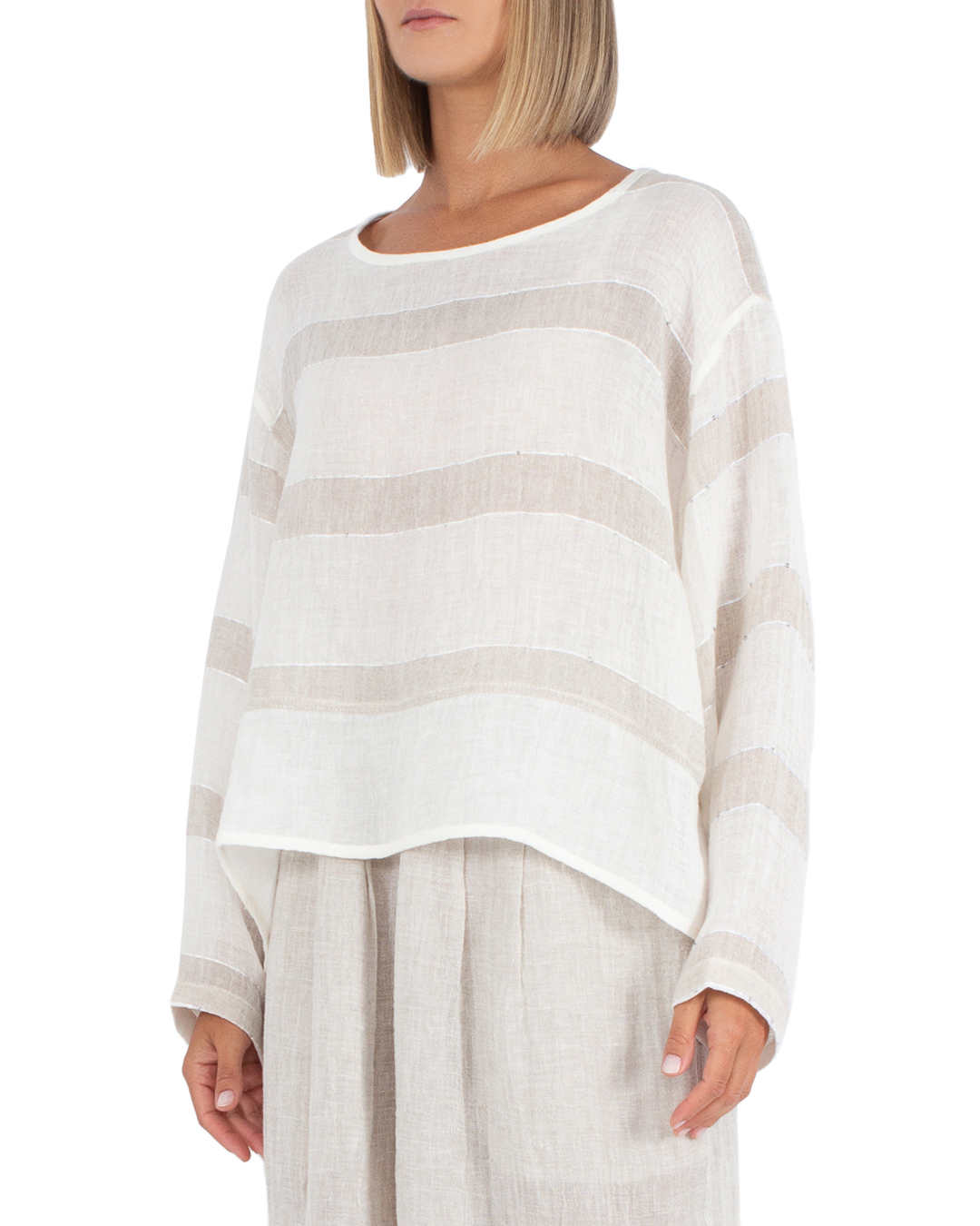 Топ MAURIZIO сшит из натурального льна белого яичного оттенка. Модель свободного силуэта с длинными объемными рукавами.