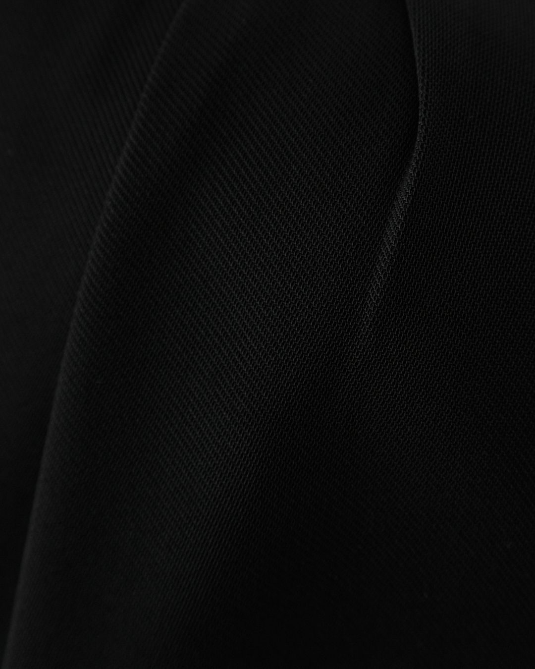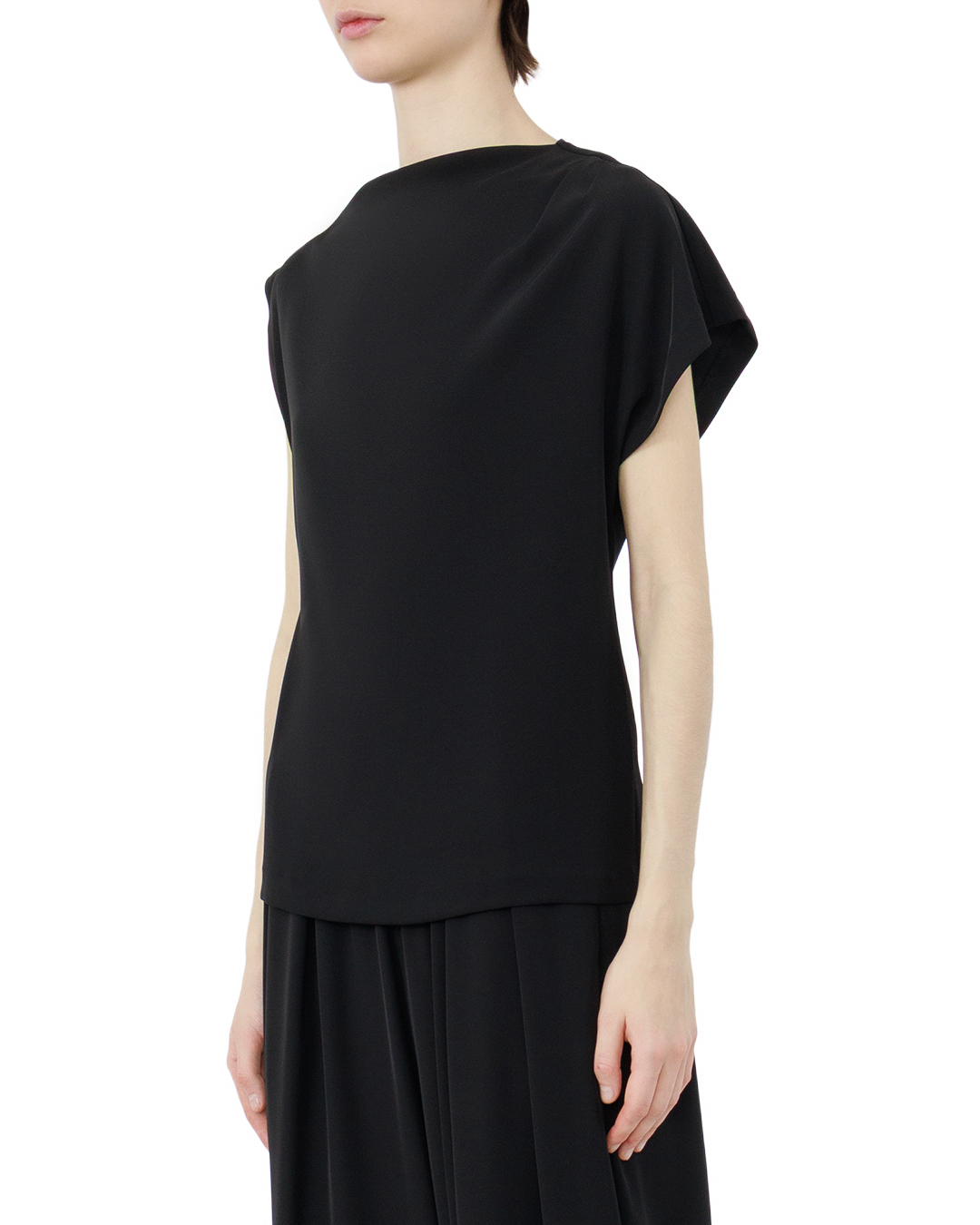 Эта чёрная блуза — воплощение лаконичной элегантности. Свободный крой с лёгкой драпировкой создаёт непринуждённый, но изысканный силуэт, подчёркивая женственность без излишеств. Рукава добавляют образу лёгкости и динамики, а округлый вырез горловины формирует гармоничный акцент на линии шеи. Минималистичная отделка и отсутствие декоративных элементов делают эту модель универсальной: она легко впишется как в деловой, так и в повседневный гардероб. Чистота линий и глубокий чёрный цвет придают блузе сдержанную роскошь и делают её стильным базовым элементом образа.