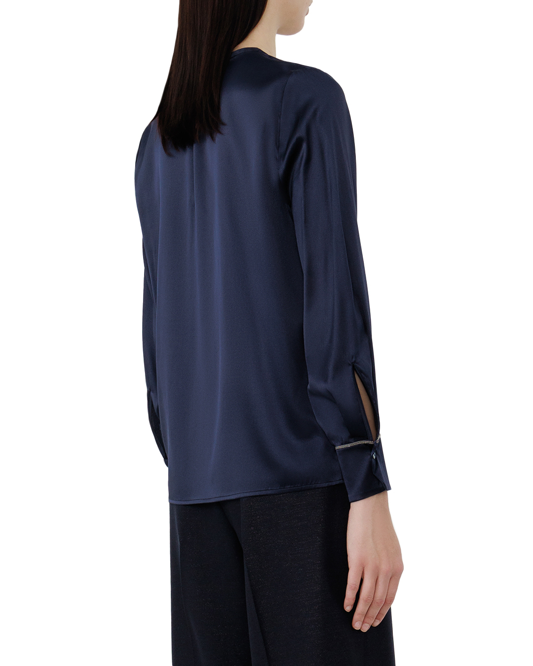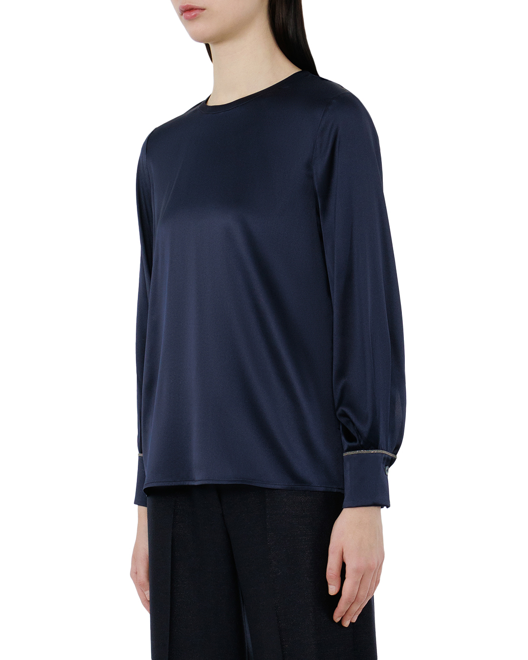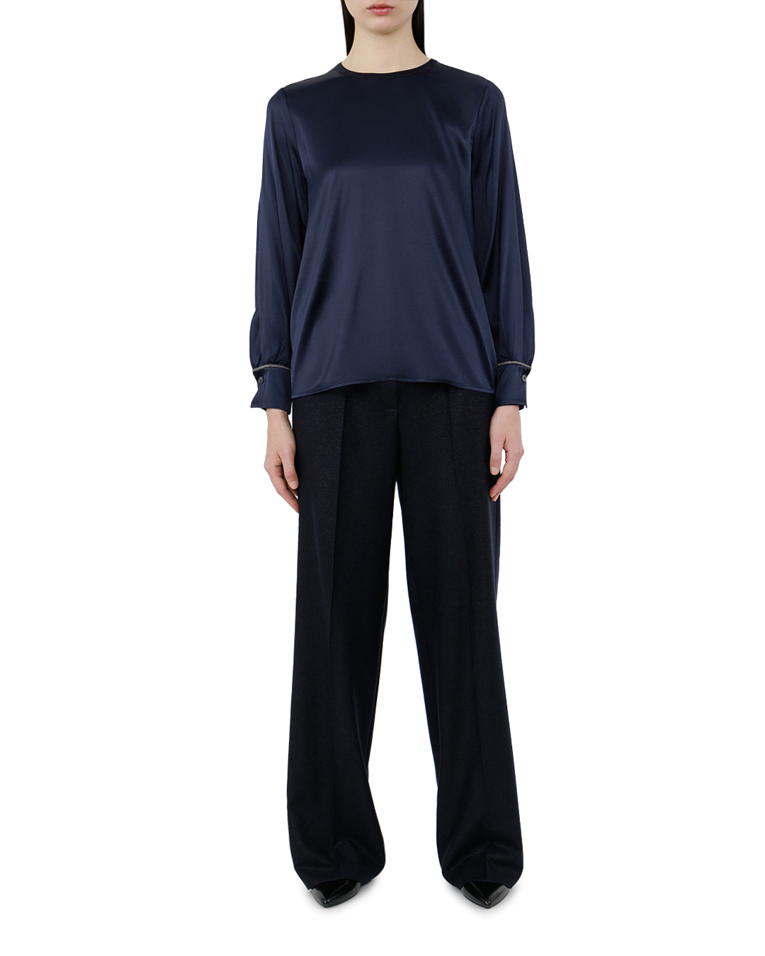 Эта блуза излучает элегантность и роскошь благодаря своему изысканному материалу и утонченному дизайну. Выполненная из гладкого шелка глубокого насыщенного цвета, она обладает мягким блеском, который добавляет всему образу изящество и свежесть. Круглый вырез горловины создает классический силуэт, подчеркивая линию шеи и придавая аккуратную завершенность. Длинные рукава с легкой сборкой у манжет придают изделию динамику и воздушность, создавая легкий акцент на запястьях. Манжеты украшены деликатной отделкой, которая добавляет нотку изысканности. Конструкция блузы свободного кроя обеспечивает идеальное сочетание комфорта и стиля, подходя как для делового, так и для вечернего образа. Тонкие швы и внимательное исполнение деталей свидетельствуют о высоком качестве изготовления. Эта блуза – это настоящее воплощение утонченной женственности и современного шика, идеально подходящая для создания запоминающегося образа на любое событие.