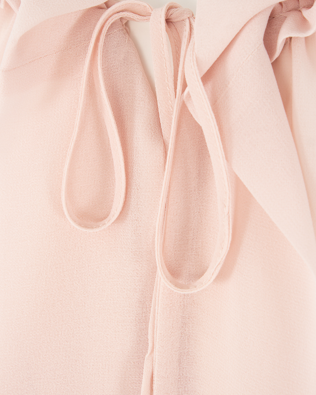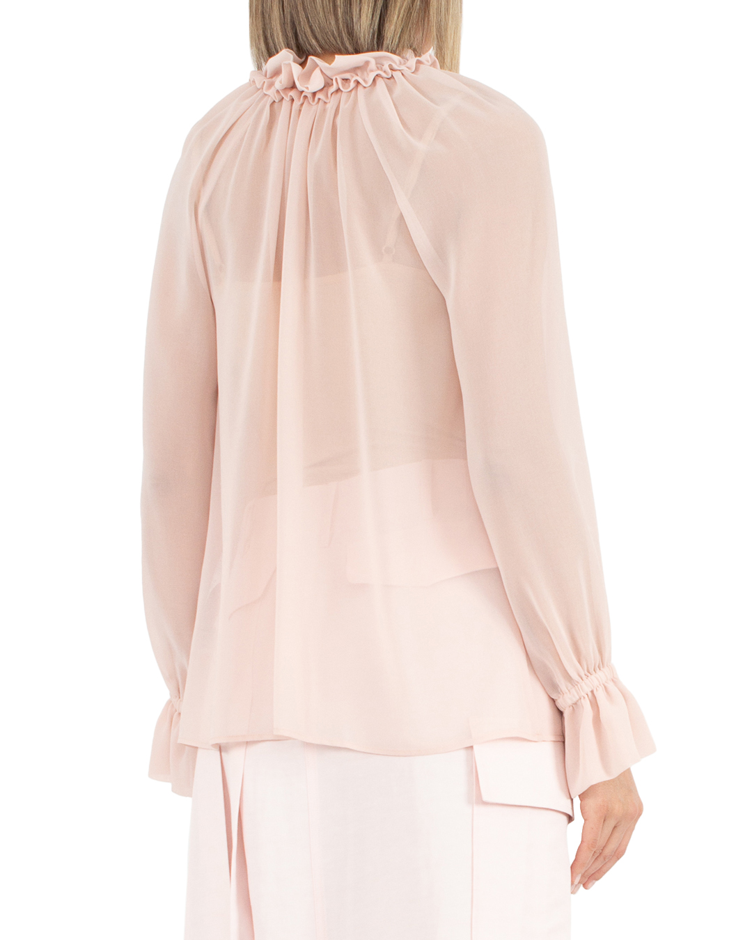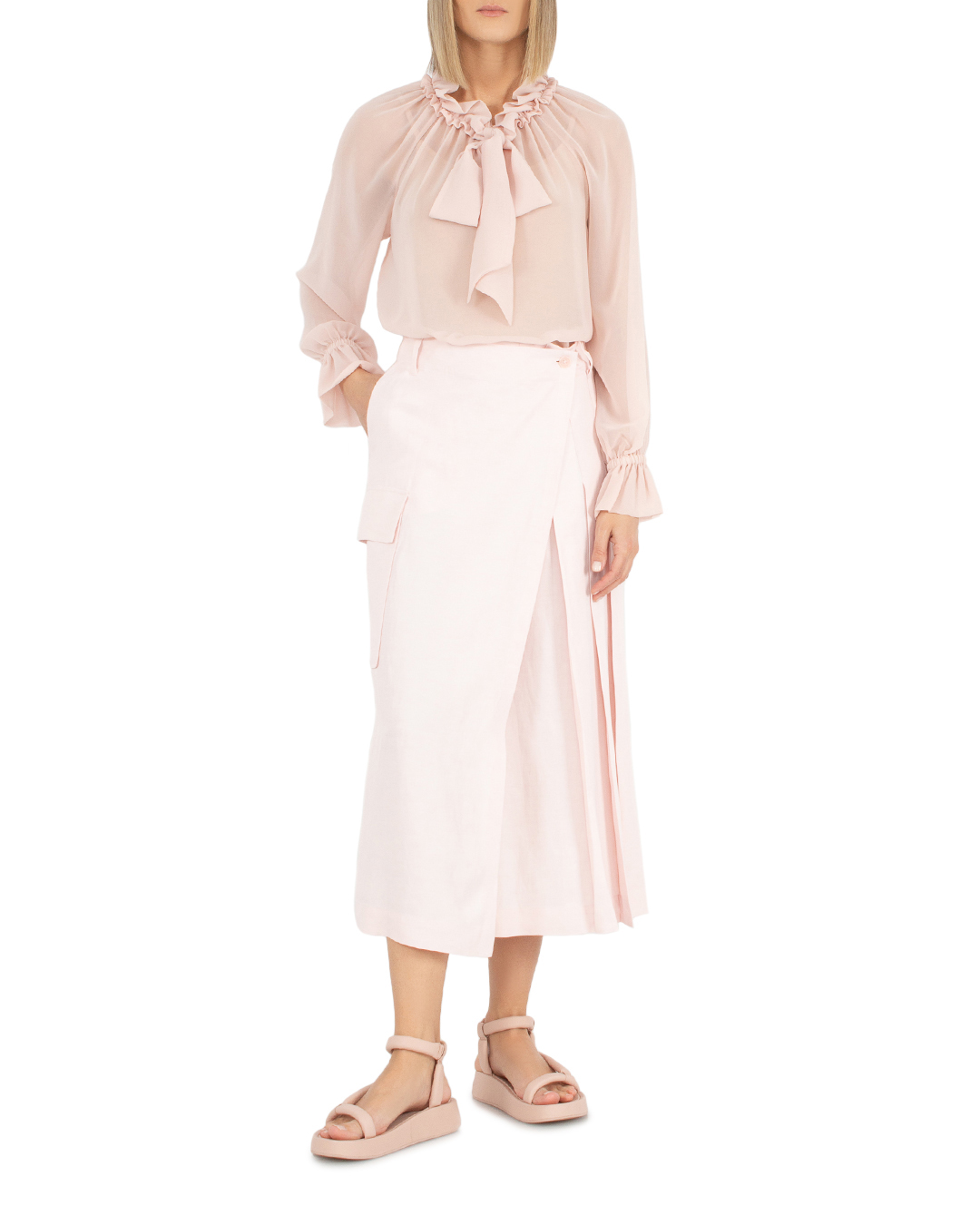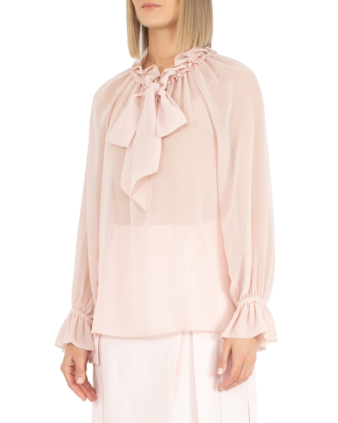 Блуза P.A.R.O.S.H. из тонкого полупрозрачного материала с завязками на бант. Прямой струящийся силуэт с длинными рукавами.