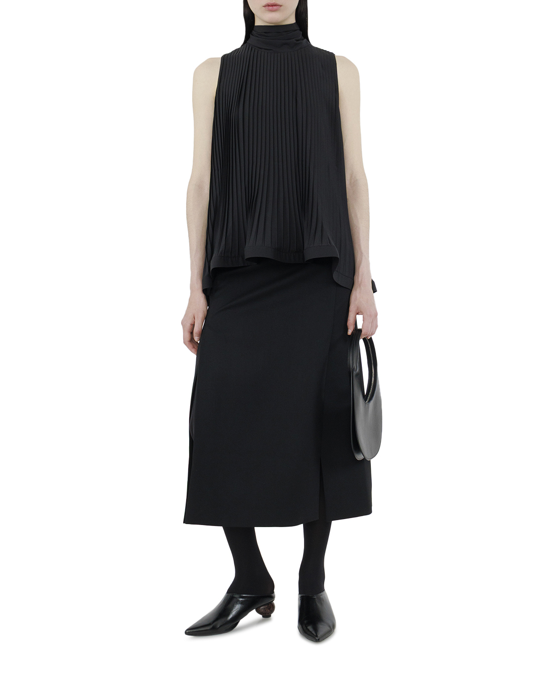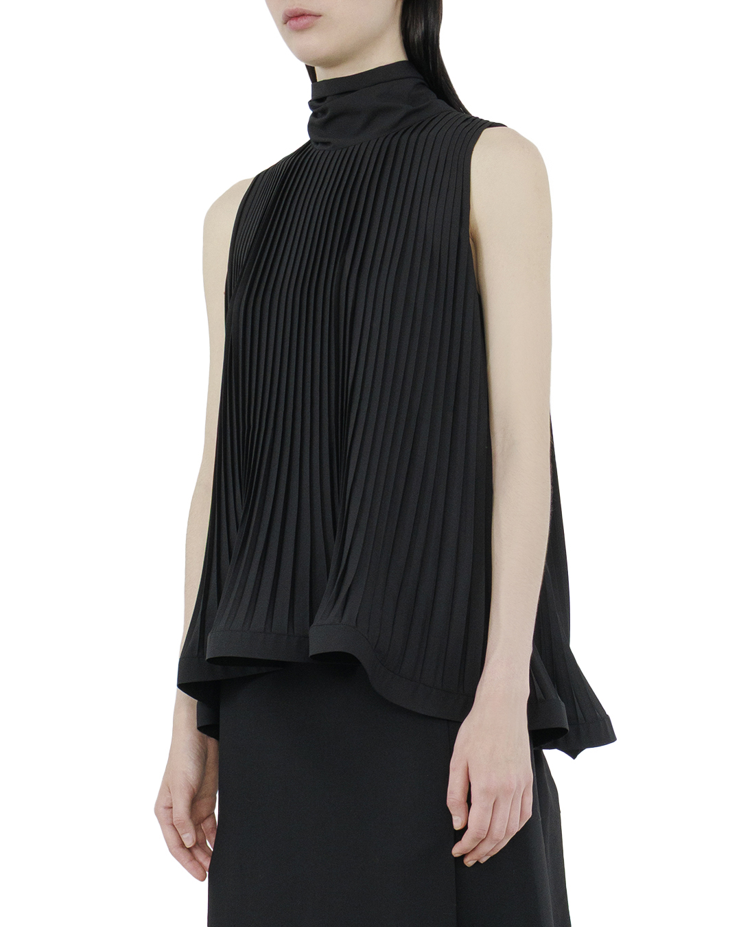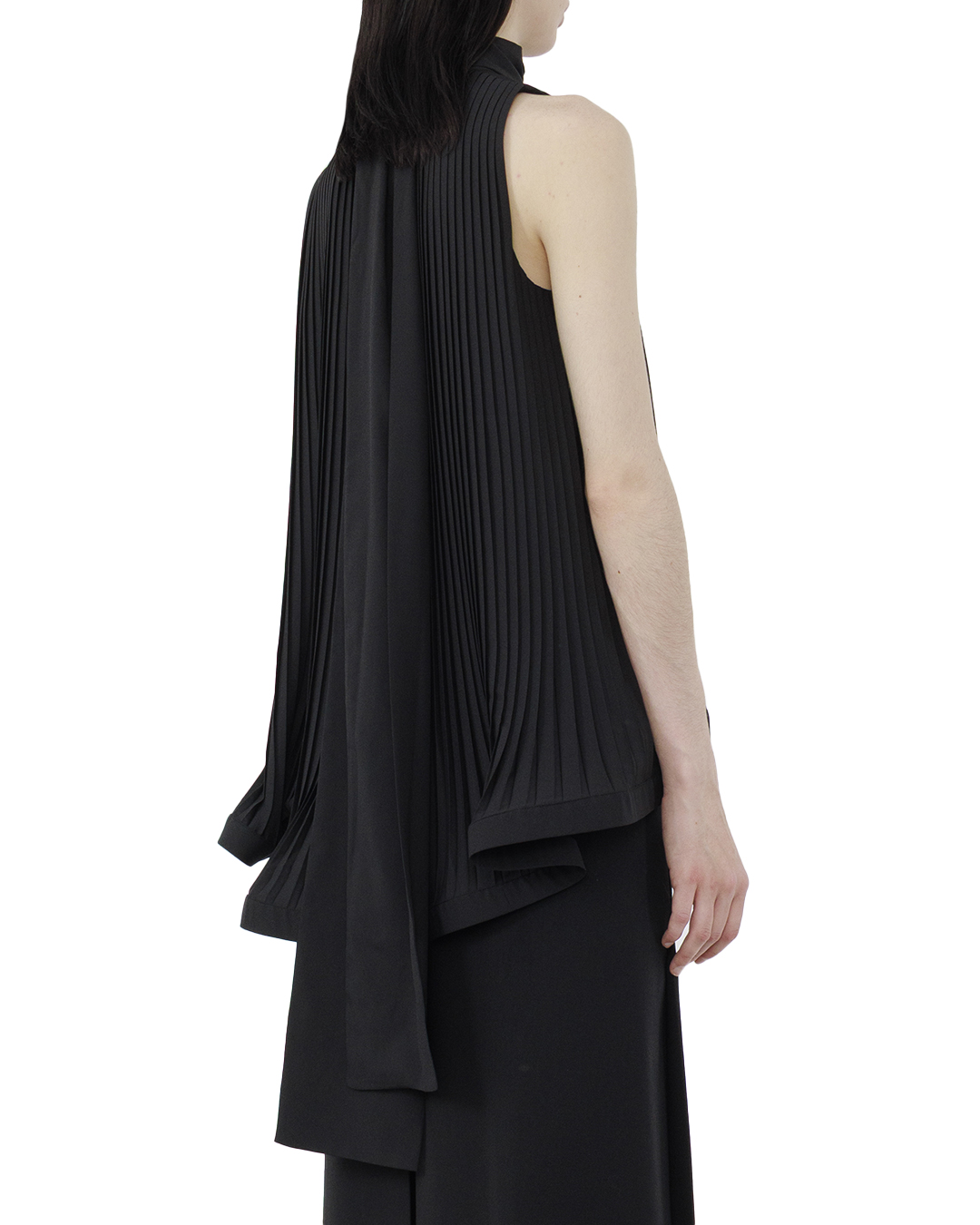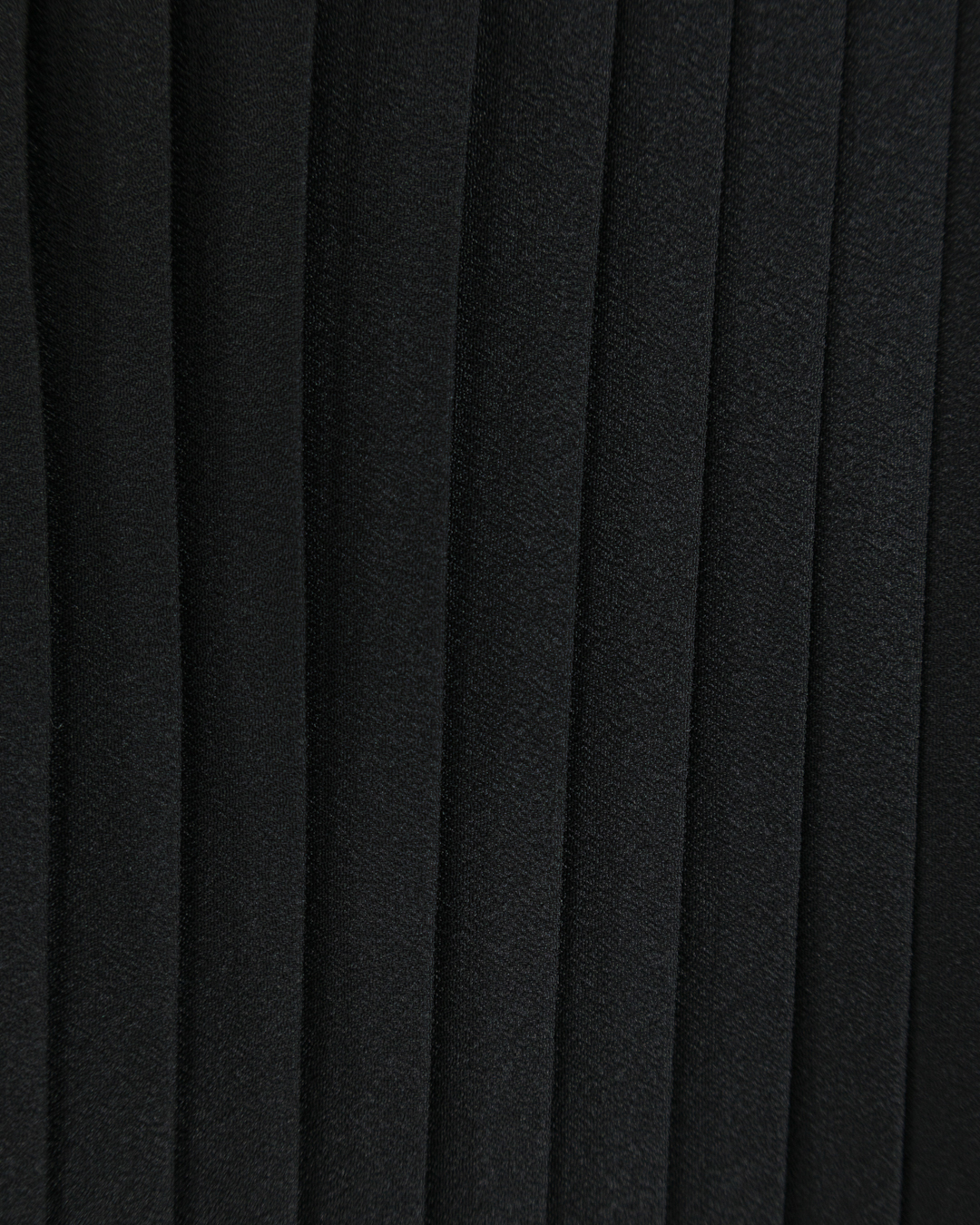 Этот топ с завязкой на спине воплощает в себе элегантность и современную утончённость. Он выполнен из легкой драпирующейся ткани, которая мягко дочеркивает женственный силуэт. Изюминка модели — это завязка на спине, добавляющая изящную пикантность и создающая эффектный акцент.  Передняя часть украшена деликатными плиссировками, которые добавляют текстурный контраст и динамику движений. Высокий воротник-хомут придаёт образу строгость и благородство, отлично гармонируя с игривостью открытой спинки.  Края изделия обработаны узким кантом, что придаёт завершённый вид и долговечность в носке. Этот топ станет идеальной основой как для изысканного вечернего образа, так и для модного повседневного наряда.