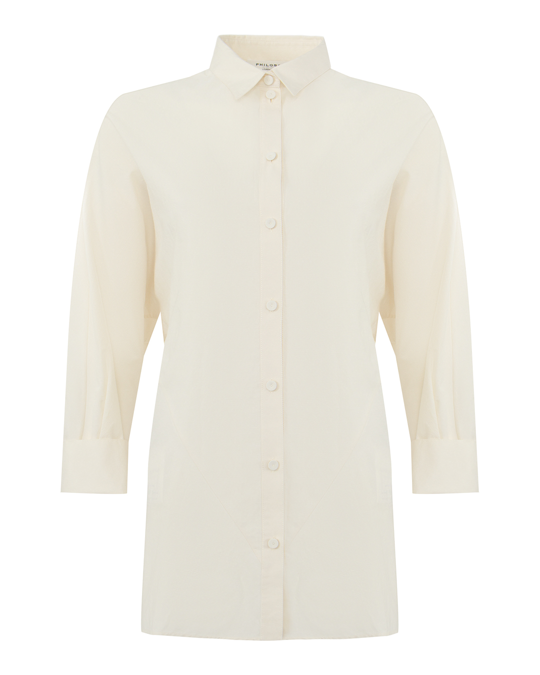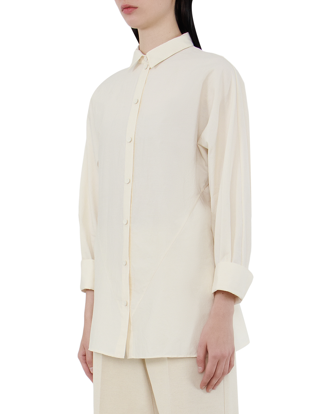 Эта блуза воплощает концепцию совершенства в классическом стиле, являясь ключевым элементом элегантного гардероба. Выполненная из высококачественного хлопка, она обеспечивает комфорт и стильный внешний вид. Традиционный отложной воротник придаёт строгую изысканность, плавно переходя в ровную линию планки, которая украшена аккуратными однотонными пуговицами. Прямой силуэт дарит свободу движения, сохраняя при этом чёткие линии, что позволяет адаптировать модель под разные образы – от деловых до повседневных. Длинные рукава с классическими манжетами акцентируют внимание на утончённости, а тонкие защипы добавляют структурности и динамики. Лаконичные линии и детали делают эту блузу незаменимой в формировании безупречного и элегантного образа.