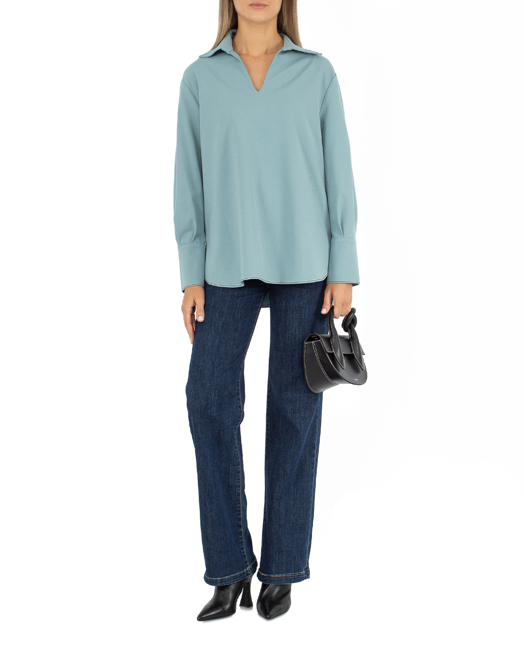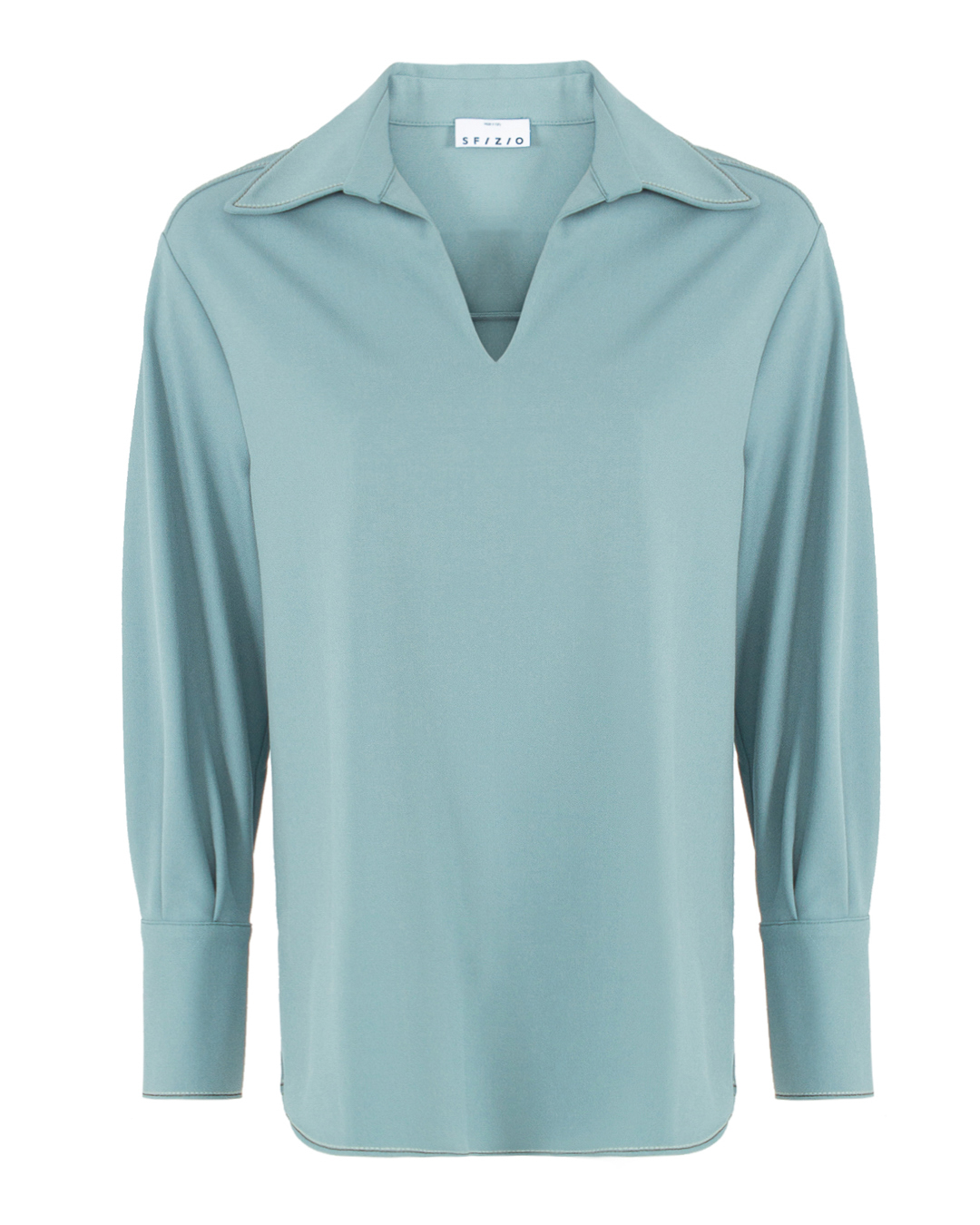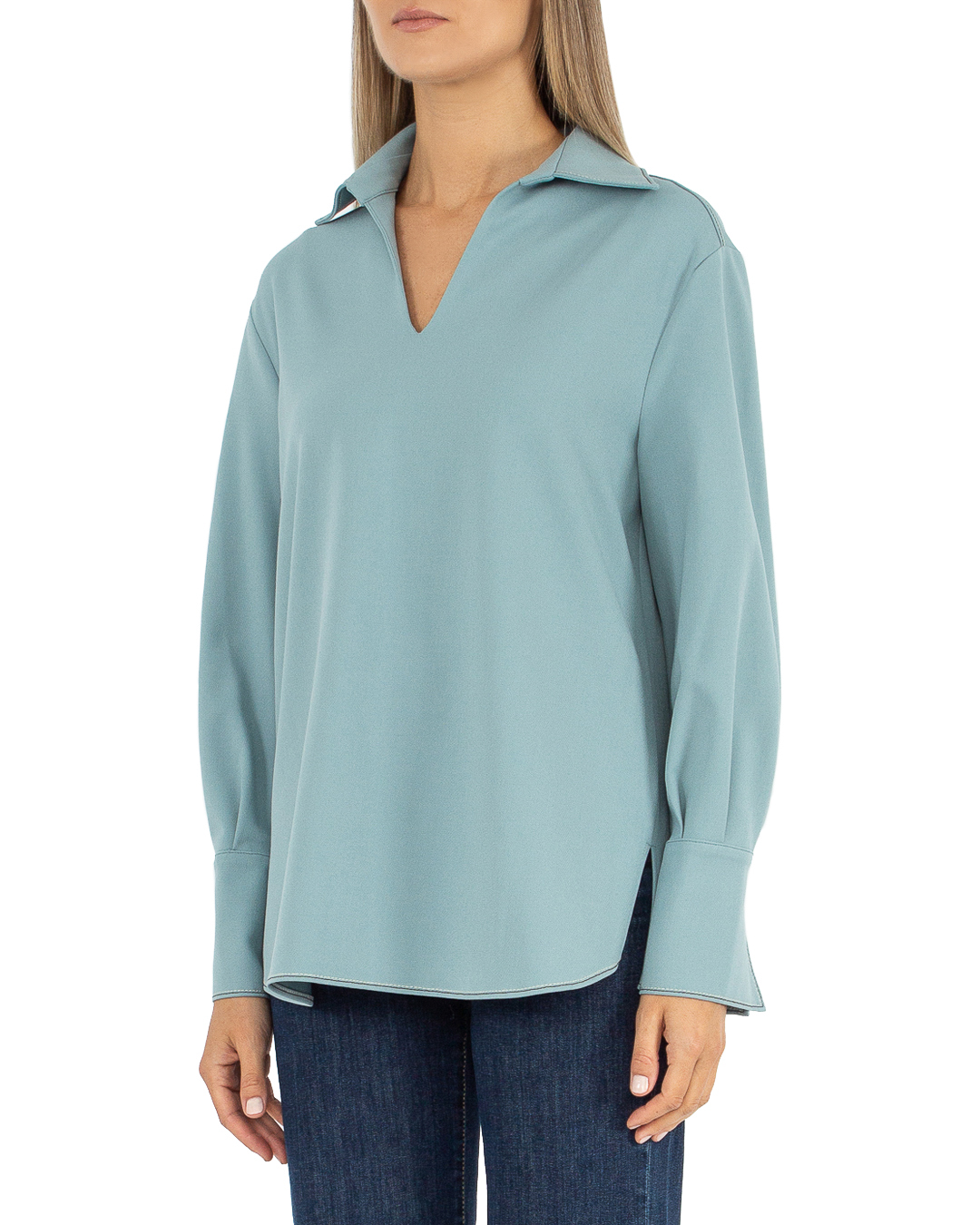 Блуза Sfizio из вискозы с контрастной строчкой. Модель свободного силуэта с отложным воротником и закругленной линией низа.