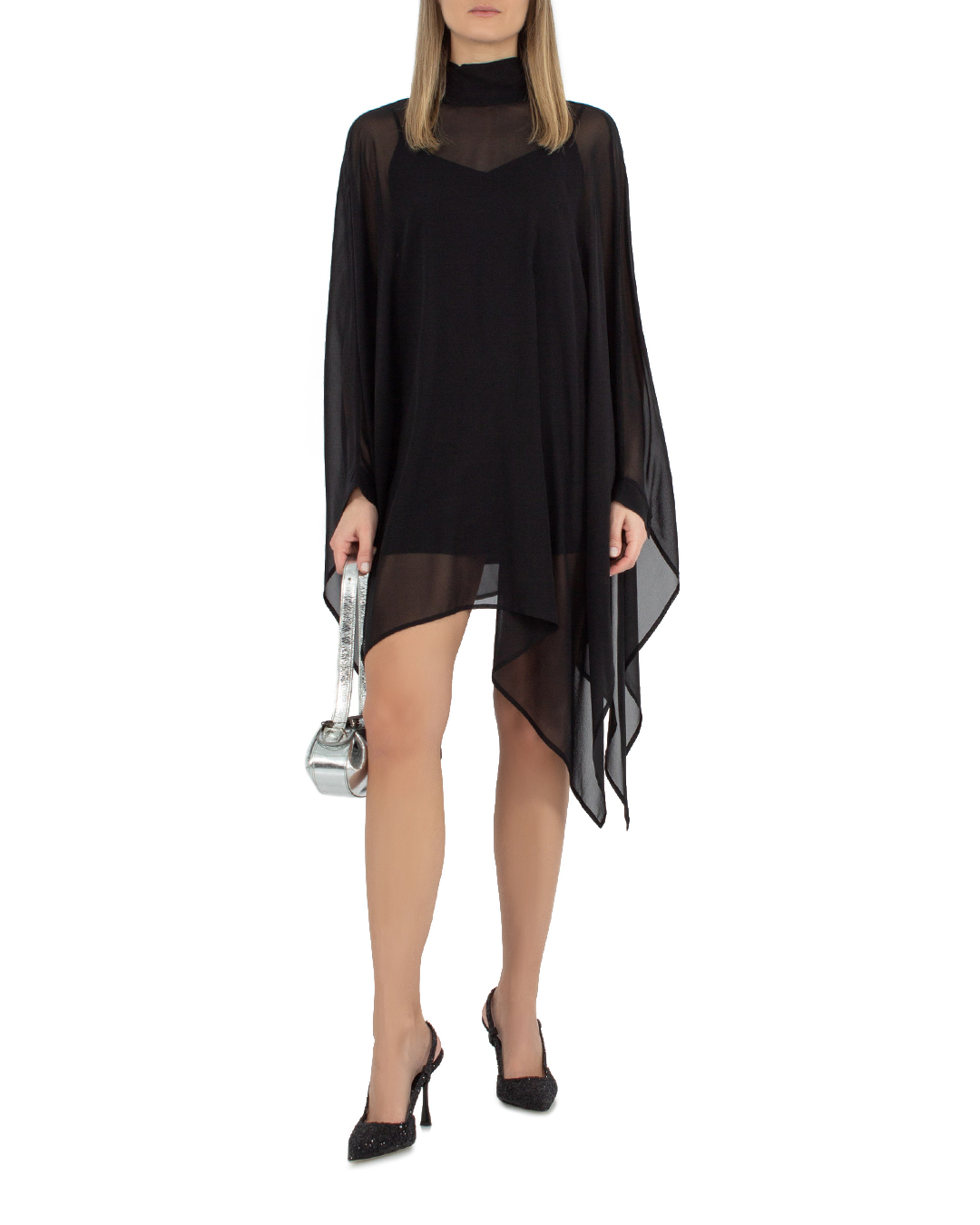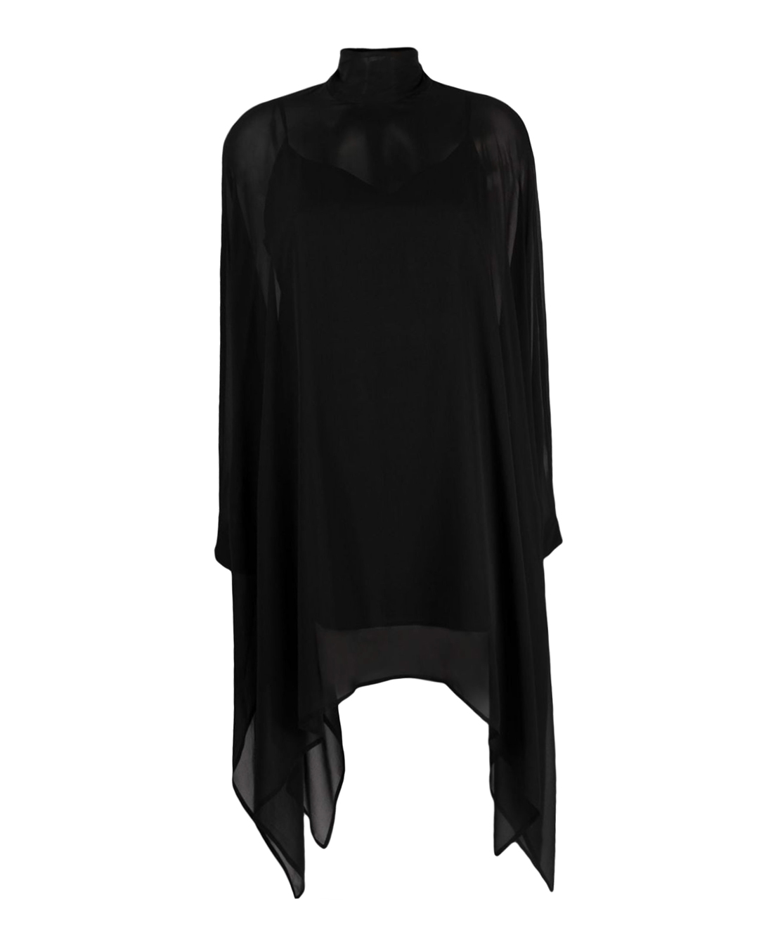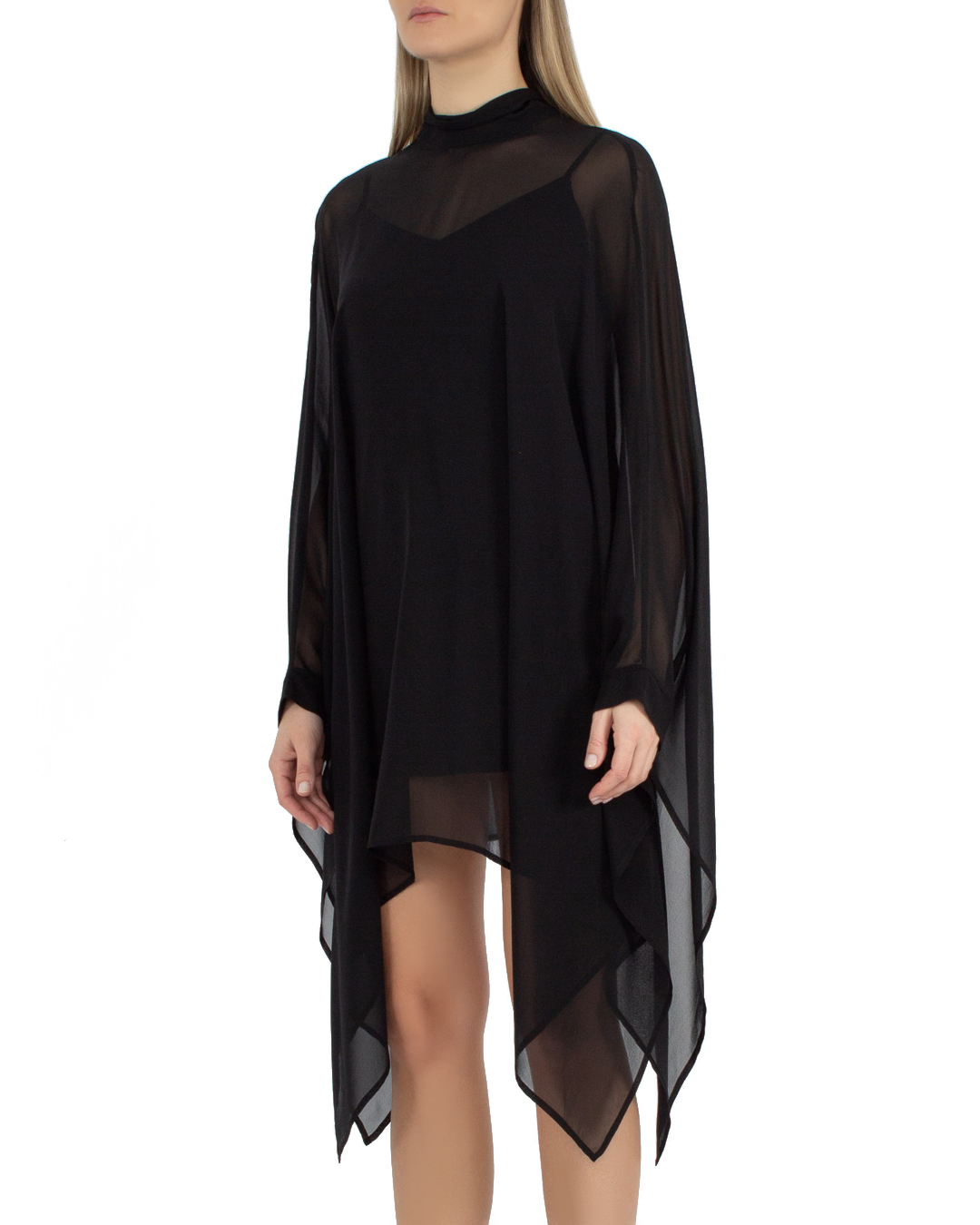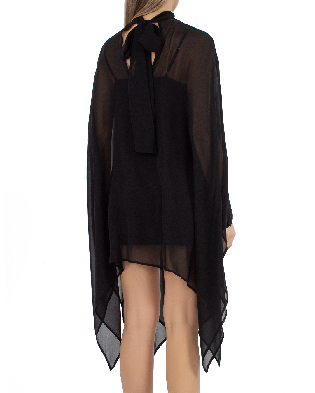 Блуза P.A.R.O.S.H. из полупрозрачного шелка с нижним топом на бретелях. Модель асимметричной длины с широкими завязками на спине.