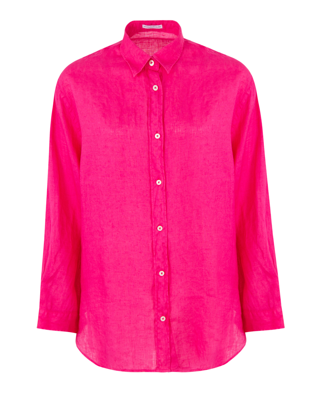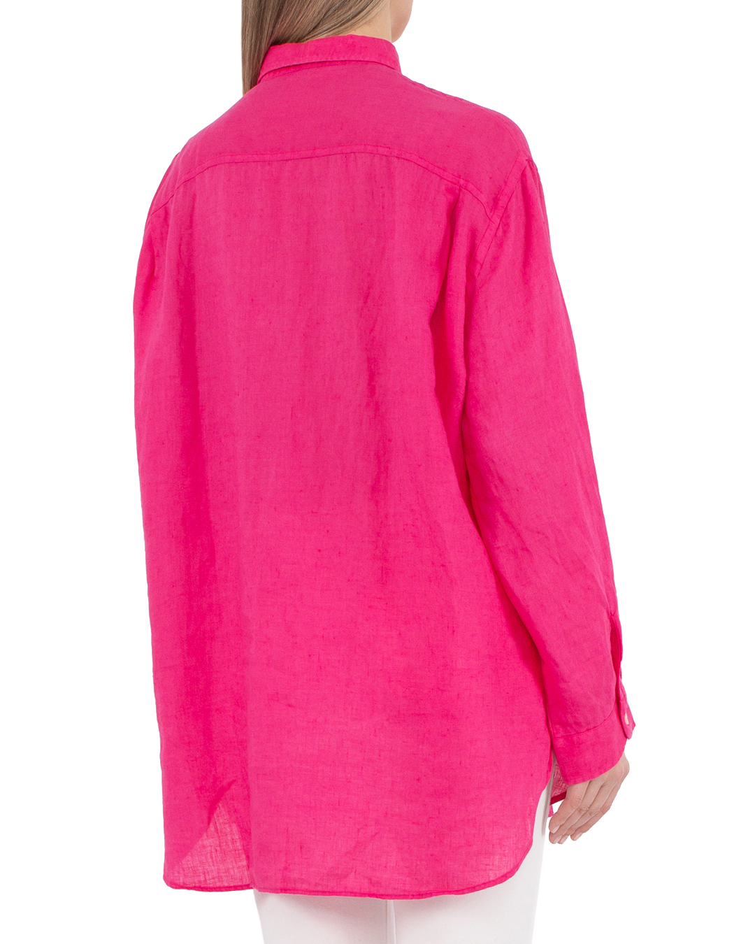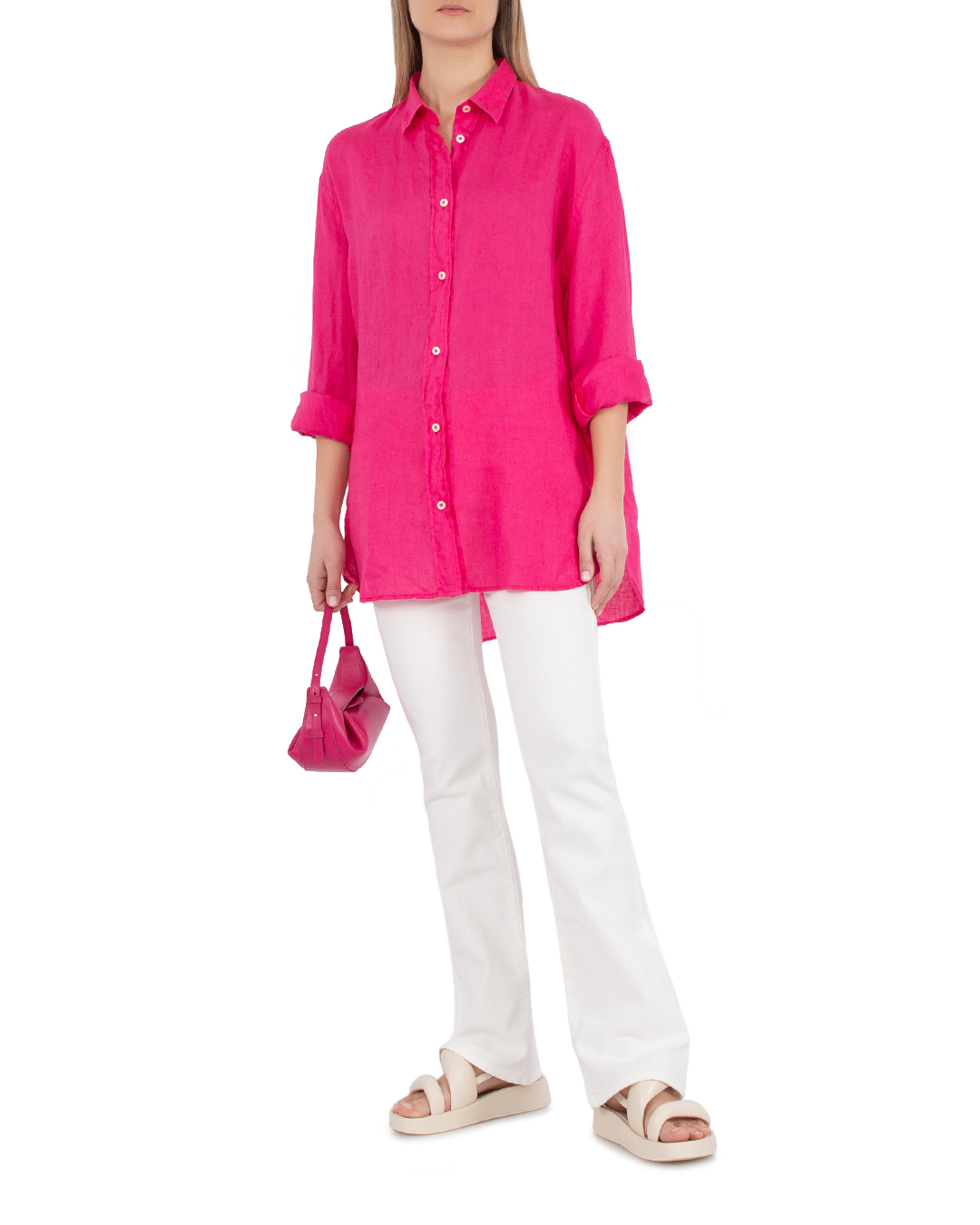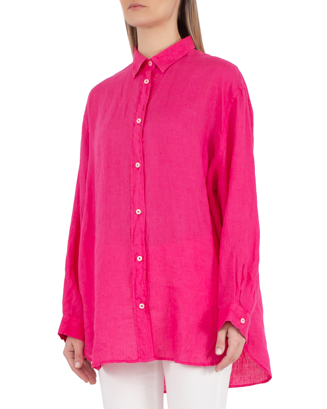 Рубашка ANTELOPE THE LABEL сшита из натурального льна. Модель прямого свободного силуэта с застежкой на пуговицы дополнена отложным воротником. Изделие с длинными рукавами и спущенной линией плеч дополнено закругленной линией низа.