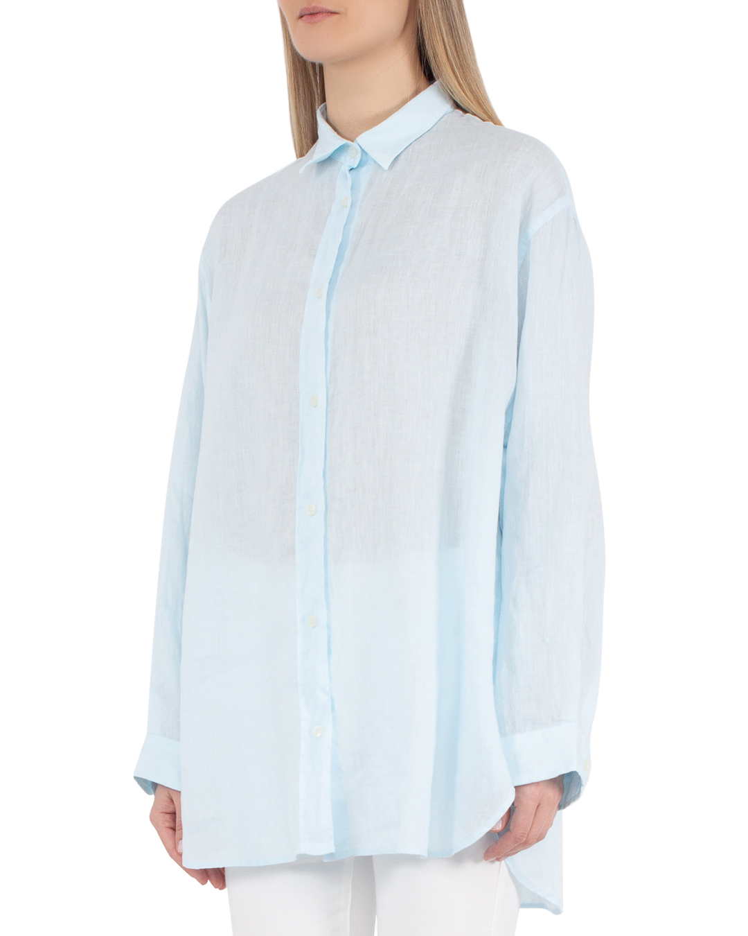 Рубашка ANTELOPE THE LABEL сшита из натурального льна. Модель прямого свободного силуэта с застежкой на пуговицы дополнена отложным воротником. Изделие с длинными рукавами и спущенной линией плеч дополнено закругленной линией низа.