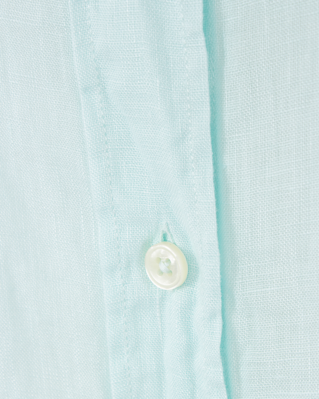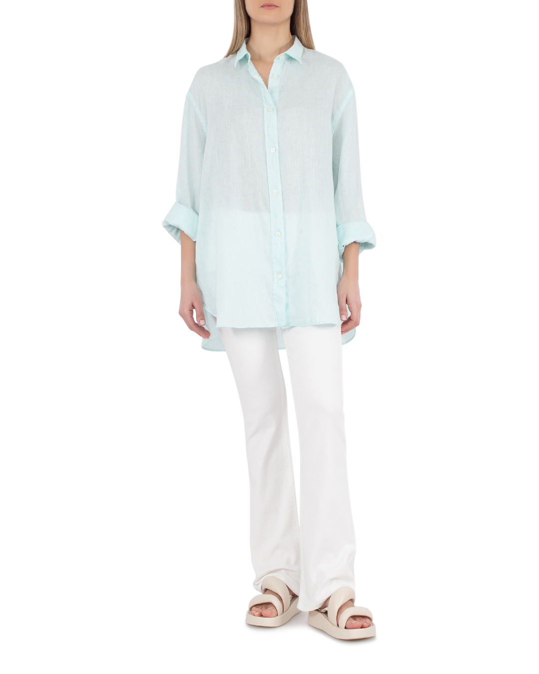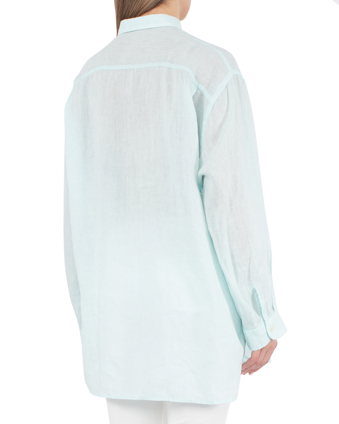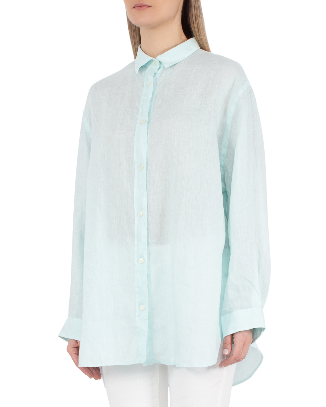 Рубашка ANTELOPE THE LABEL сшита из натурального льна. Модель прямого свободного силуэта с застежкой на пуговицы дополнена отложным воротником. Изделие с длинными рукавами и спущенной линией плеч дополнено закругленной линией низа.