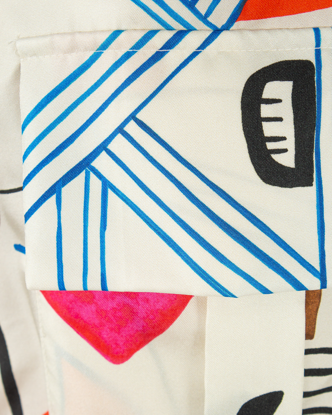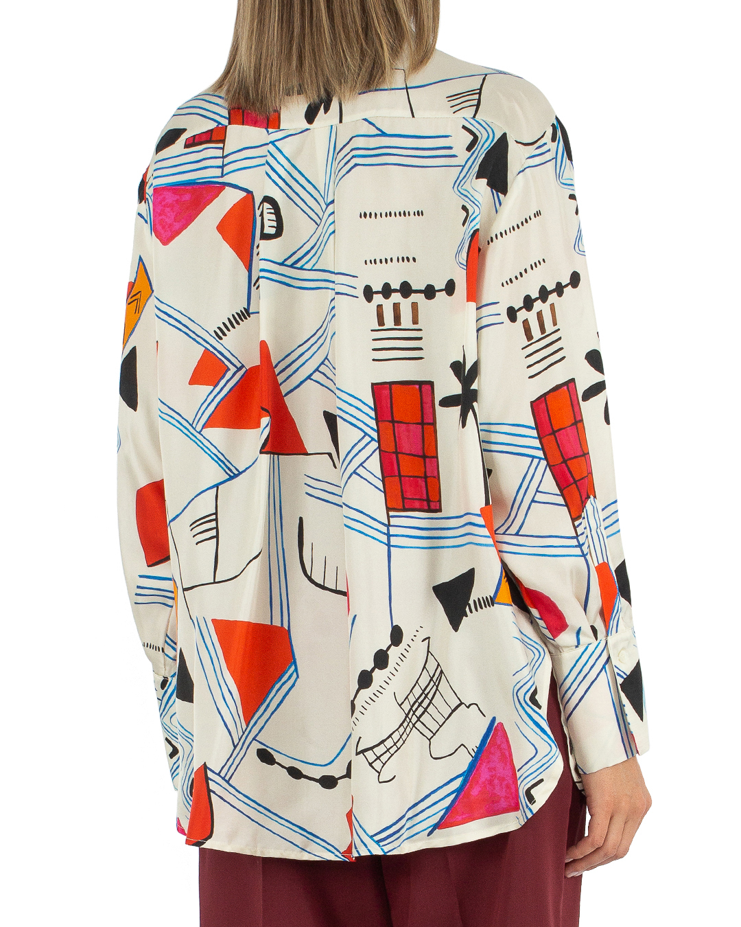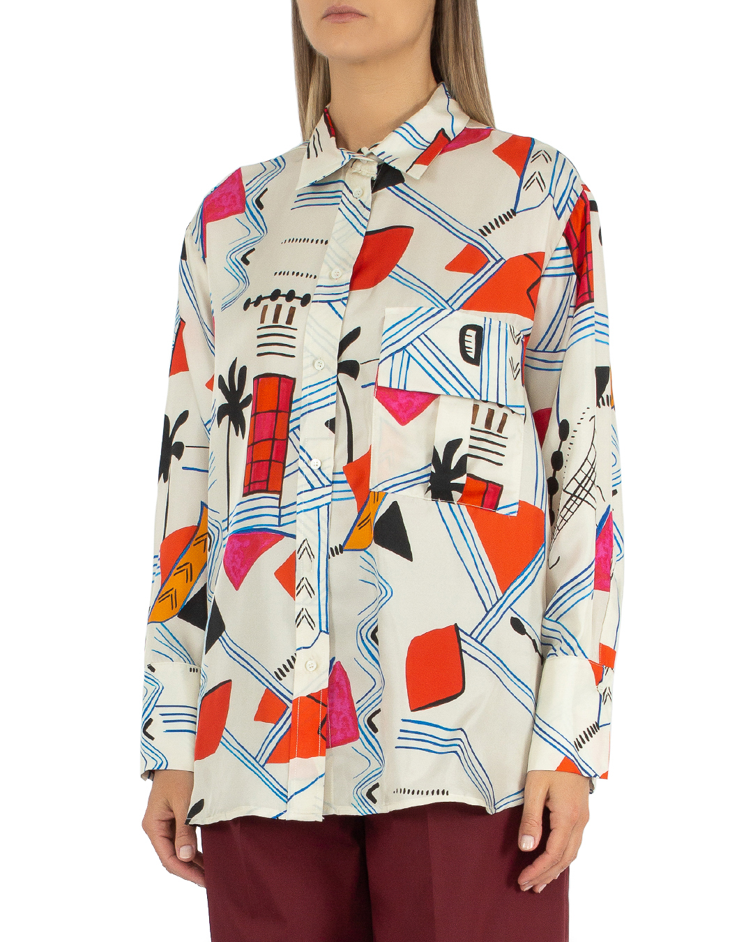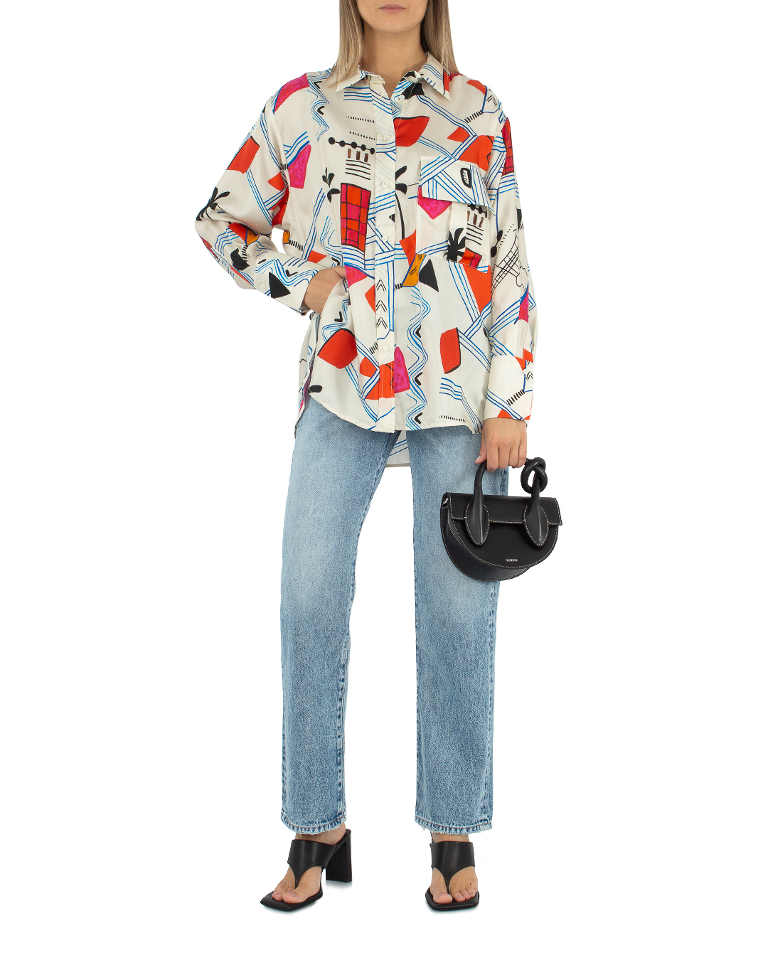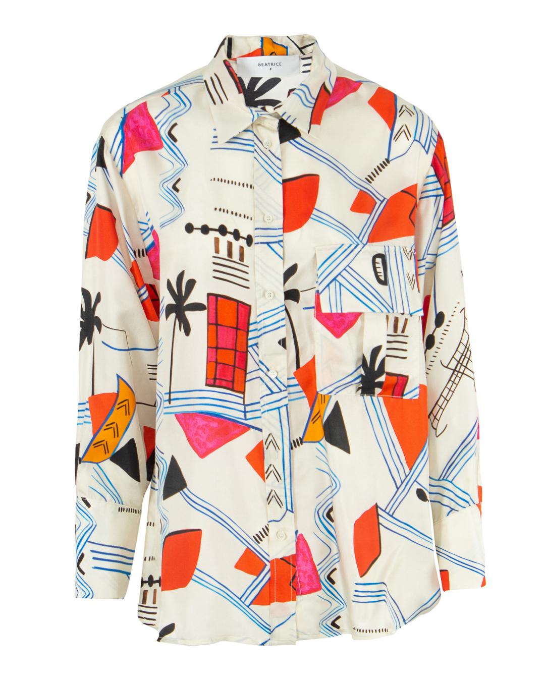 Рубашка BEATRICE сшита из шелка с цветным принтом. Модель прямого свободного силуэта с застежкой на пуговицы и отложным воротником.