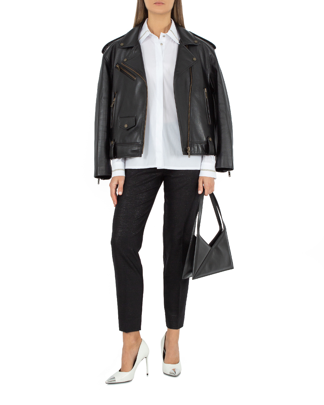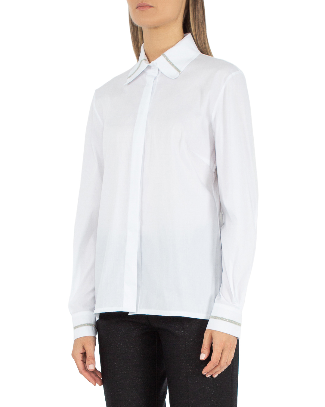 D.EXTERIOR из хлопка с отделкой металлизированными нитями. Прямой силуэт с застежкой на пуговицы с планкой дополнен отложным воротником.