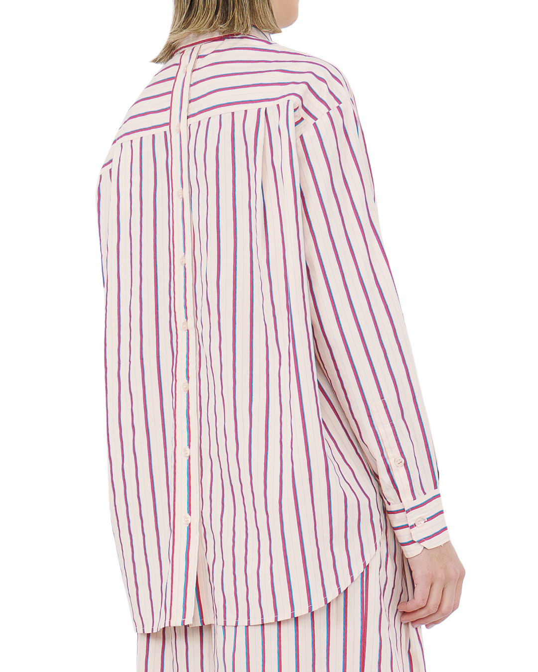 Эта рубашка Essentiel — образец элегантности с нежным акцентом. Изящный полосатый принт в сочетании приглушенных оттенков оживляется выразительной вышивкой в виде монограммы ярко-синего цвета на кармане, добавляя нотку индивидуальности и свежести. Сшитая из мягкой, приятной на ощупь ткани, рубашка предлагает комфорт и прекрасную посадку. Классический воротник и длинные рукава с манжетами подчеркивают изысканность и утонченность модели, а центральная застёжка на пуговицах позволяет варьировать стиль от делового до повседневного. Отличное качество исполнения заметно в проработке швов и использовании качественной фурнитуры. Эта рубашка легко станет универсальным элементом гардероба, создавая изящные и продуманные образы для самых разных случаев — от офисных будней до неформальных встреч.