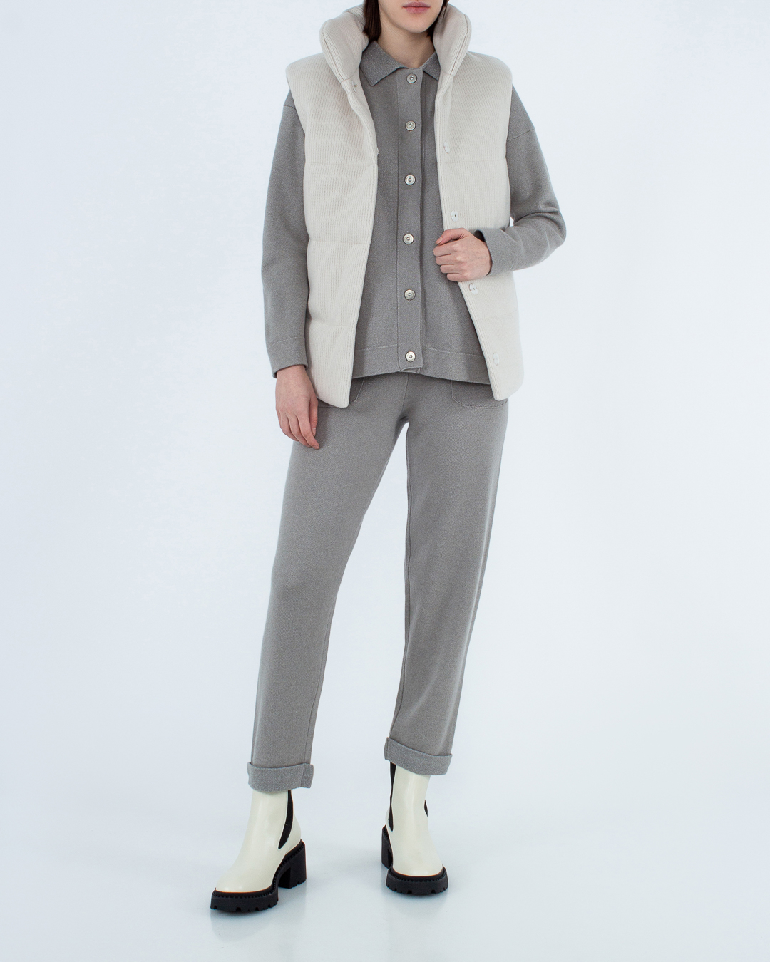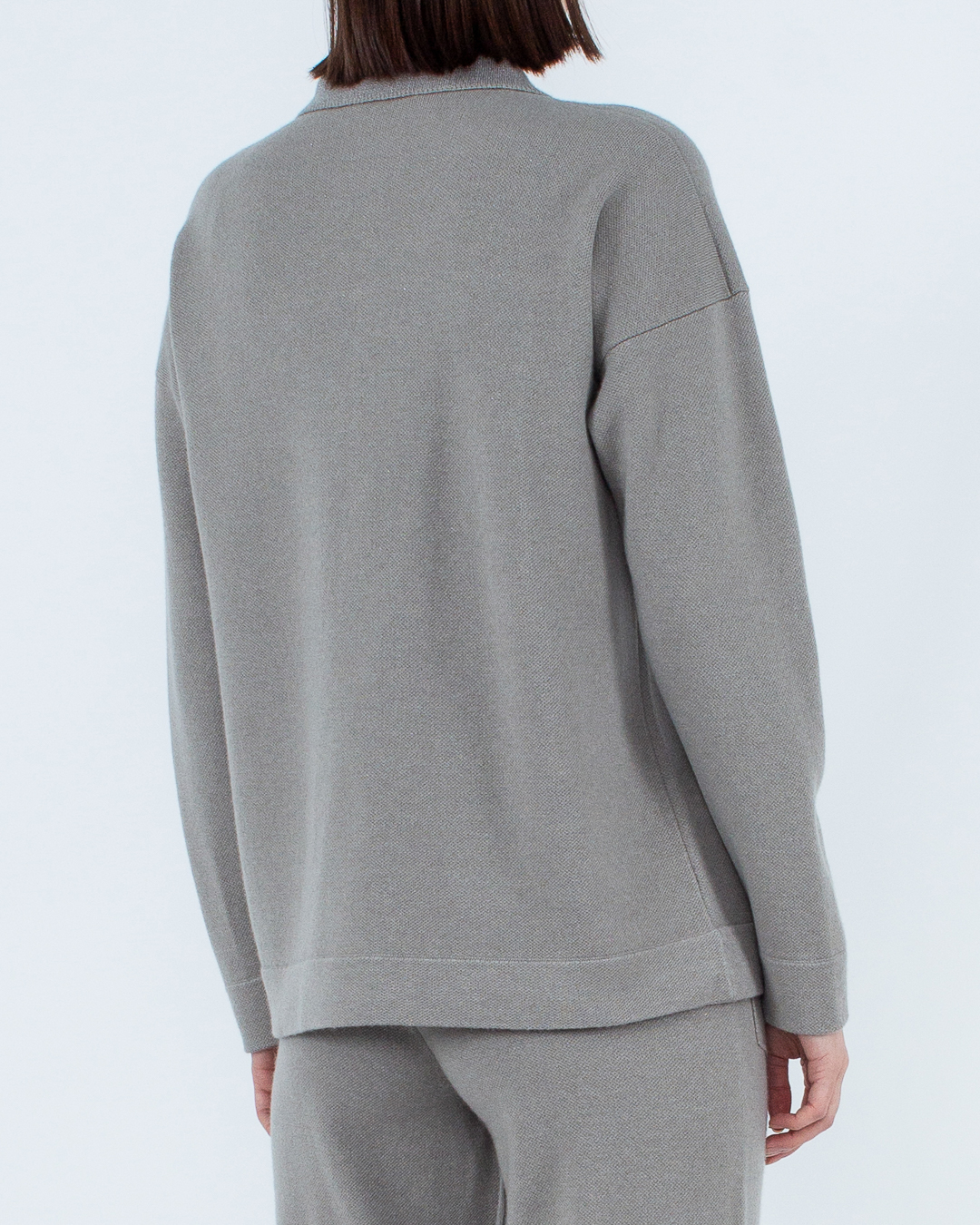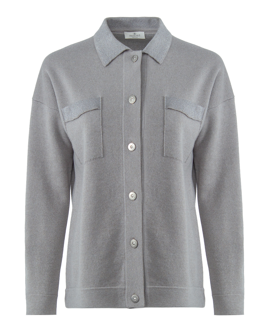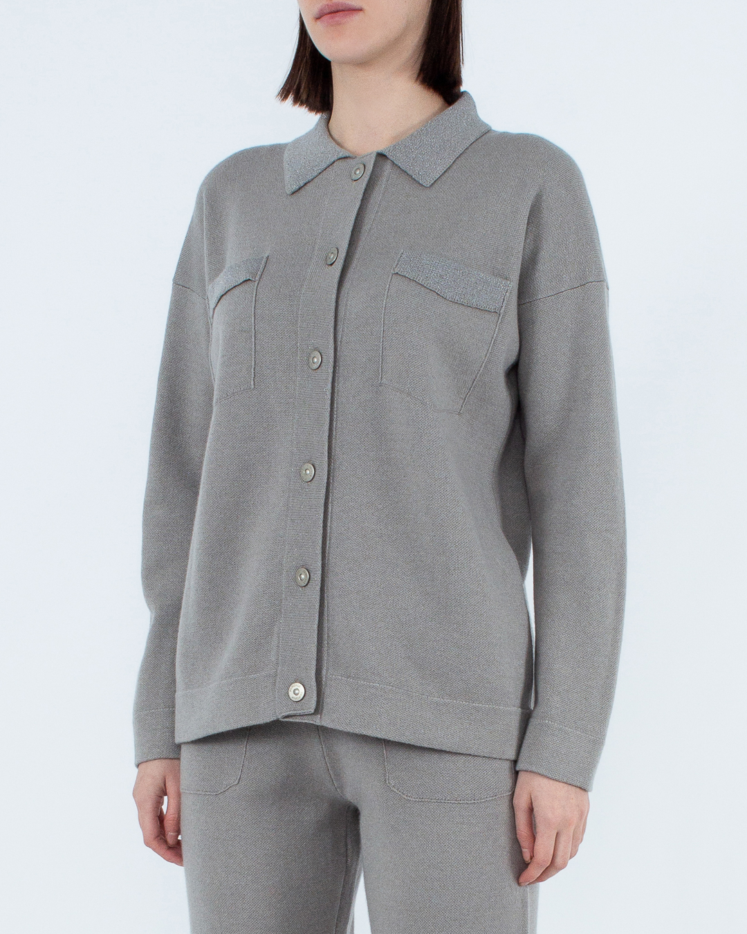 Рубашка из трикотажной мягкой смеси из шерсти и шелка с добавлением кашемира. Модель прямого силуэта с застежкой на пуговицы и двумя накладными карманами.