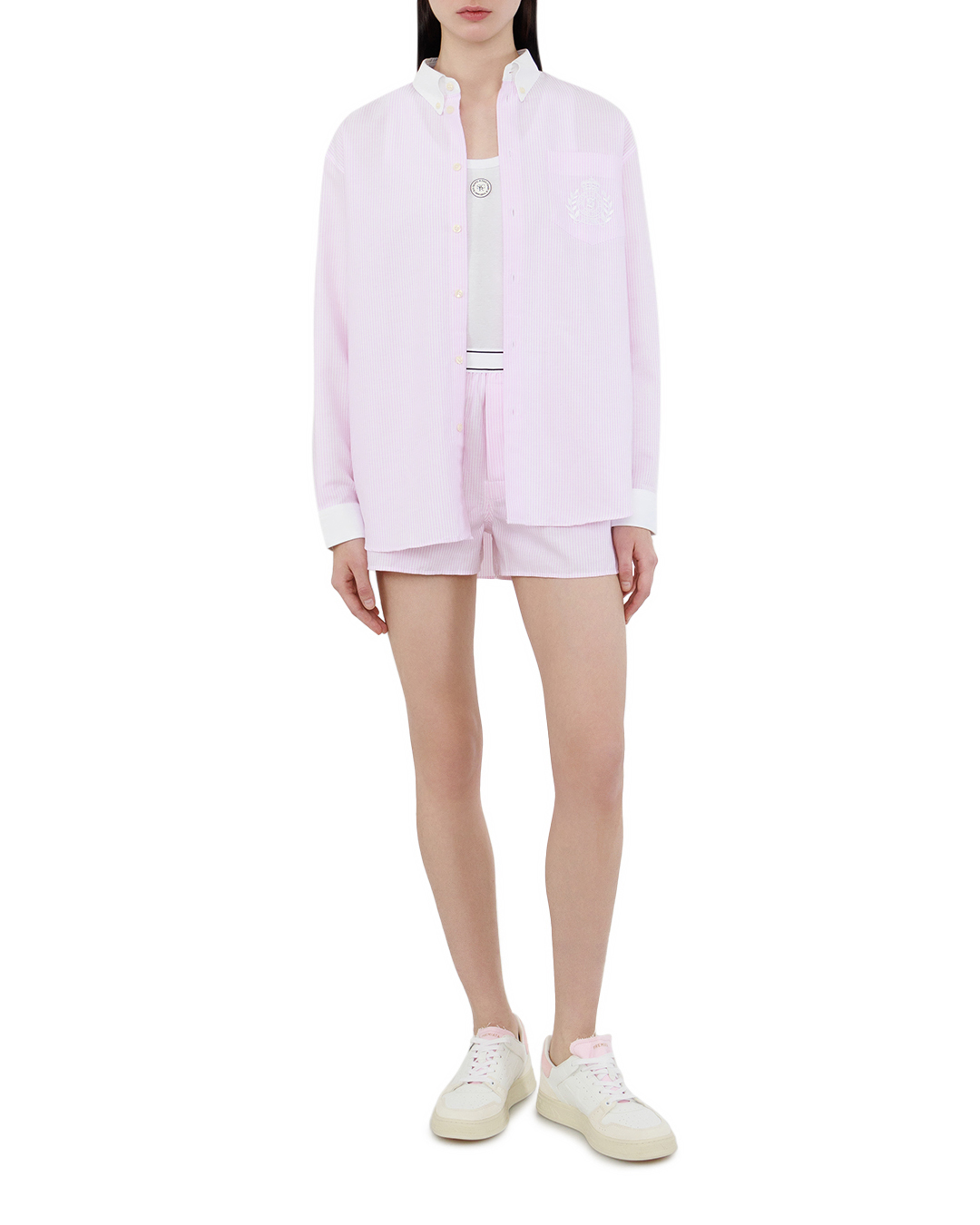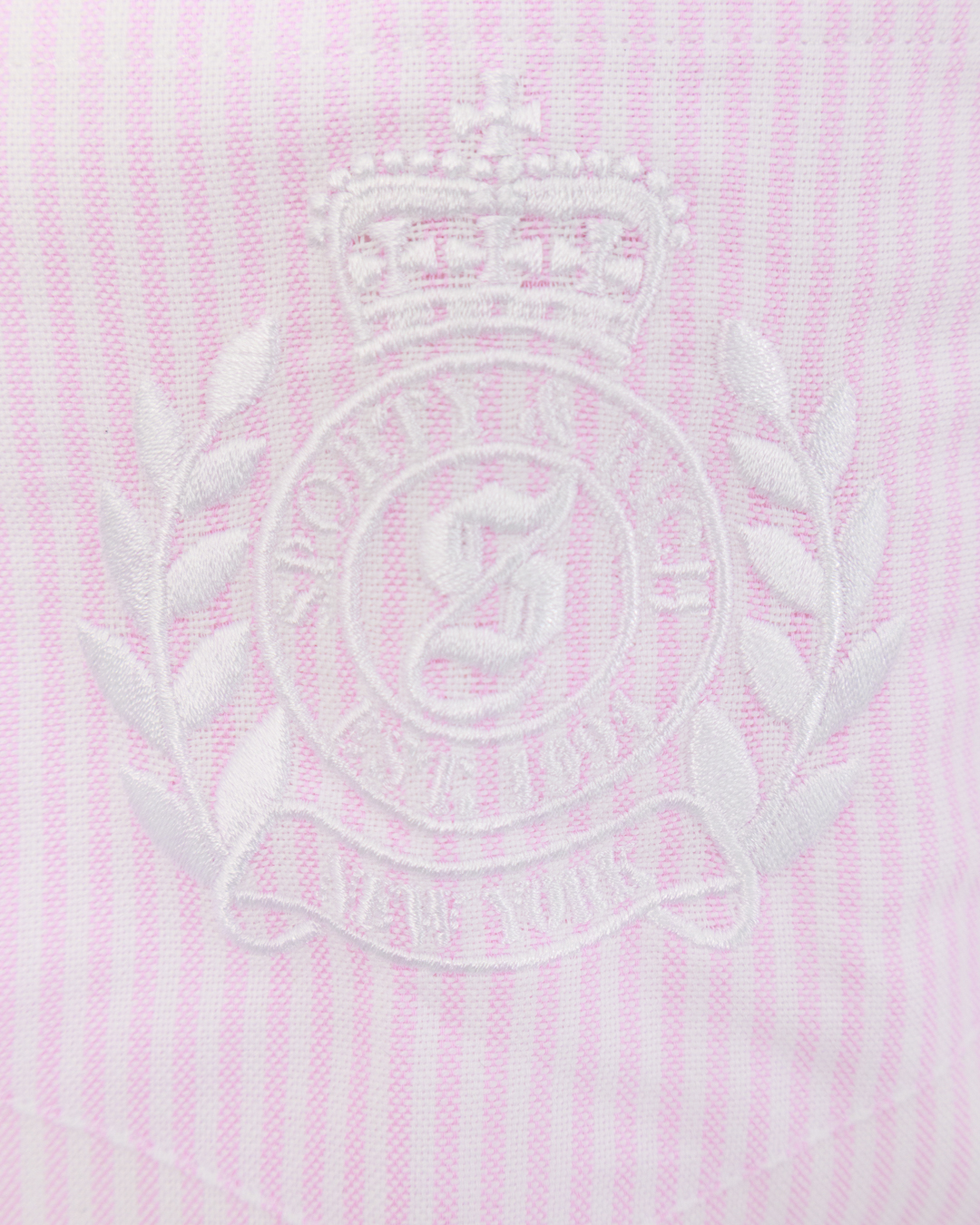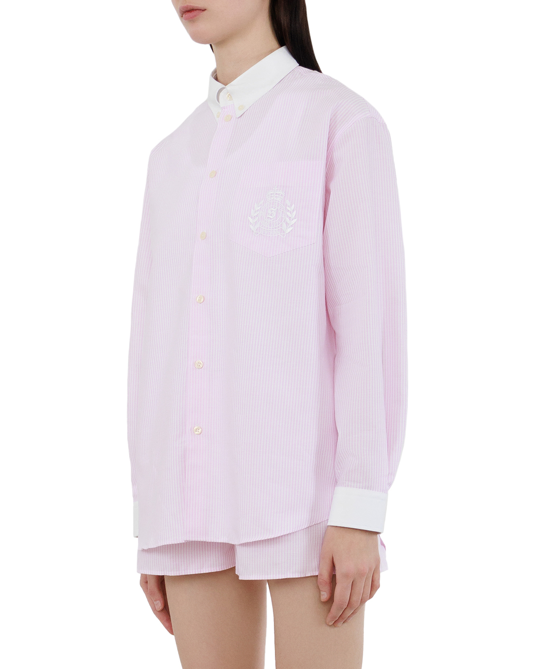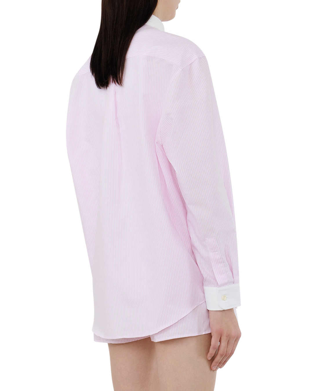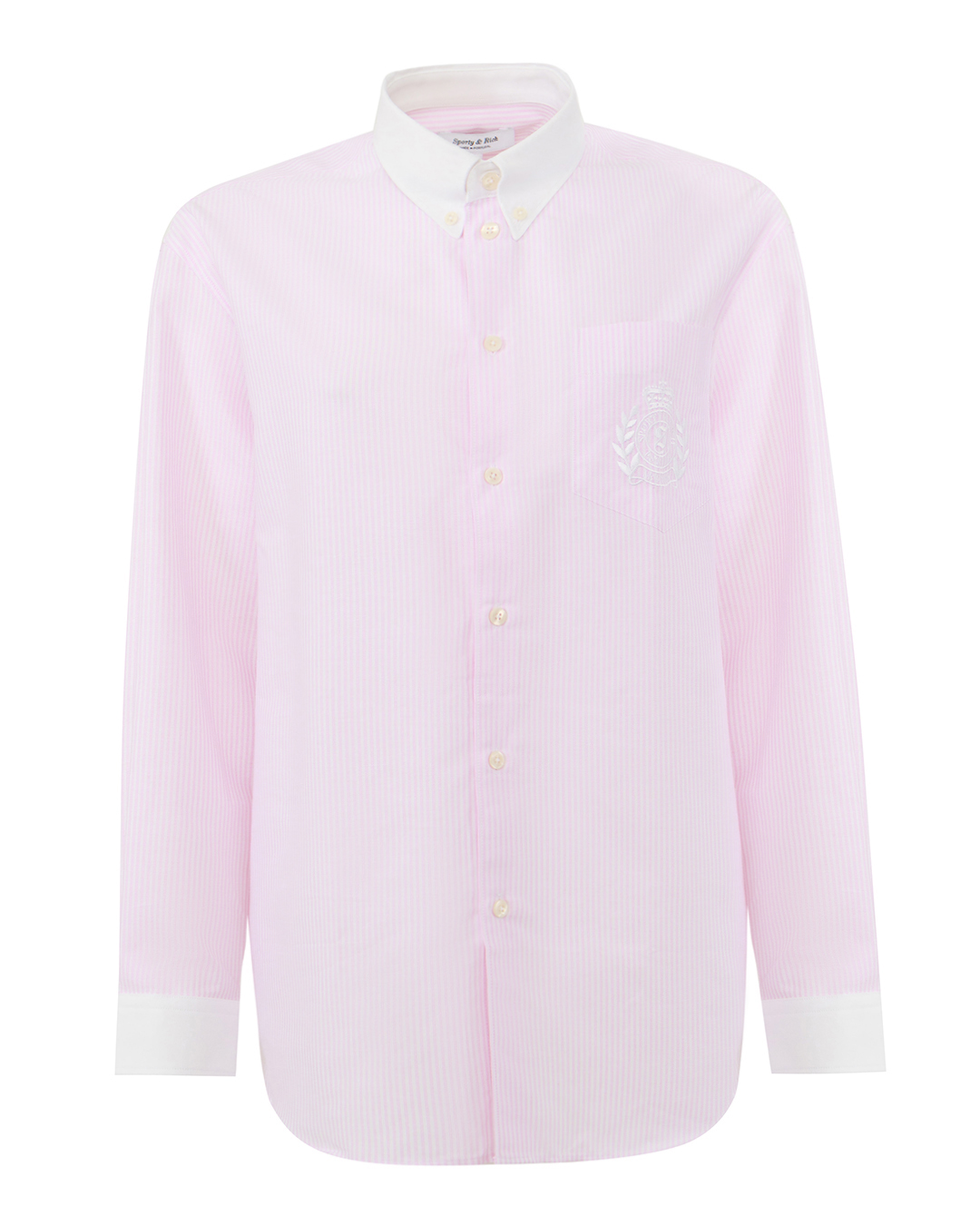 Эта рубашка привлекает внимание нежным розовым оттенком, который, благодаря тонкой вертикальной полоске, создает эффект легкости и элегантности. Изготовлена из высококачественного хлопка, она обеспечивает комфорт и дышащие свойства, что делает её идеальной для тепла и уюта. Классический воротник с закруглением и аккуратными пуговицами в тон придает образу современный городской штрих. Длинные рукава с возможностью фиксации на запястьях обеспечивают универсальность — можно создать как повседневный, так и более официальный стиль. Логотип, вышитый на груди, добавляет изысканности и служит тонким акцентом, который подчеркивает индивидуальность и стиль. Эта рубашка станет основой любого гардероба, легко комбинируясь с джинсами или классическими брюками, создавая гармоничный и стильный лук..