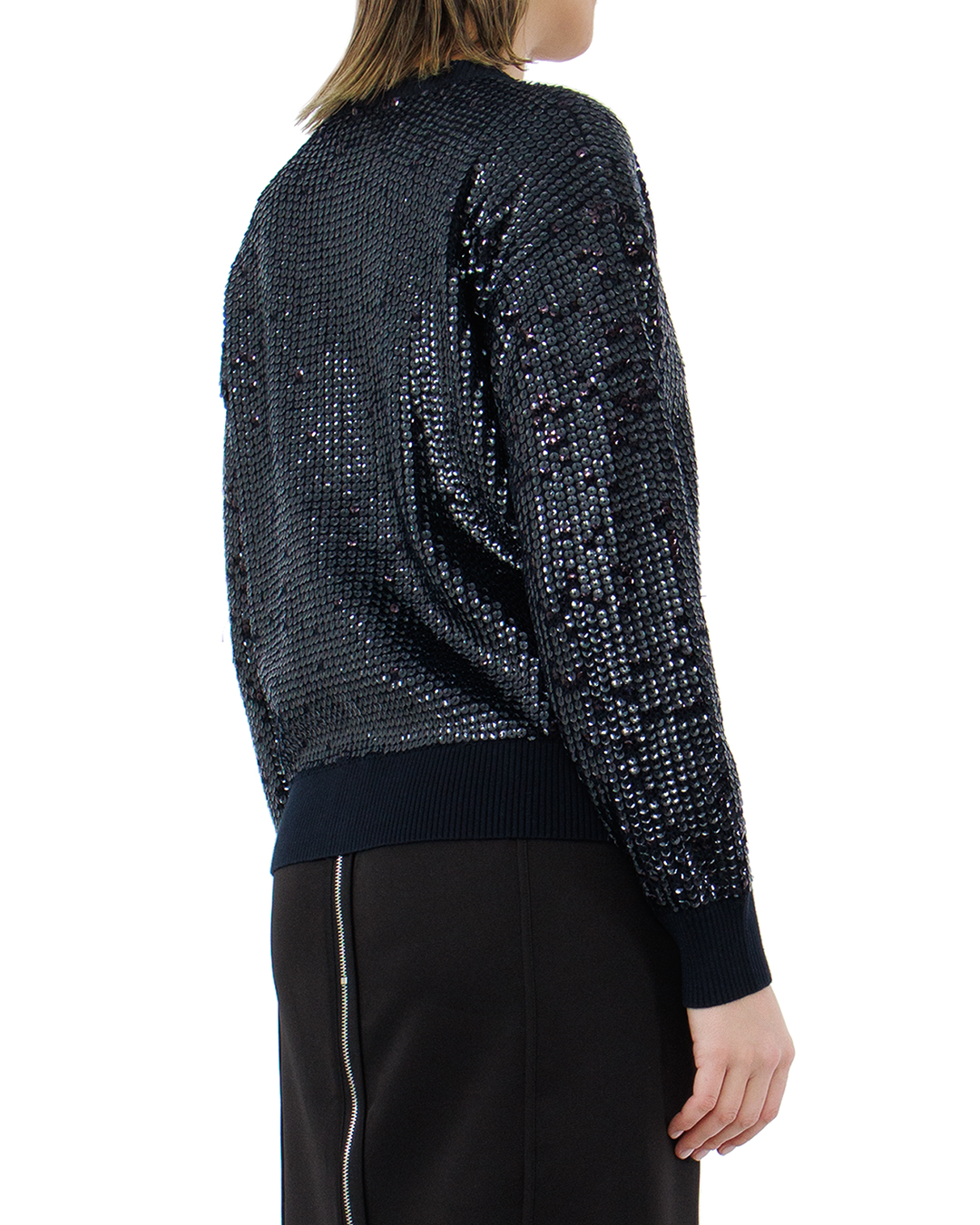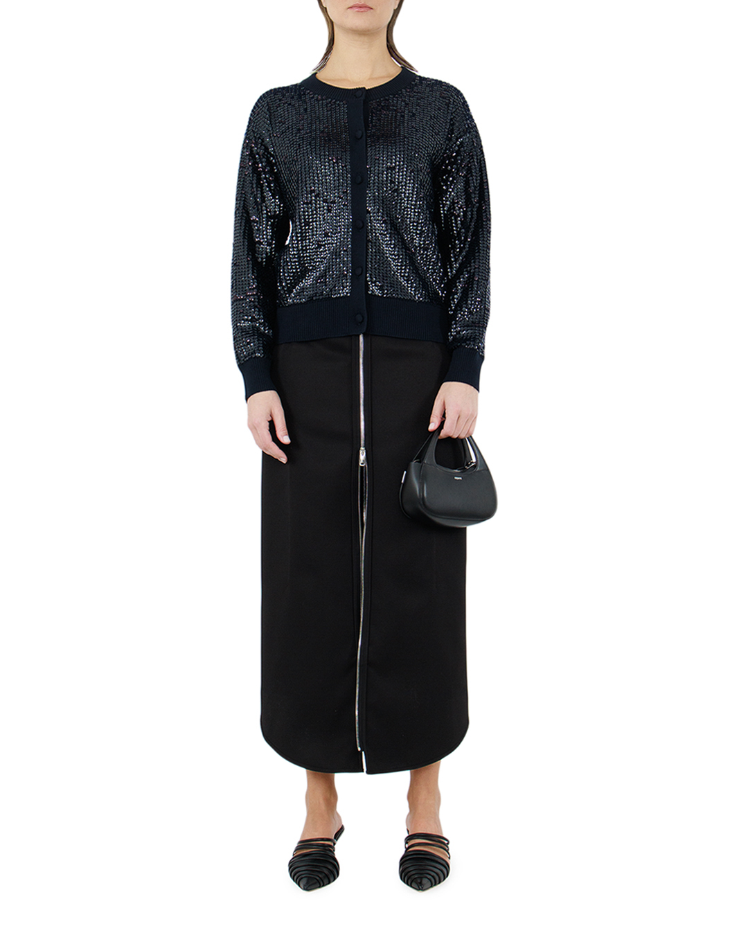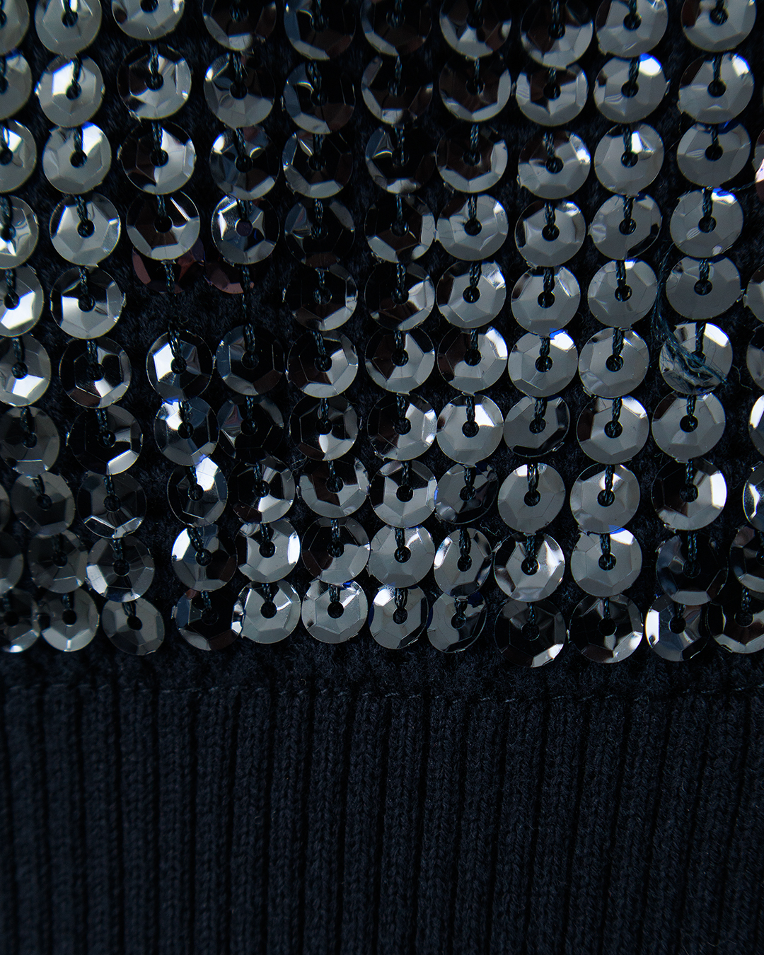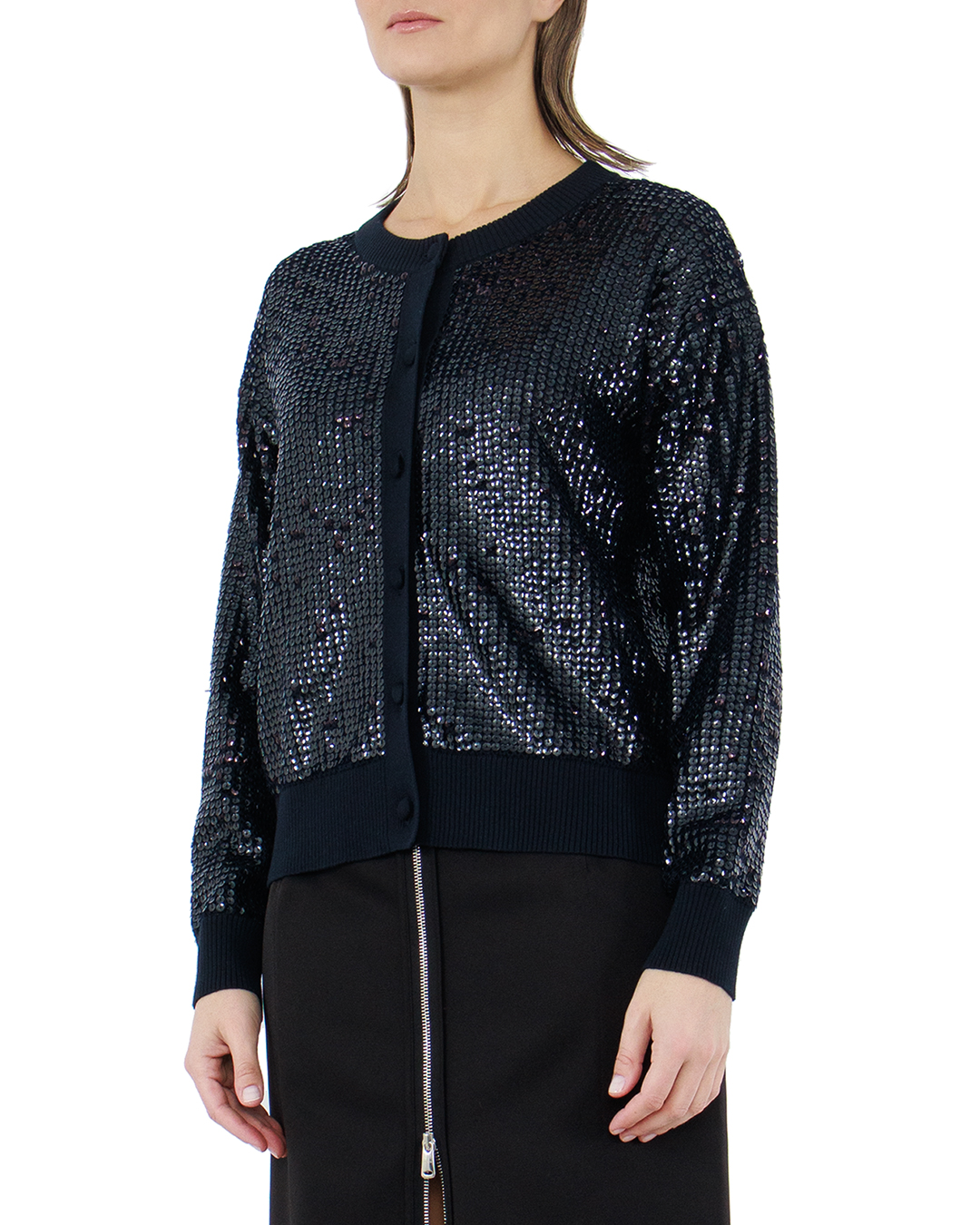 Кардиган от P.A.R.O.S.H. — это настоящий шедевр, сочетающий элегантность и роскошь с современным блеском. Жакет исполнен в глубоком черном цвете и украшен изящными пайетками, которые создают ослепительный эффект, играя с тенью и светом. Классический фасон с круглым вырезом отличается универсальностью и стилем. Застежка на пуговицах обеспечивает удобство и позволяет сочетать кардиган с разнообразными луками — от повседневных до вечерних. Манжеты и подол выполнены из трикотажной резинки, что придаёт изделию комфортабельную посадку и добавляет структурированности. Эти элементы, благодаря своей функциональности, подчёркивают внимание к деталям и качество исполнения. Благодаря этому кардигану каждый ваш образ приобретёт нотку утонченной роскоши, делая его идеальным выбором как для праздничного вечера, так и для стильного повседневного использования.