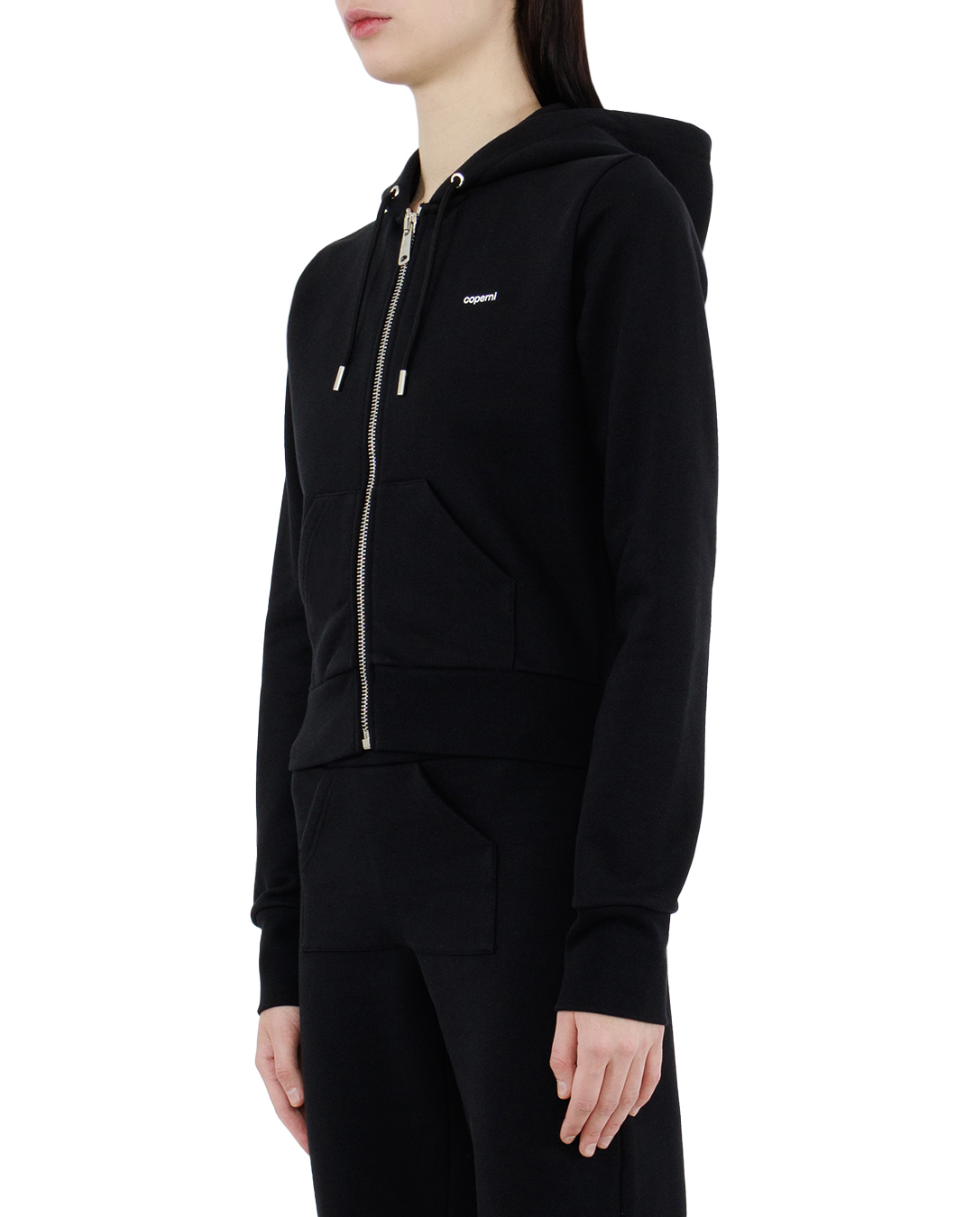 Эта олимпийка олицетворяет идеальное сочетание спортивной функциональности и утонченного минимализма, привнося в ваш гардероб нотки современного стиля и комфорта. Выполненная из высококачественного хлопка, она обеспечивает тепло и мягкость, которые необходимы в повседневной жизни. Чёрный цвет выступает как универсальная основа, создающая элегантный и чистый вид. Изделие оснащено аккуратным капюшоном с регулируемым шнурком, что добавляет практичности и легкости в использовании. Металлический молния аккуратно вшита по всей длине, создавая стильный контраст и обеспечивая удобство. Боковые карманы интегрированы в дизайн, подчеркивая функциональность без нарушения общего эстетического вида. Логотип выполнен в минималистичном стиле, слегка выделяясь на фоне ткани, свидетельствуя о высоком уровне исполнения и принадлежности к бренду. Эта олимпийка идеально сочетается как с джоггерами для расслабленного образа, так и с джинсами для более структурированного лука, предлагая вам универсальность стильного и практичного гардероба.