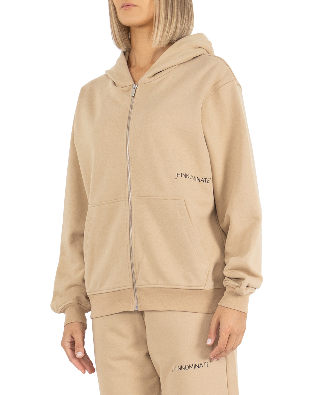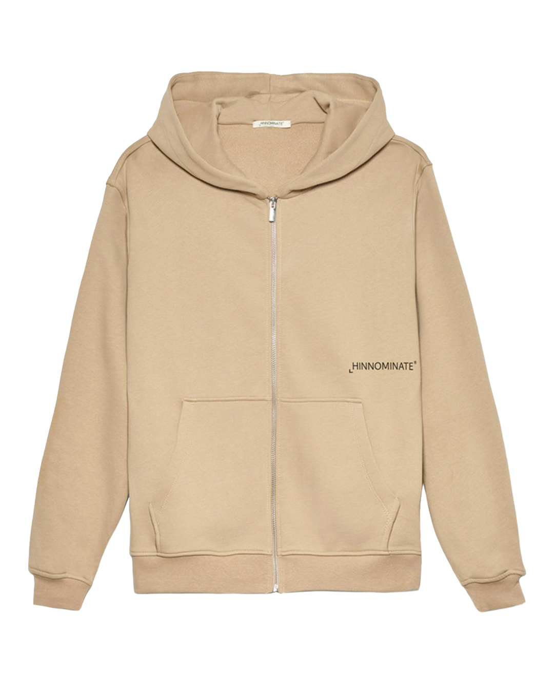 Худи HINNOMINATE из трикотажного хлопка на молнии с капюшоном. Модель прямого силуэта с застежкой на молнию дополнена карманом-кенгуру и уплотненной эластичной отделкой манжет и линии низа.