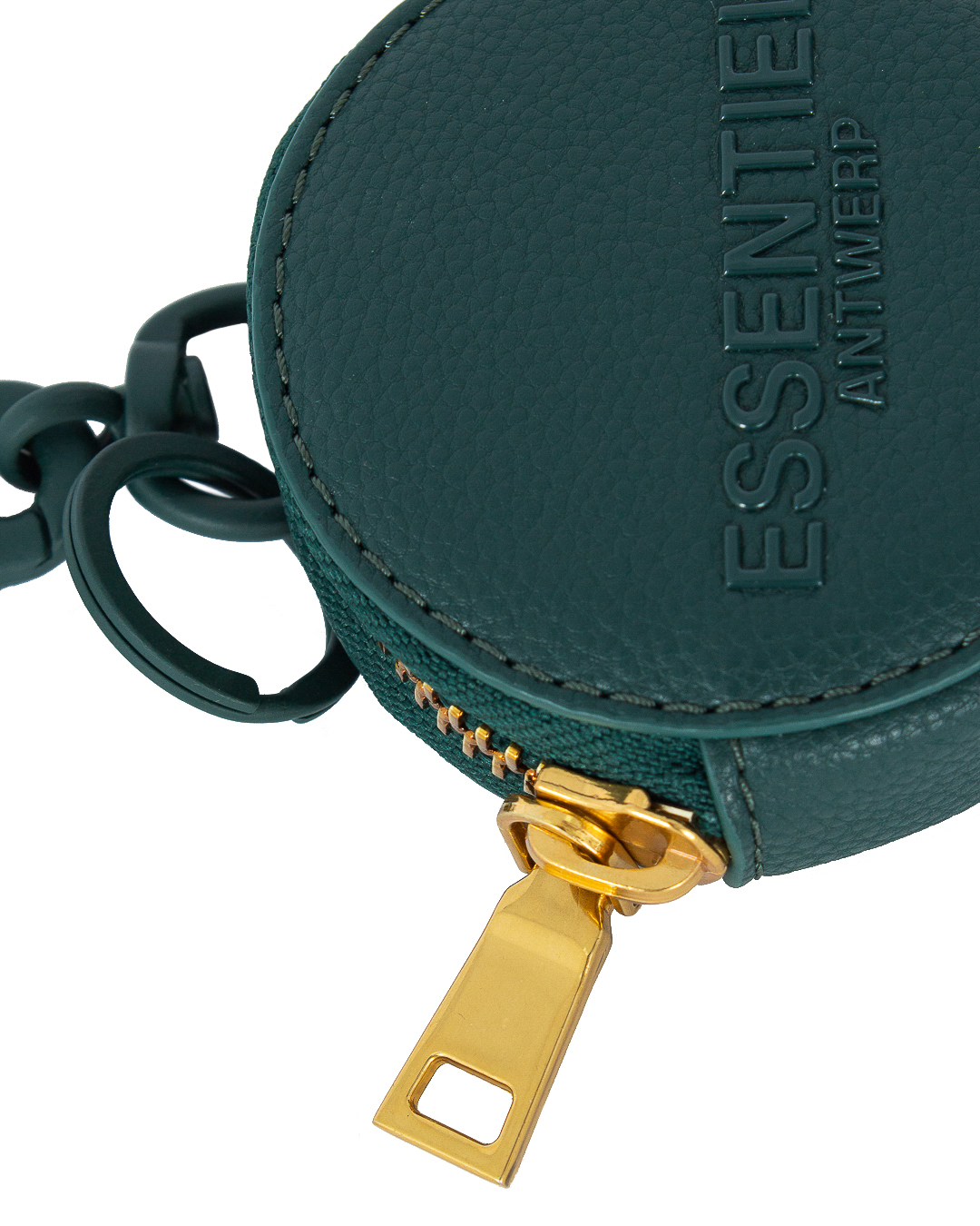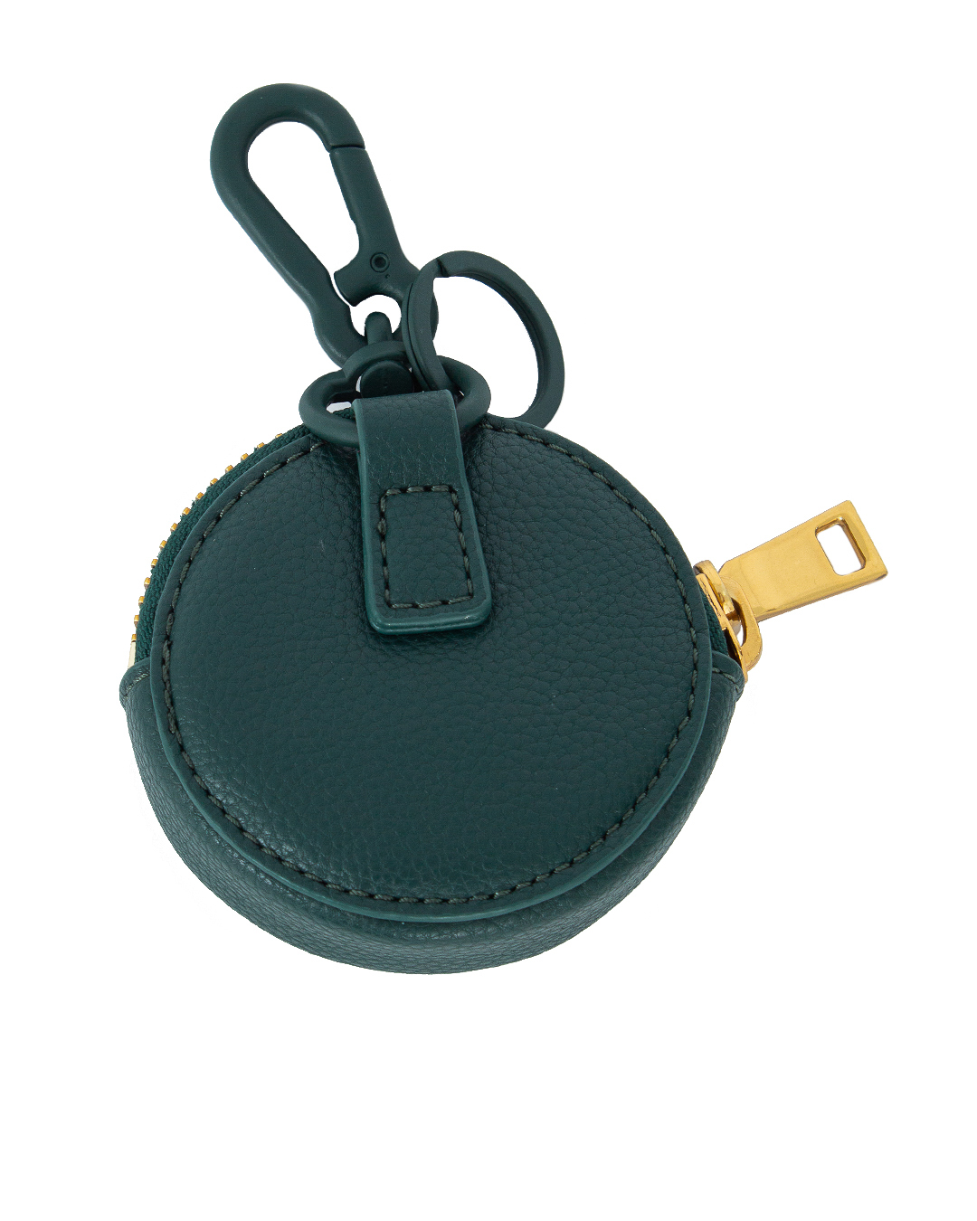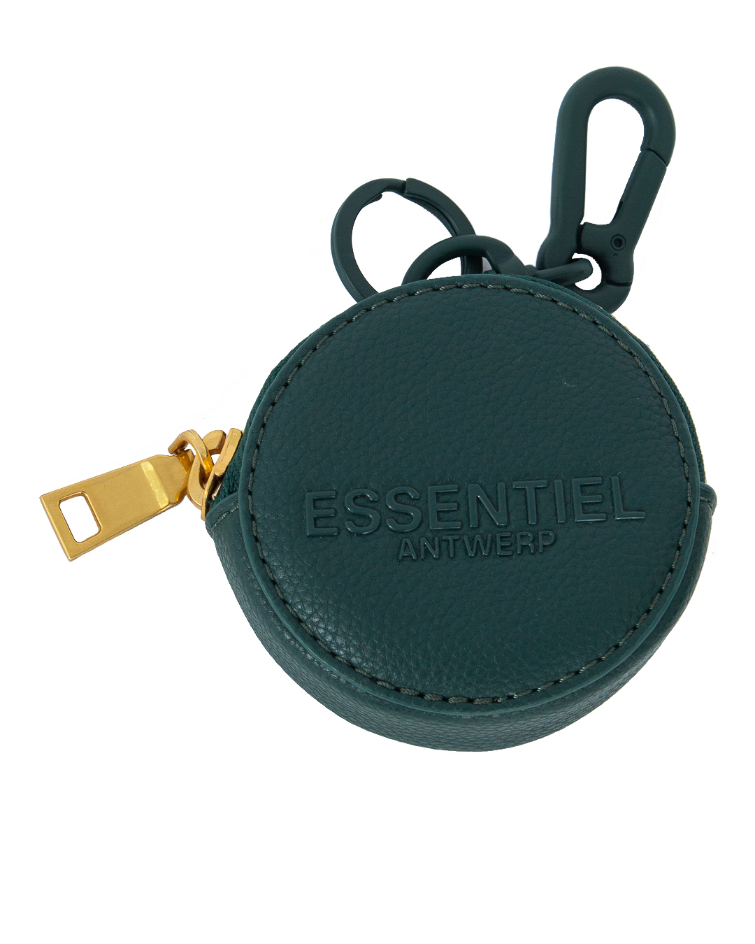 Чехол для монет выполнен из экокожи с тиснением логотипа бренда. Компактное изделие с застежкой на молнию дополнено матовыми карабинами.