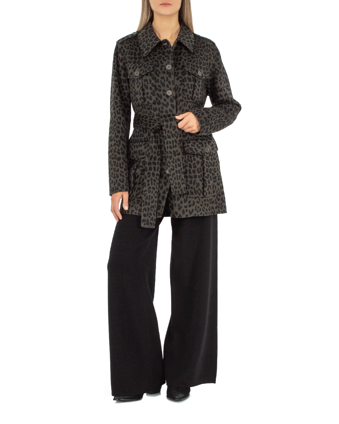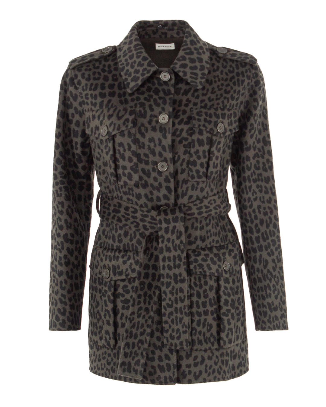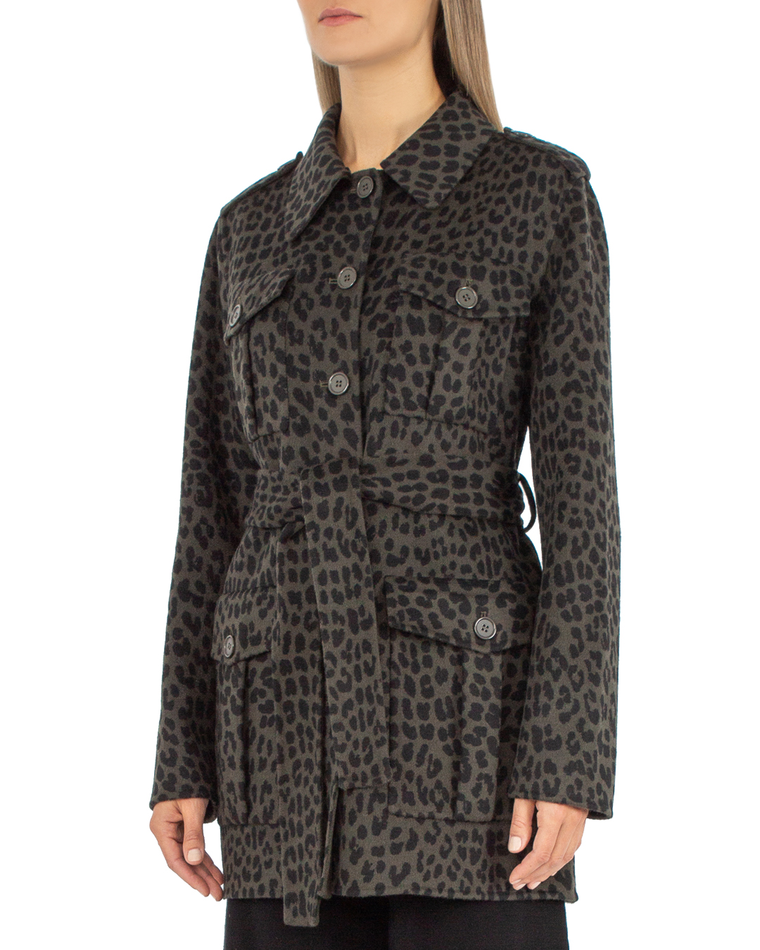 Жакет P.A.R.O.S.H из шерсти с леопардовым принтом. Модель с застежкой на пуговицы дополнена несколькими накладными карманами и поясом из основного материала.