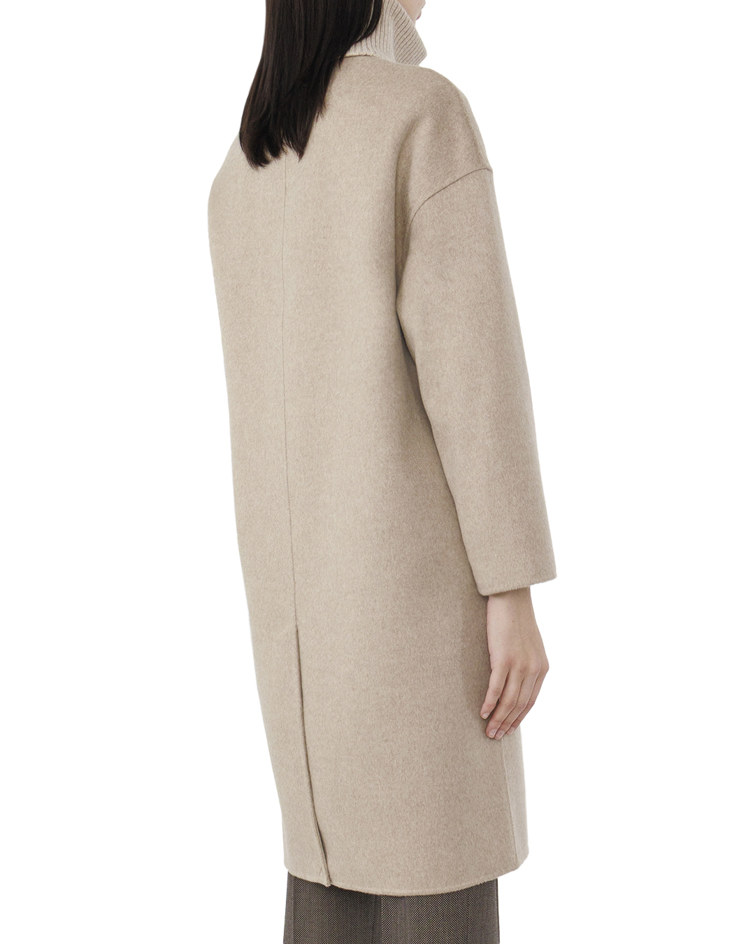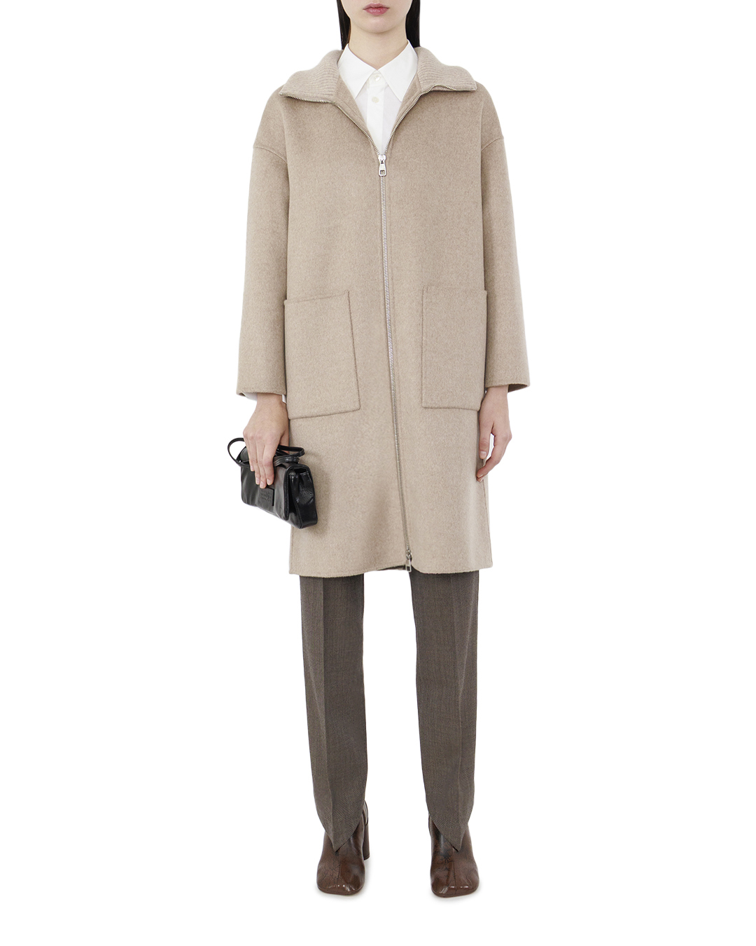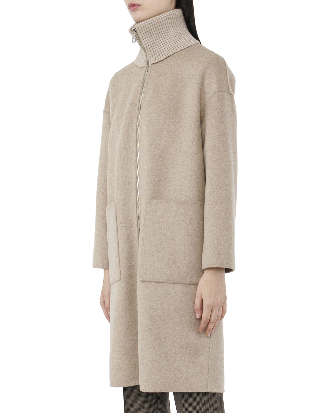 Это пальто — образец безукоризненного стиля и утонченной элегантности, воплощенный в одном изделии. Сшитое из высококачественной шерсти, оно не только согреет в прохладные дни, но и подчеркнёт изысканный вкус своей обладательницы. Благородный бежевый оттенок придаёт модели универсальность, позволяя легко вписаться в любой гардероб. Прямой крой создает чёткий и современный силуэт, балансируя между классикой и современными тенденциями. Высокий воротник-стойка с ребристой текстурой добавляет дополнительную защиту от холода и акцентирует шею, сохраняя при этом минимализм дизайна. Застёжка-молния, проходящая по всей длине, обеспечивает удобство и динамику модели, выделяясь на фоне материи. Накладные карманы не только функциональны, но и добавляют стильный акцент, завершая образ. Это пальто с лёгкостью станет центральным элементом вашего осенне-зимнего гардероба, подчеркнув вашу уверенность и чувство стиля в каждом выходе.
