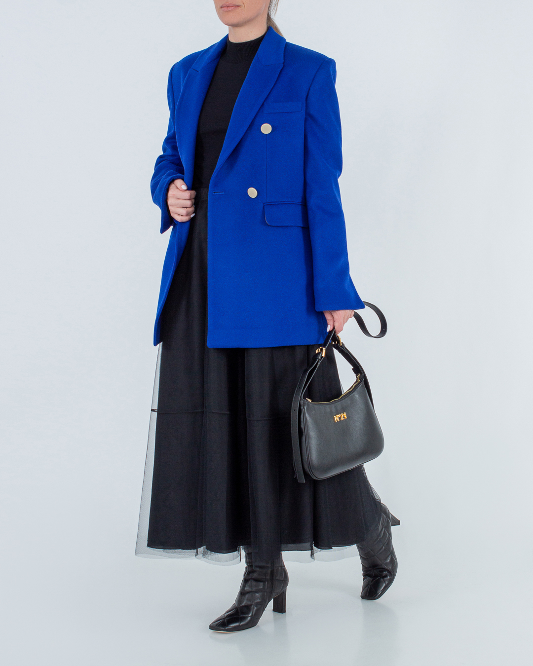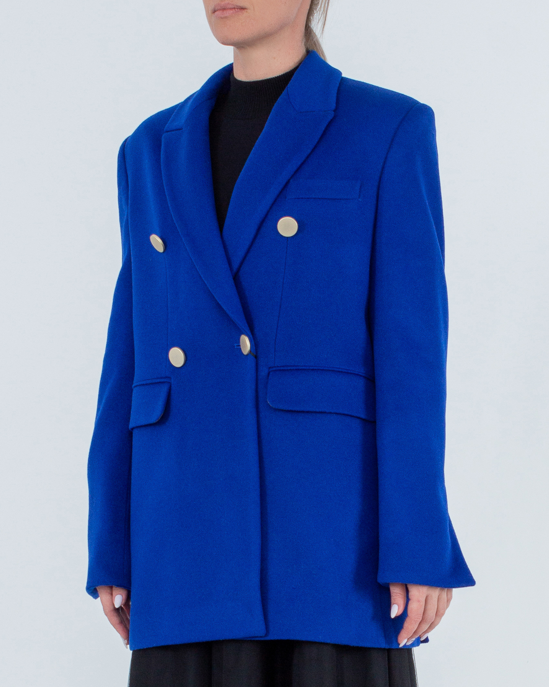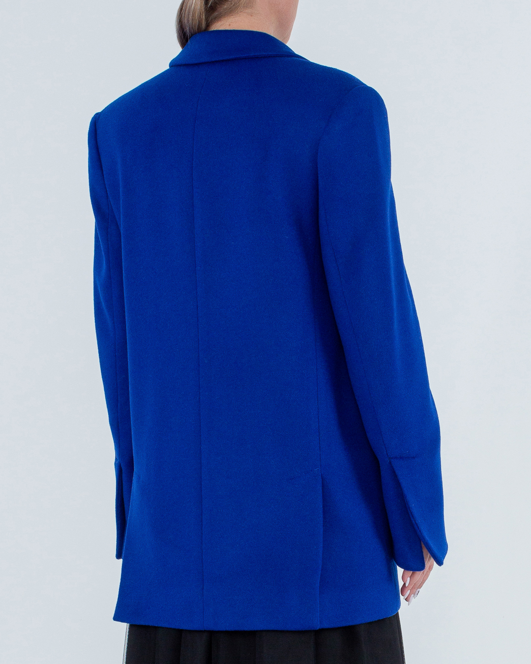 Пальто из шерсти и кашемира яркого синего оттенка. Модель прямого силуэта с застежкой на пуговицы и двумя карманами по бокам.