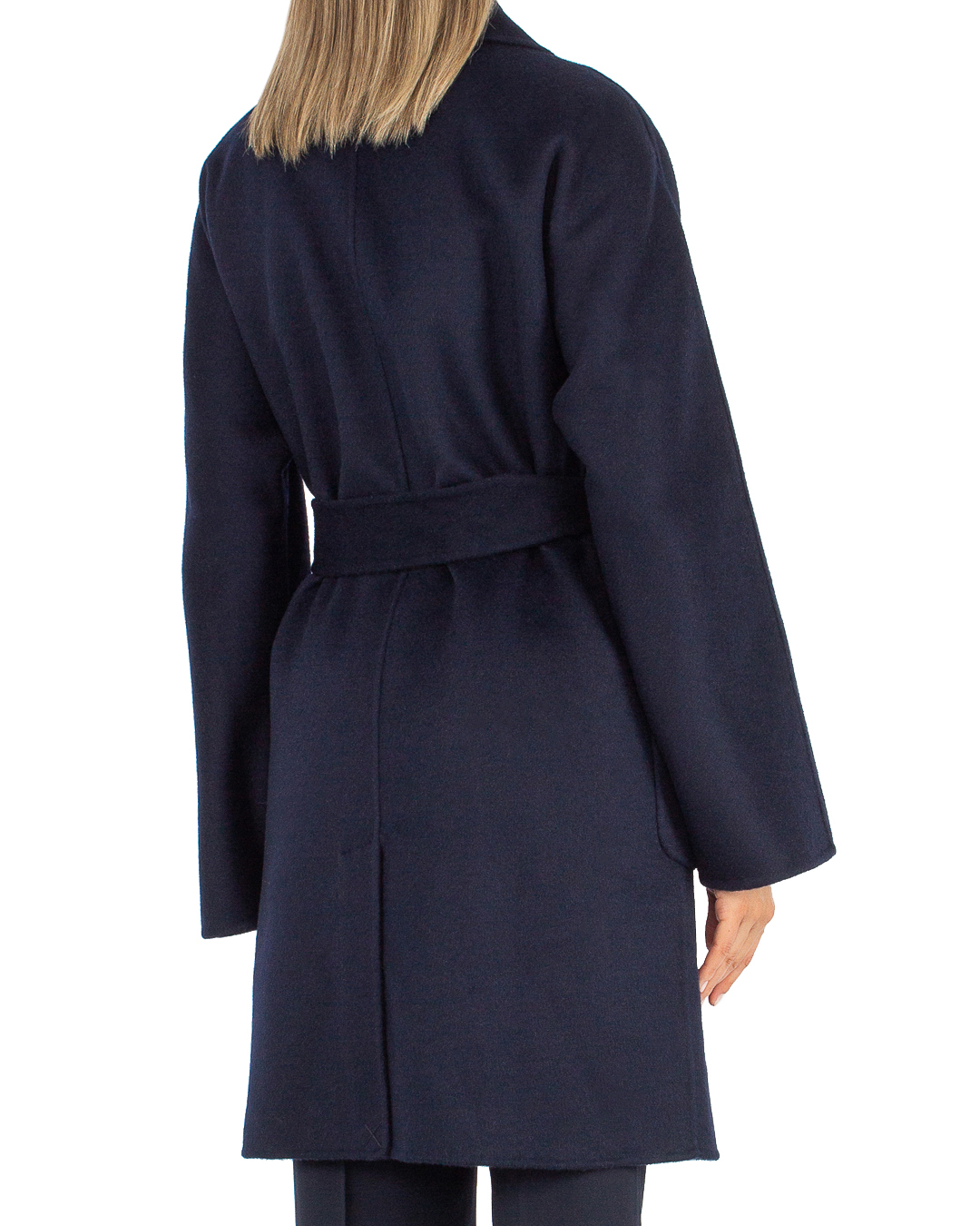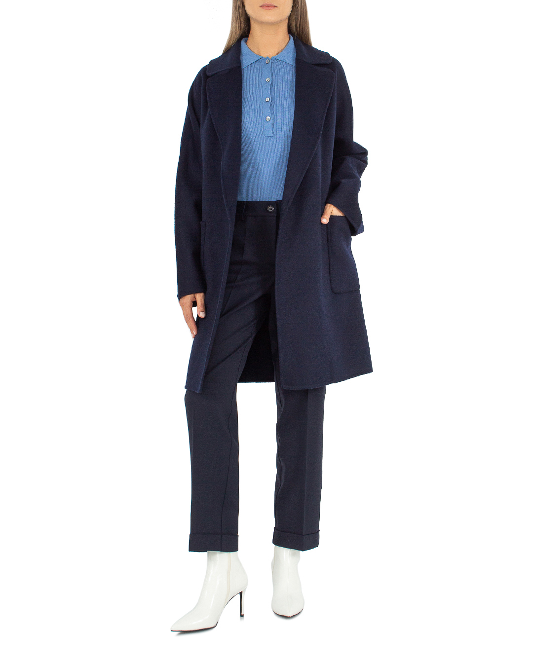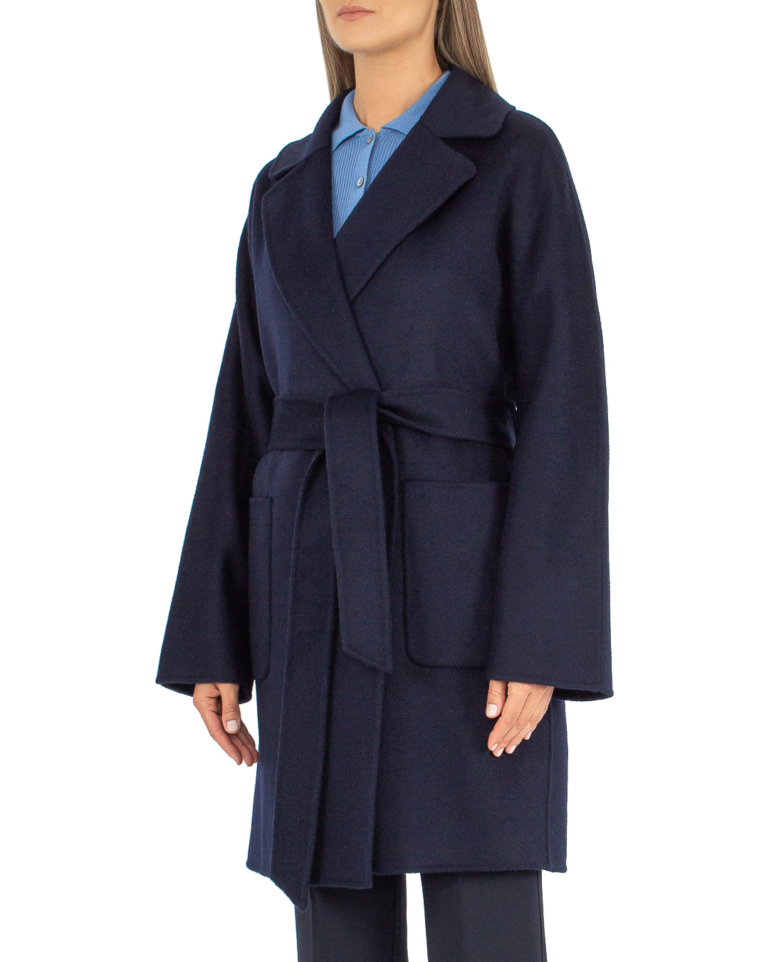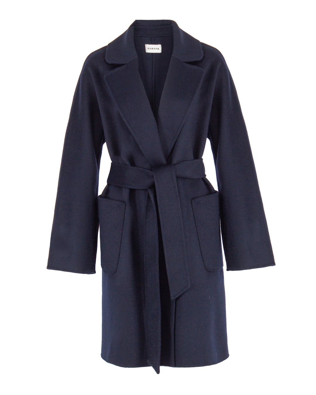 Пальто P.A.R.O.S.H. из мягкой шерсти. Модель прямого силуэта с накладными карманами и широким поясом из основного материала.