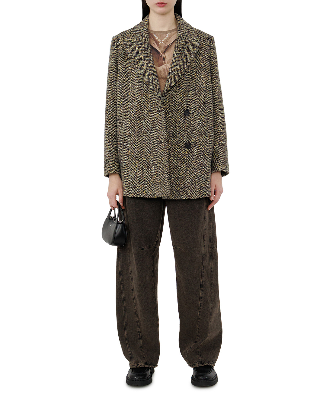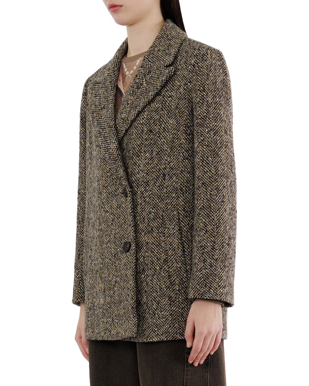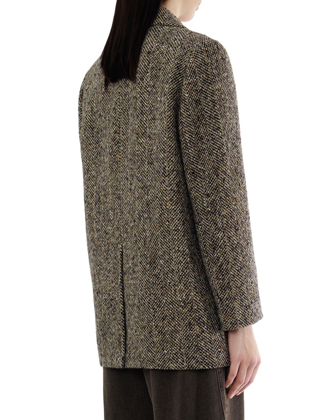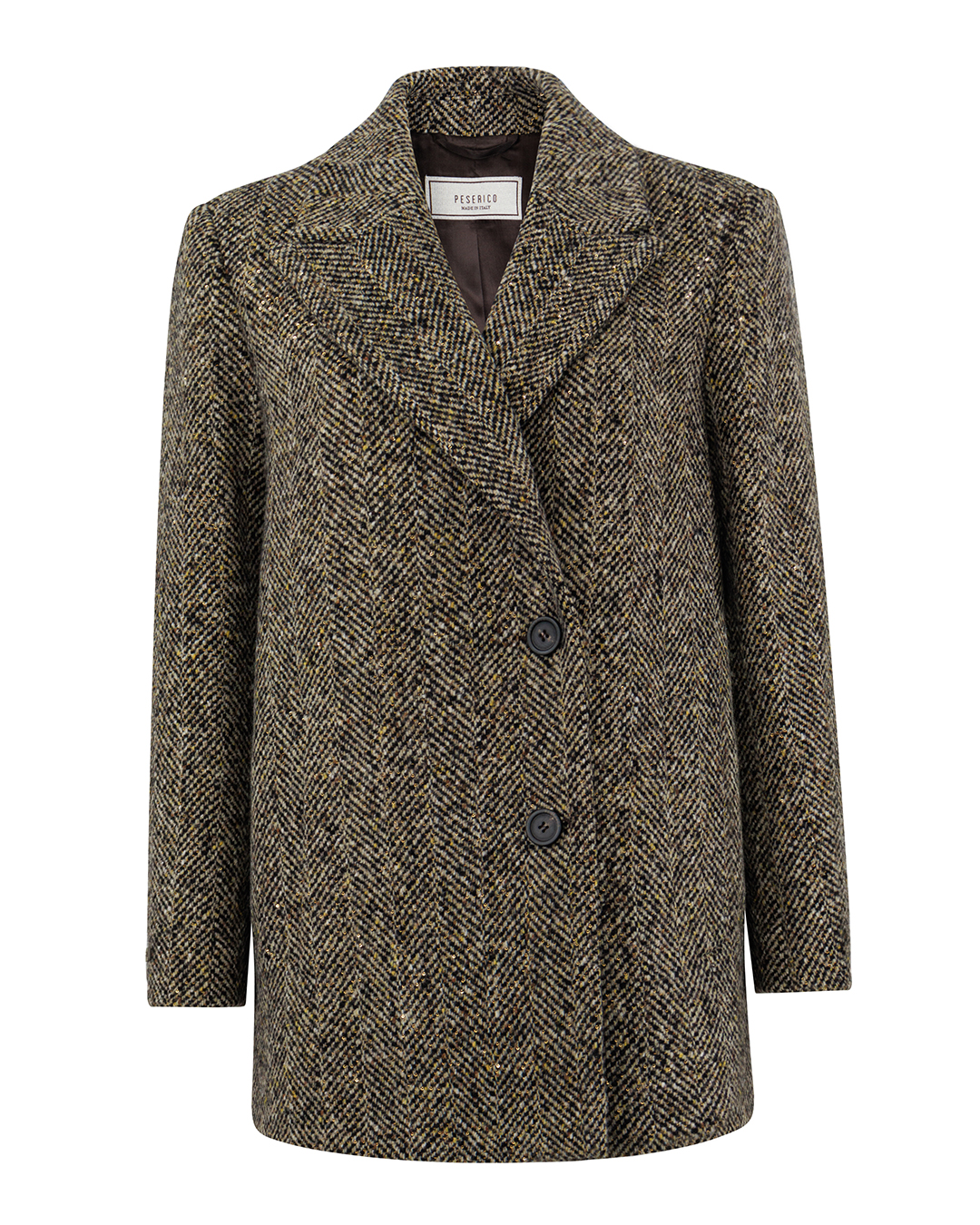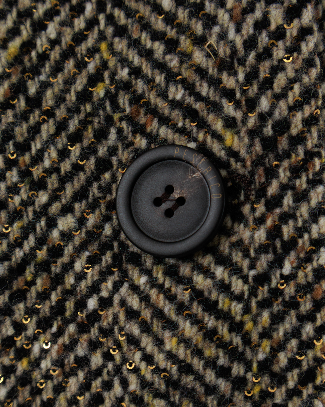 Это пальто — пример классической элегантности и утонченного вкуса. Выполненное из изысканной твидовой ткани, оно предлагает не только стильный вид, но и тепло, что делает его идеальным для прохладных сезонов. Традиционный рисунок "елочка" придает ткани визуальную глубину и богатство, создавая эффект классического шика. Структурированный силуэт с акцентированными плечами и прямым кроем подчеркивает утонченность и статность. Лаконичные, крупные пуговицы служат стильным акцентом, добавляя выразительности и гармонично завершая общий образ. Воротник с лацканами придает пальто аристократический внешний вид и делает его идеальным выбором для официальных и повседневных комплектов. Внутренняя подкладка из гладкой ткани обеспечивает комфорт и лёгкость движения. Это пальто станет центральной частью гардероба, сочетая в себе традиции и современность, и будет идеальным пространством для выражения индивидуального стиля.