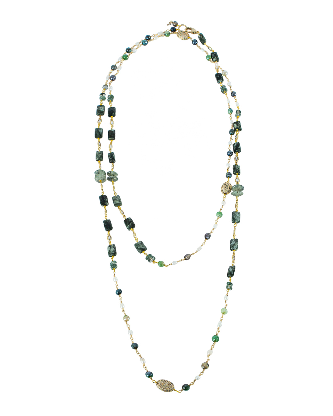 Ожерелье Rocca Florentina из бижутерного металлического сплава с гальваническим гипоаллергенным покрытием. Украшение с декоративными бусинами из натуральных камней и удобной застежкой.