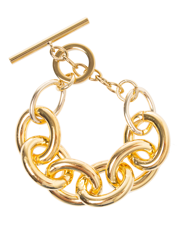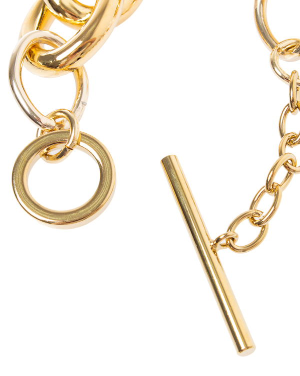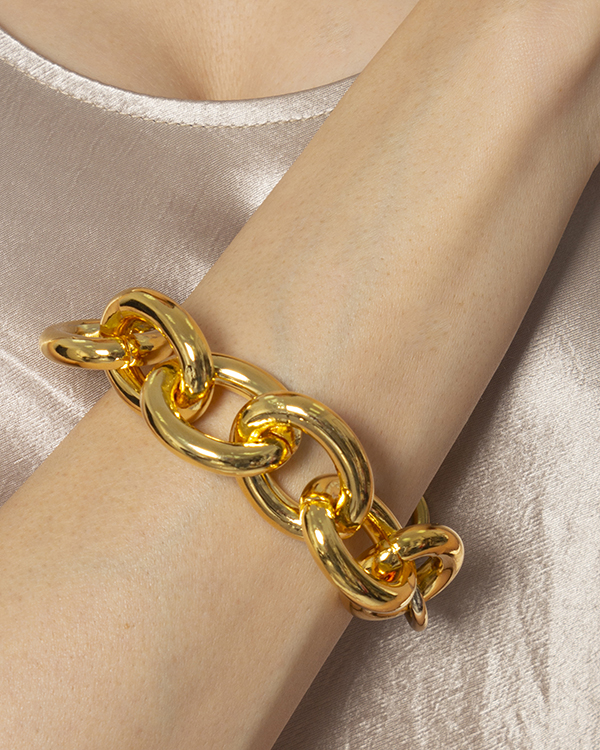Браслет-цепь из бижутерного сплава с покрытием золотого оттенка. Стильный аксессуар с удобной застежкой.