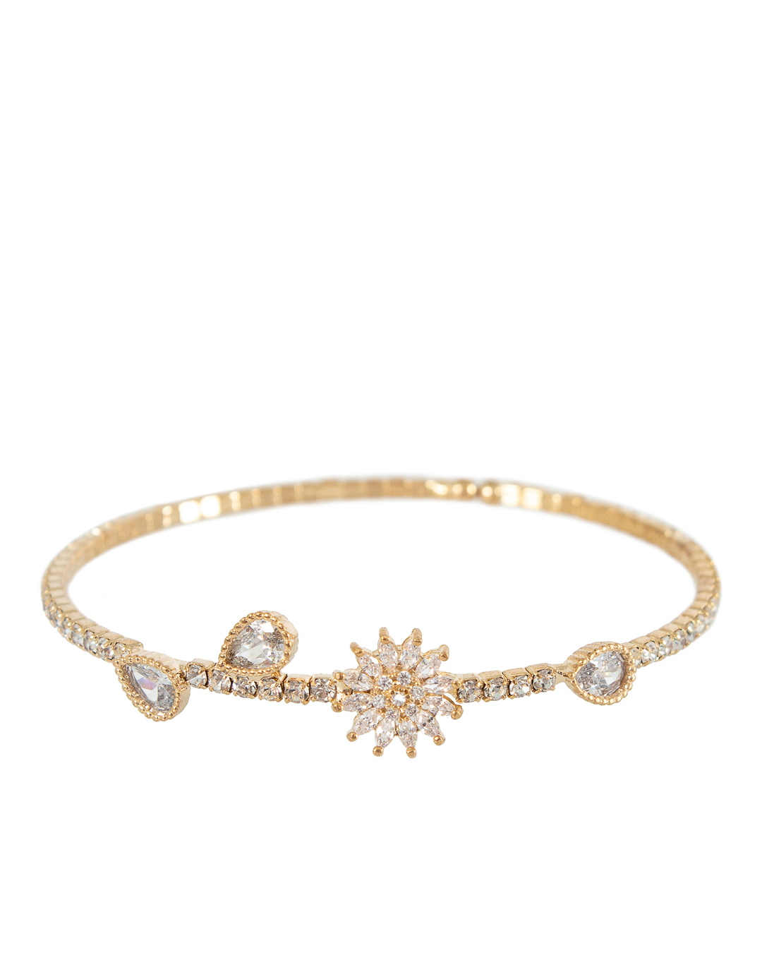 Открытый браслет Marina Fossati из бижутерного сплава с гальваническим покрытием. Украшение выполнено с отделкой кристаллами.