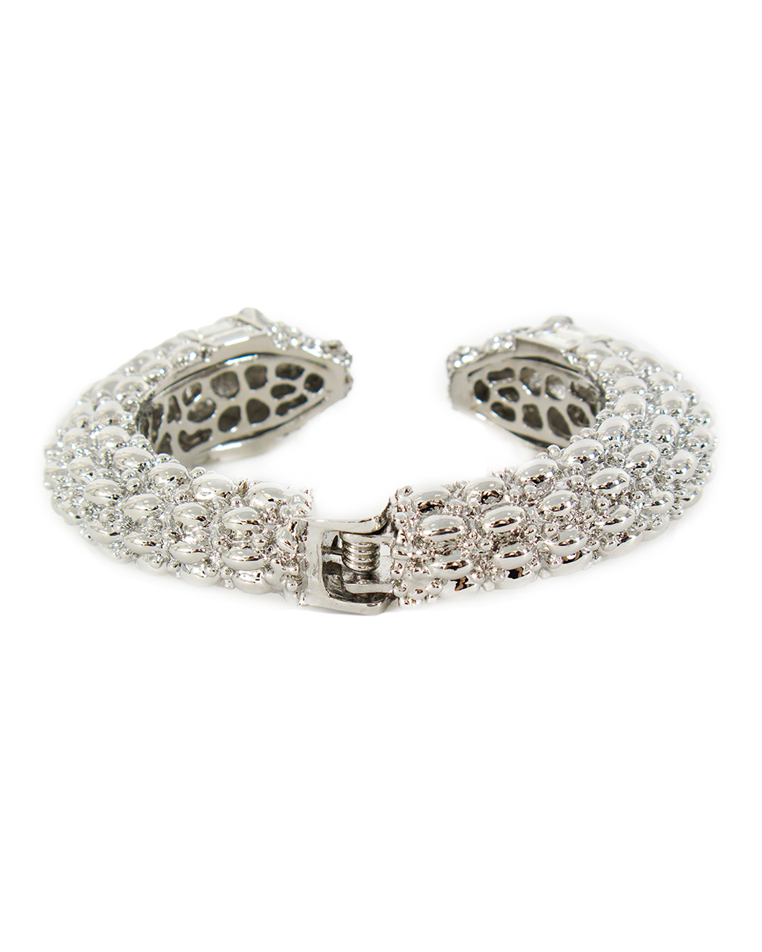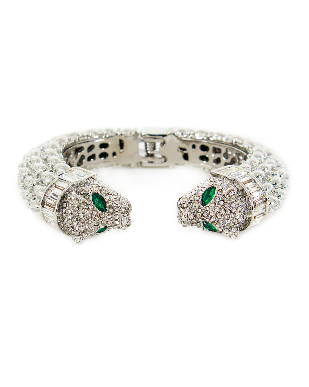 Браслет Marina Fossati из металического сплава с гальваническим гипоаллергенным покрытием. Декоративные элементы в виде головы пантеры украшены кристаллами.