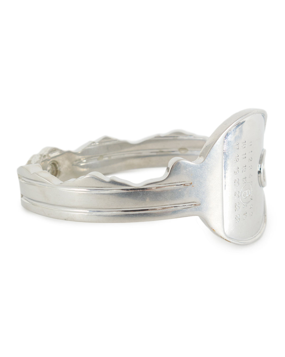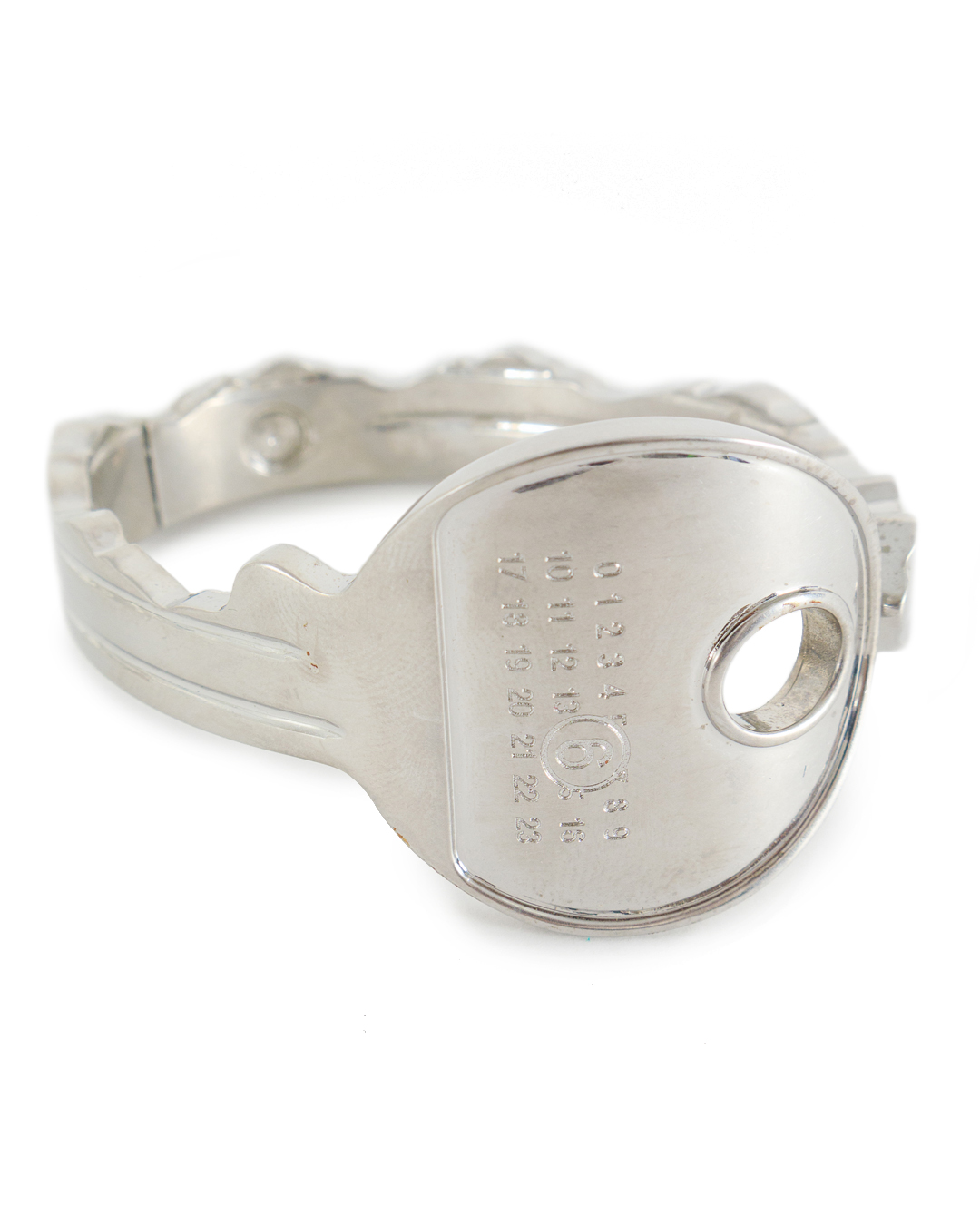 Браслет в виде дверного ключа выполнен из ювелирного сплава с гальваническим покрытием серебром. Спереди на ушке ключа выгравировали фирменный код бренда.