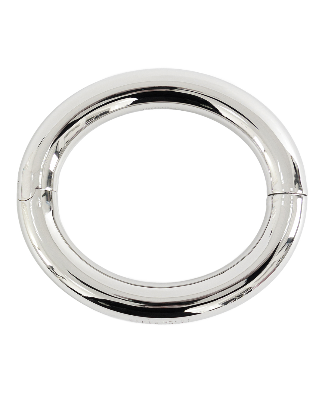 Этот браслет – воплощение минимализма и современного стиля. Изготовленный из высококачественного полированного серебристого металла, он излучает лаконичное сияние и универсальность. Его идеальная гладкость позолоченной поверхности подчеркивает простоту и утонченность дизайна. Форма браслета представляет собой классическое овалоподобное кольцо с мягкими изгибами, придающими изделию интерьерную лёгкость и комфорт в ношении. Эффектно отполированная поверхность создает зеркальный эффект, играя с окружающим светом и добавляя аксессуару объёма. Детали отделки выполнены с особым вниманием к мелочам – на внешней стороне браслета расположены изящные гравировки, добавляющие изделию индивидуальность и шарм. Эта деликатная отделка подчеркивает подлинность и эксклюзивность изделия, указывая на его дизайнерское происхождение. Идеальный для любого случая, этот браслет станет универсальным дополнением как к повседневному образу, так и к более формальному наряду, придавая владельцу грациозность и уверенный стиль.