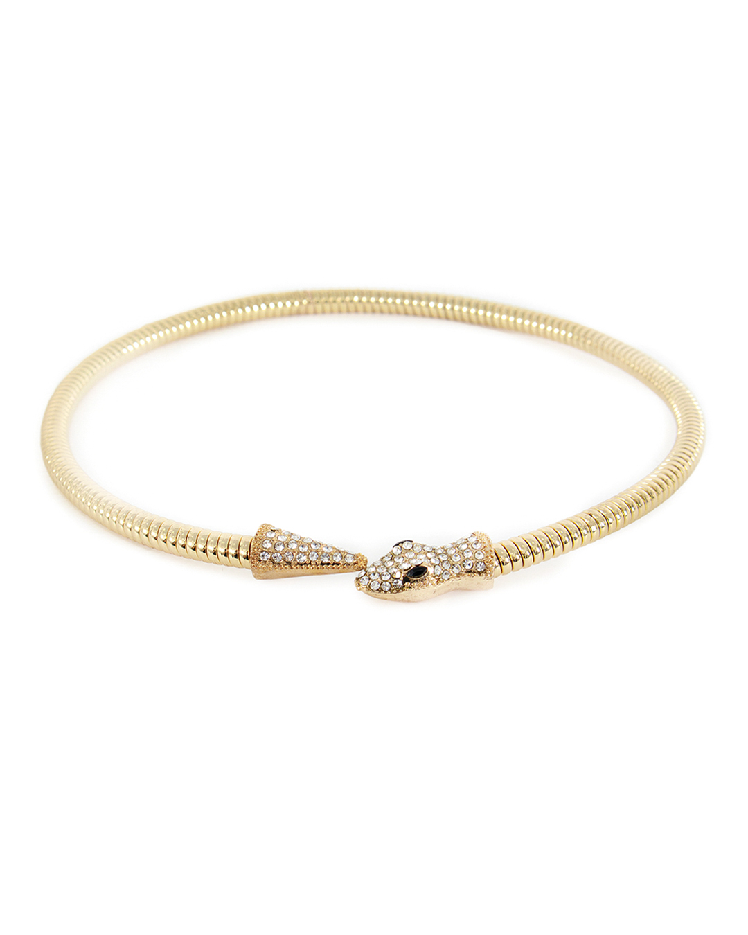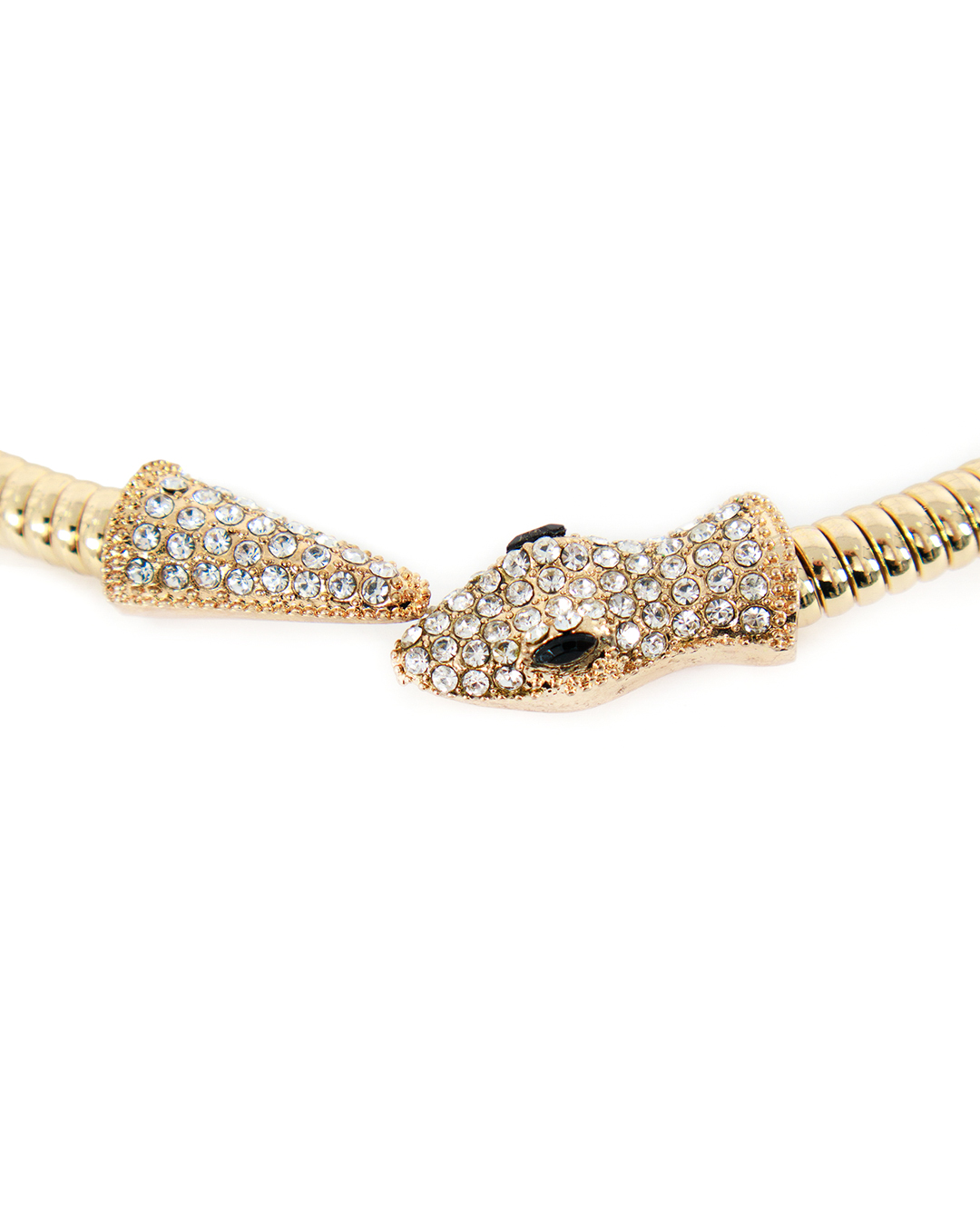 Чокер Marina Fossati из металического сплава с гальваническим гипоаллергенным покрытием. Декоративные элементы в виде головы и хвоста змеи украшены кристаллами.