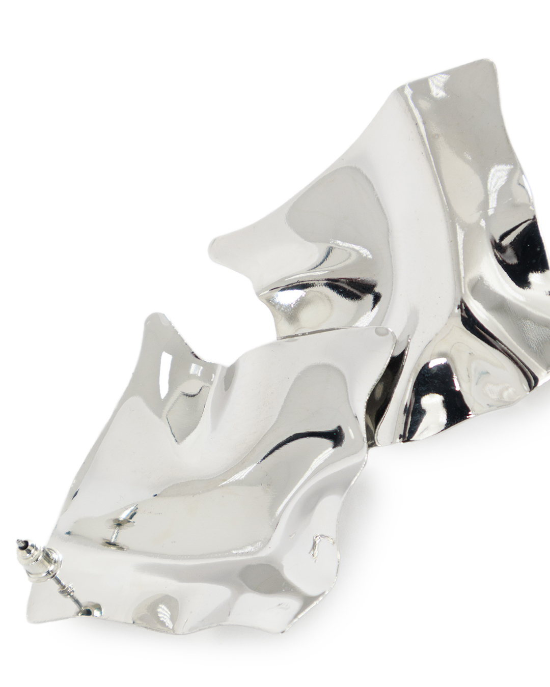 Эти серьги представляют собой выразительное сочетание современного искусства и классической утонченности. Их изысканная форма напоминает плавные линии скульптур, создавая впечатление лёгкости и движения. Серебристый металл с безупречно полированной поверхностью отражает свет, формируя чарующий эффект блеска. Гладкие изгибы и асимметричный дизайн придают изделиям динамику и объём, позволяя им быть ярким акцентом в любом образе. Эти серьги подчеркивают оригинальность и уверенность, создавая ослепительное первое впечатление. Изысканная отделка и скрытые застежки обеспечивают удобство носки, позволяя серьгам органично дополнять различные стили — от делового до вечернего. Эти серьги станут идеальным выбором для модниц, стремящихся выразить свою индивидуальность и добавить элемент художественного шика в свой гардероб, акцентируя внимание на безупречном вкусе и элегантности.
