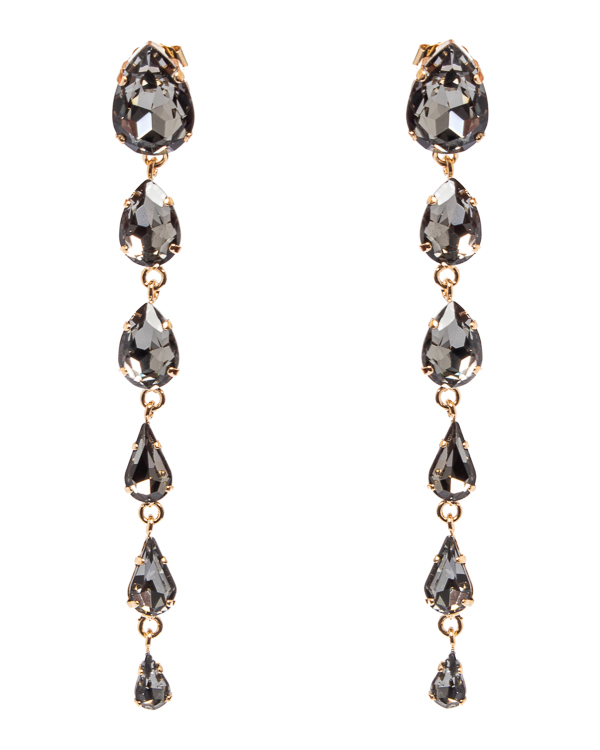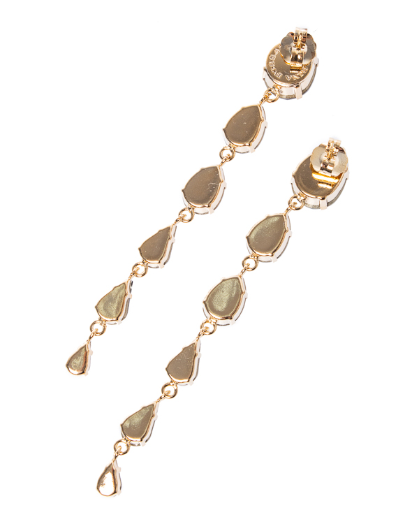Серьги в вечернем стиле выполнены из бижутерного сплава с гальваническим покрытием. Украшение с удобной застежкой-гвоздик дополнены отделкой фигурными кристаллами в виде капель.