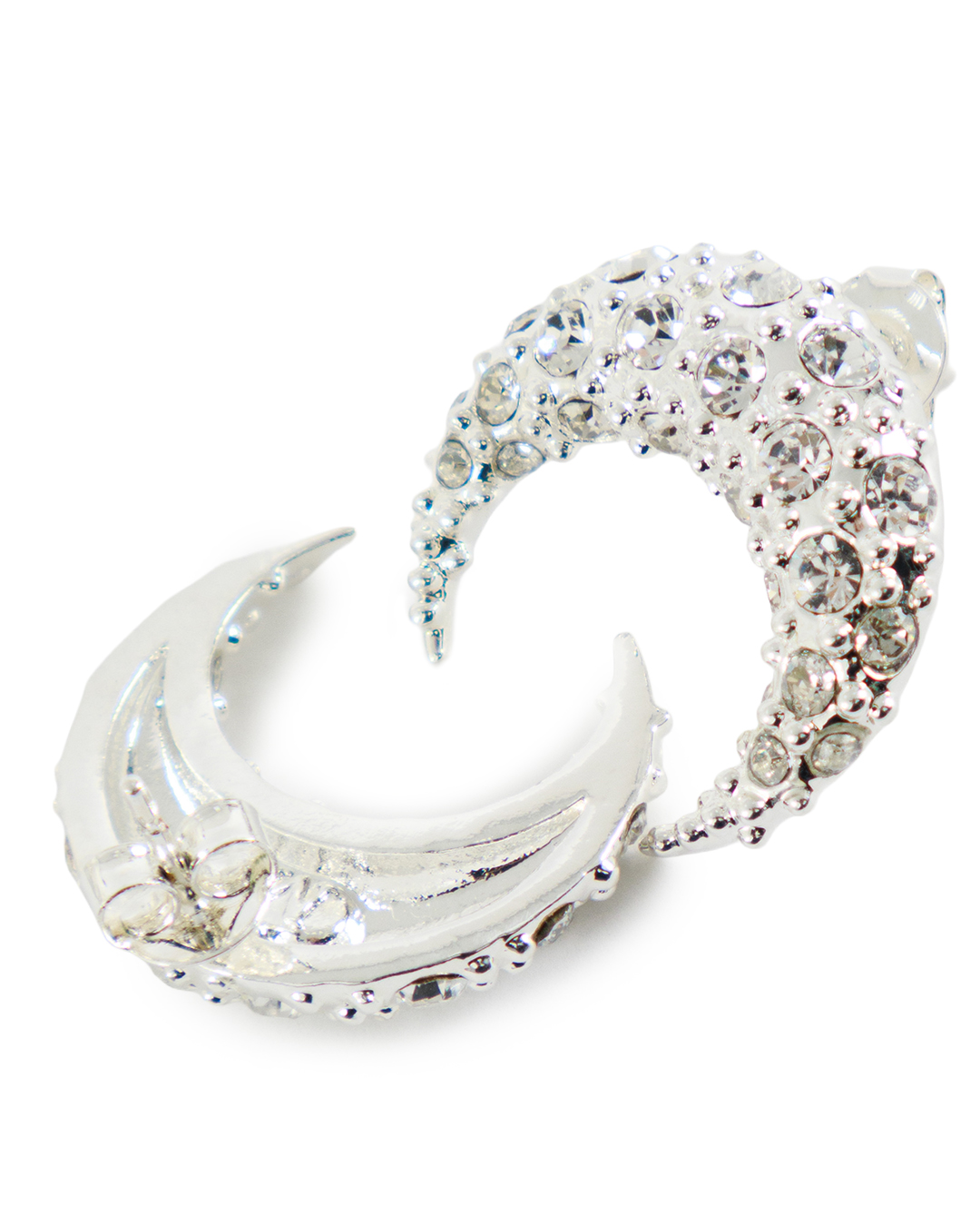 Эти элегантные серьги в форме полумесяца — воплощение утончённой роскоши и космического шарма. Их лаконичный, но выразительный дизайн притягивает взгляд, балансируя между минимализмом и эффектной декоративностью. Серебристый металл служит идеальной основой, подчёркивая чистоту линий и геометричность формы. Полумесяц словно застыл в моменте, создавая ощущение лёгкости и невесомости. Особую магию изделию придаёт россыпь прозрачных кристаллов, искусно инкрустированных по контуру. Их бриллиантовая огранка играет на свету, создавая завораживающий блеск — будто миниатюрные звёзды собраны воедино. Форма полумесяца не только эстетична, но и выразительна: она изящно обрамляет линию лица, подчёркивая скулы и придавая образу загадочность. Компактный размер делает серьги универсальными — они одинаково органично смотрятся как с лаконичным дневным образом, так и с вечерним нарядом. Сочетание благородного металла и сияющих кристаллов создаёт гармоничный контраст, который никогда не выйдет из моды. Эти серьги — не просто аксессуар, а выразительный штрих, способный превратить любой образ в произведение искусства. Идеальный выбор для тех, кто ценит сочетание классики и современных тенденций, любит акценты с характером и умеет ценить детали.