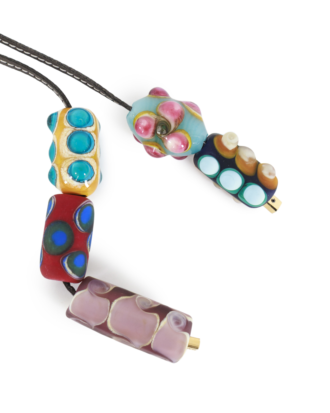 Ожерелье из стеклянных бусин ручной работы на шнуре из натуральной кожи с контрастной строчкой.