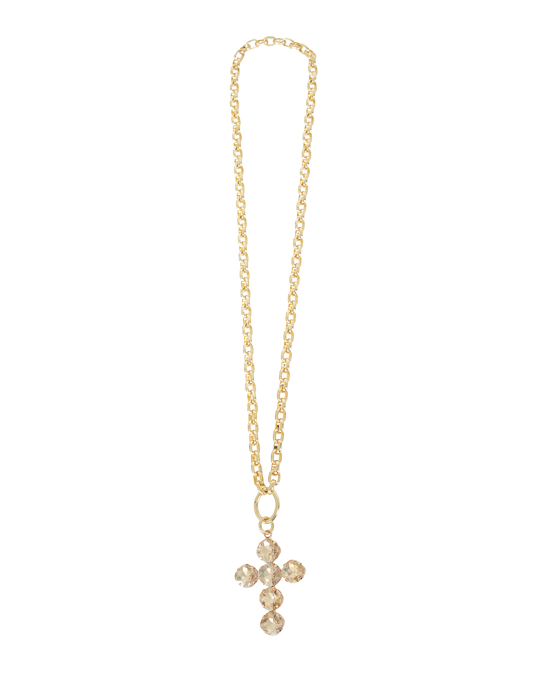 Цепочка Marina Fossati из бижутерного сплава с гальваническим покрытием. Украшение выполнено с подвеской-крест с отделкой кристаллами.