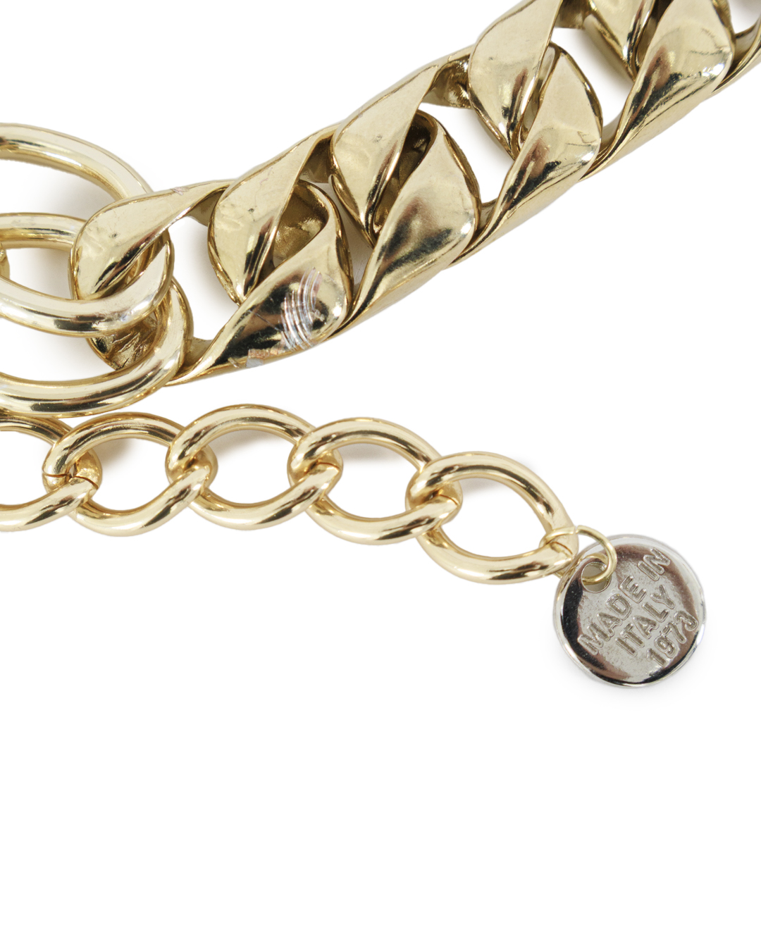 Это ожерелье представляет собой слияние классической элегантности и современного стиля. Оно выполнено из крупных звеньев с зеркальным блеском, которые создают эффект солидности и уверенности. Это украшение — истинный символ статусности и вкуса.  Плетение «кубина» придает изделию структурированность и ритм. Гладкая поверхность каждого звена ловит свет, отражая его искрящимися бликами, что придает ожерелью динамичность и глубину.  Замок украшения выполнен в виде карабина с дополнением регулируемой цепочки, что позволяет носить его на разной длине и добавляет функциональности. Завершающий акцент — медальон с гравировкой "Made in Italy", подчеркивает наследие качества и мастерства.  Такое украшение подчеркнет строгую линию делового костюма или станет изысканным акцентом вечернего образа, демонстрируя уверенность и стремление к совершенству.