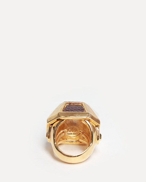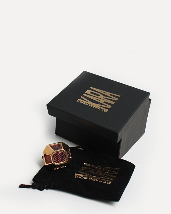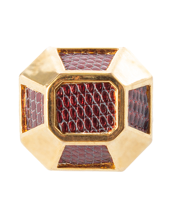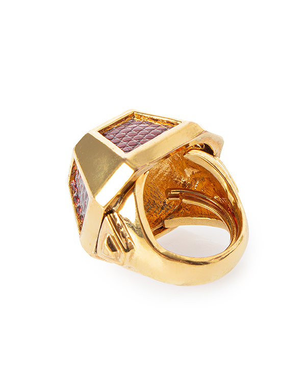 Кольцо из металла с покрытием и отделкой кожей ящерицы.
