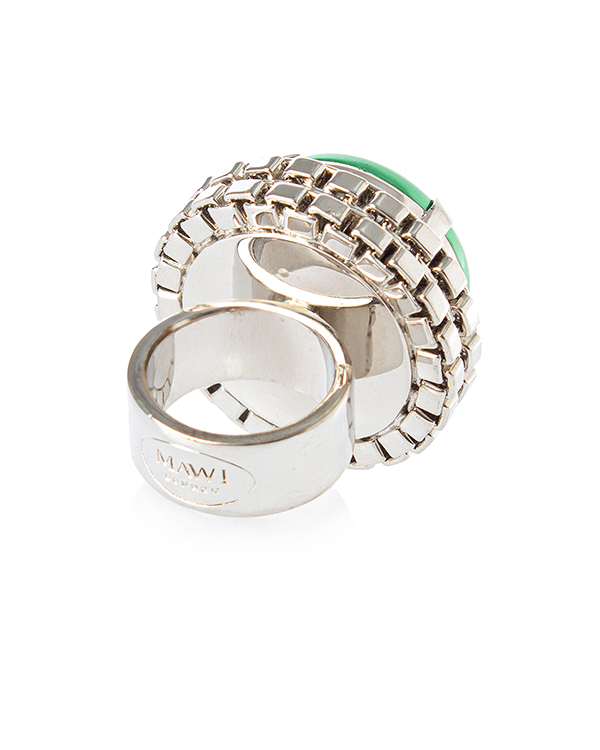 Кольцо из ювелирного сплава с покрытием и крупным кристаллом.