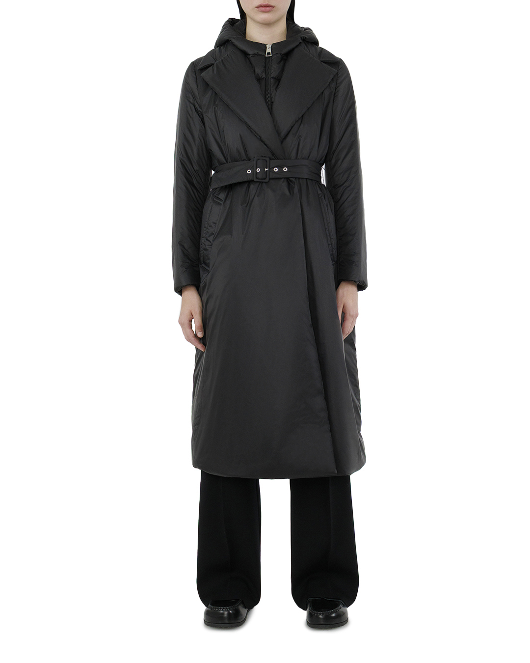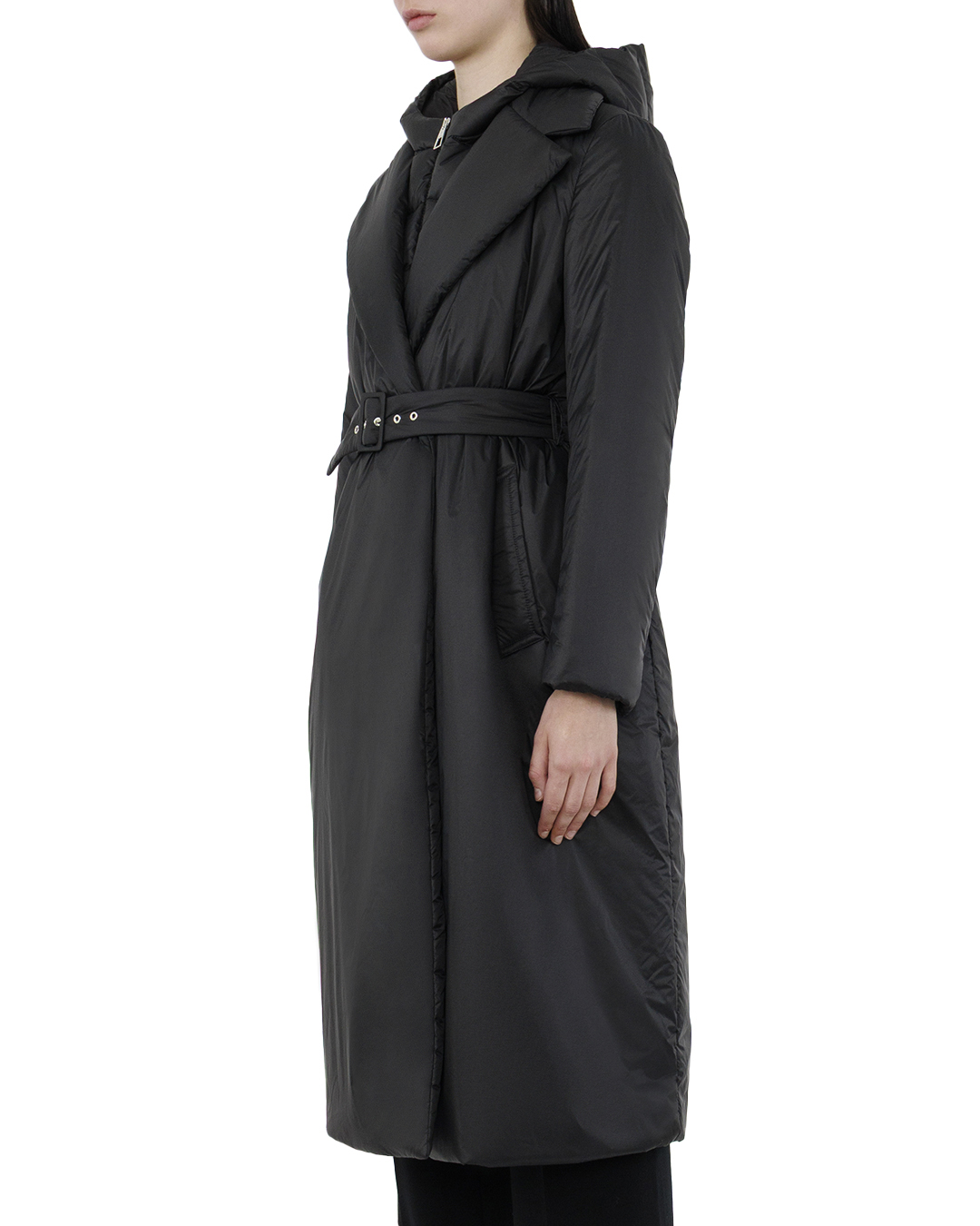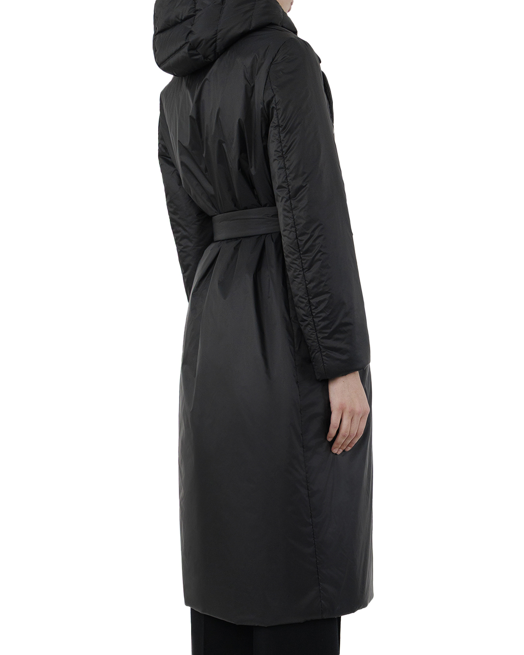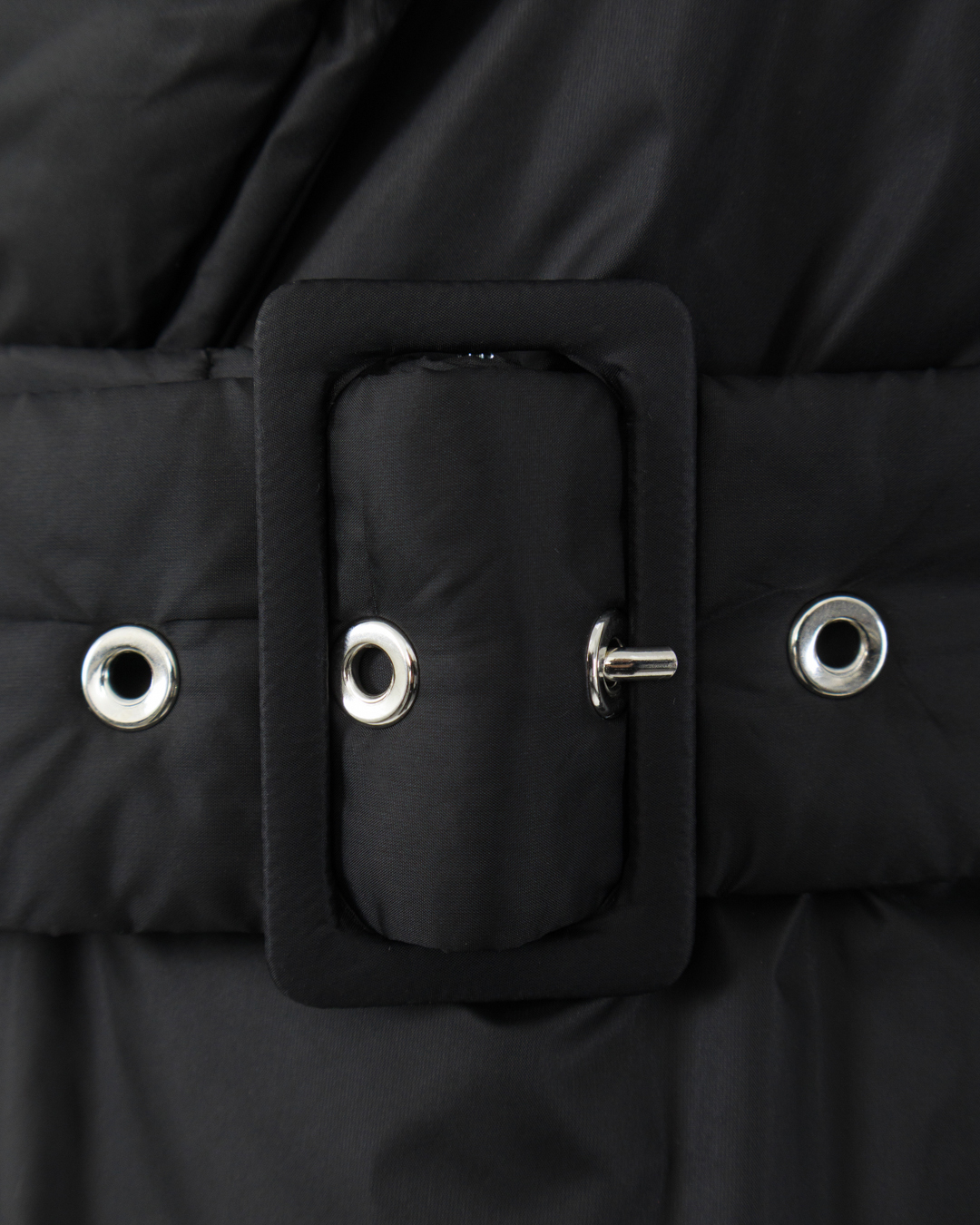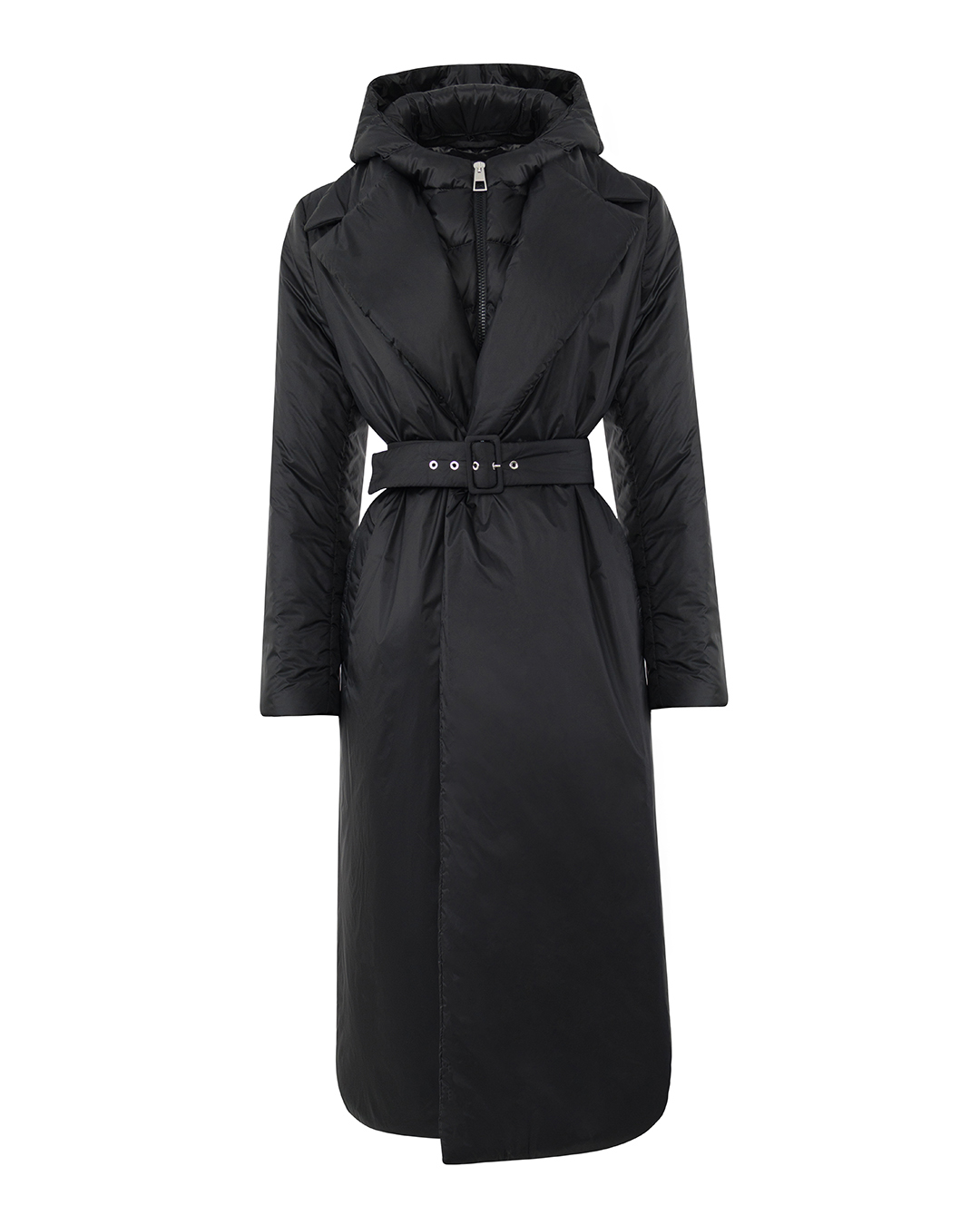 Это роскошное пальто — идеальное сочетание изысканности и функциональности, выполненное из плотного и водоотталкивающего материала. Чёрный цвет добавляет глубины и стильной универсальности, позволяя создать элегантный образ для любой ситуации. Элегантный асимметричный фасон с широкими лацканами придаёт современную динамику, гармонично сочетая классику и модные тенденции. Он подчёркивает утончённость и придает облику уверенности. Съёмный капюшон обеспечивает дополнительную защиту от непогоды и добавляет практичности, создавая образ, который подходит как для городских, так и для загородных прогулок. Регулируемый пояс с металлической пряжкой акцентирует талию, создавая женственный и грациозный силуэт, который легко адаптируется к индивидуальным предпочтениям. Изящная линия швов на пальто делает его ещё более элегантным и подчёркивает качество исполнения. Скрытая застёжка молния сохраняет минималистичный стиль и обеспечивает удобство и тепло. Это пальто не только согреет в холодные дни, но и станет стильной основой вашего зимнего гардероба, подчеркивая ваш уникальный вкус и приверженность качеству.