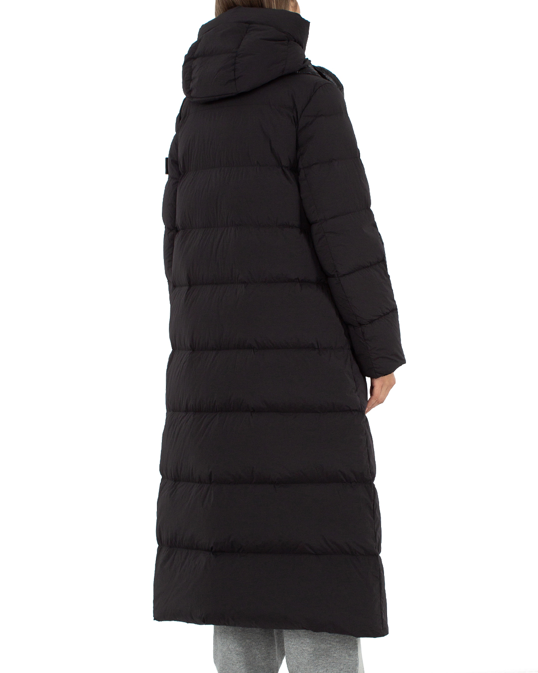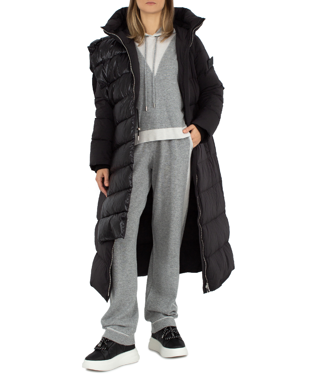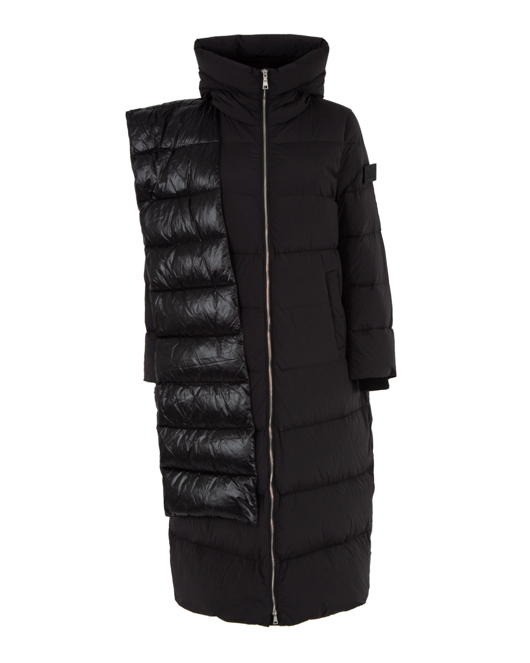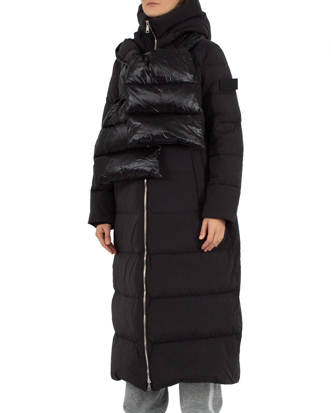Пальто-пуховик ADD из прочного нейлона утеплено пухом и пером. Модель прямого дутого силуэта с застежкой на молнию. Пуховик дополнен карманами и съемным дутым шарфом из глянцевого нейлона.