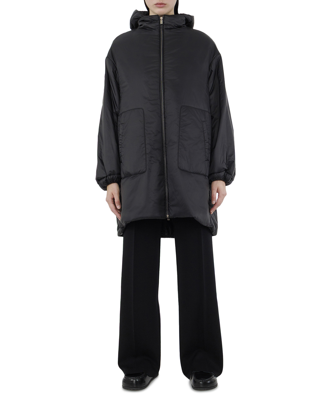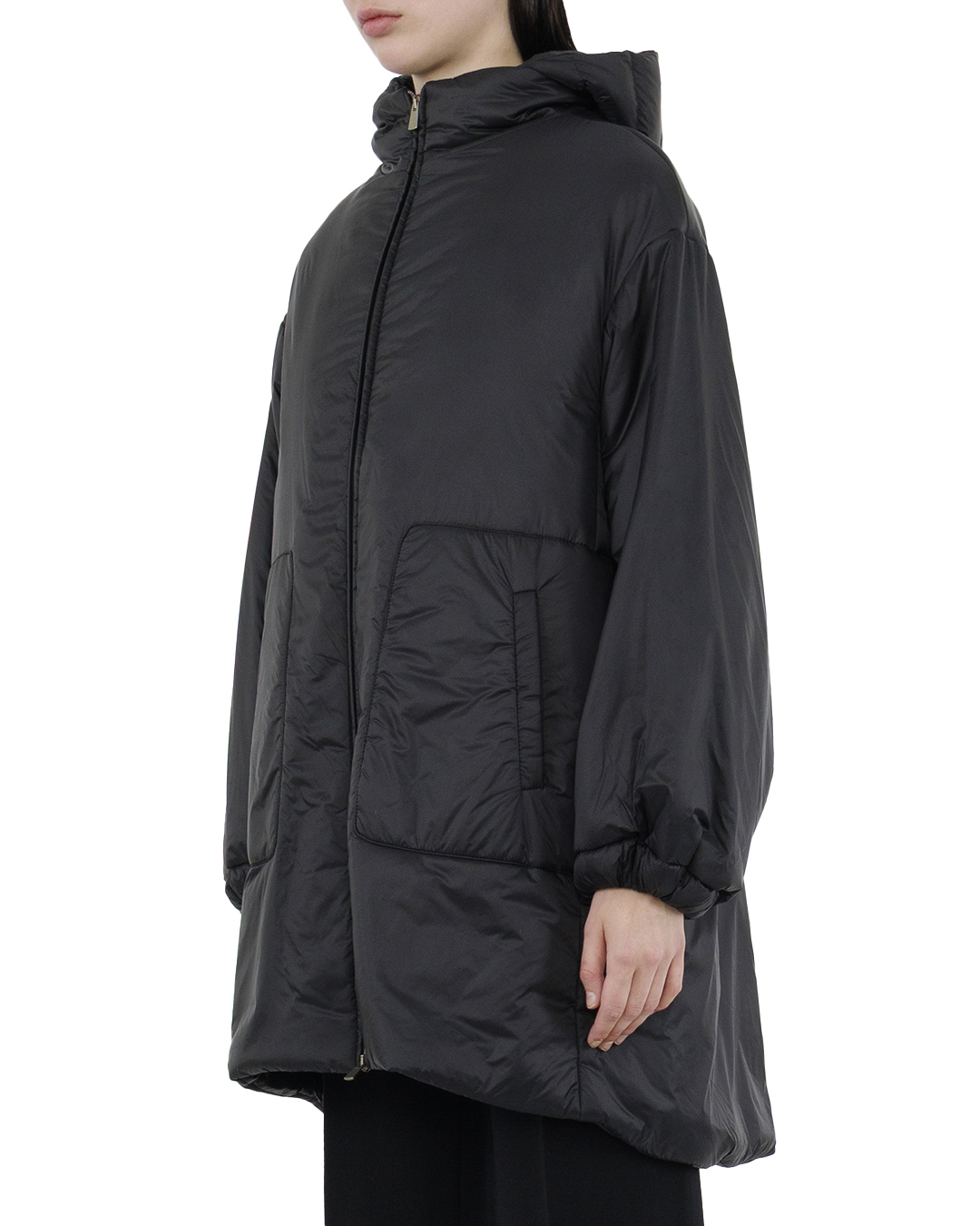 Этот стильный пуховик — образец современного дизайна и исключительного комфорта, идеальный для холодного сезона. Выполненный из блестящей, водоотталкивающей ткани насыщенного черного цвета, он добавляет образу изысканности и элегантности. Капюшон с высокой горловиной обеспечивает защиту от ветра и влаги, создавая уют и теплое обрамление для лица. Центральная молния с двойным бегунком не только функциональна, но и добавляет современный акцент в общий дизайн. Эластичные манжеты на рукавах сохраняют тепло и удобство в движении, что особенно актуально в морозные дни. Просторный крой обеспечивает свободу движений и позволяет носить пуховик поверх объемных свитеров. Большие накладные карманы с аккуратной прострочкой обеспечивают дополнительное тепло для рук и практичность хранения необходимых мелочей. Линии швов, расположенные анатомически грамотно, подчеркивают высокое качество исполнения и внимание к деталям. Этот пуховик идеально подходит для активной городской жизни, сочетая в себе стиль, тепло и функциональность, создавая завершенный и модный образ.