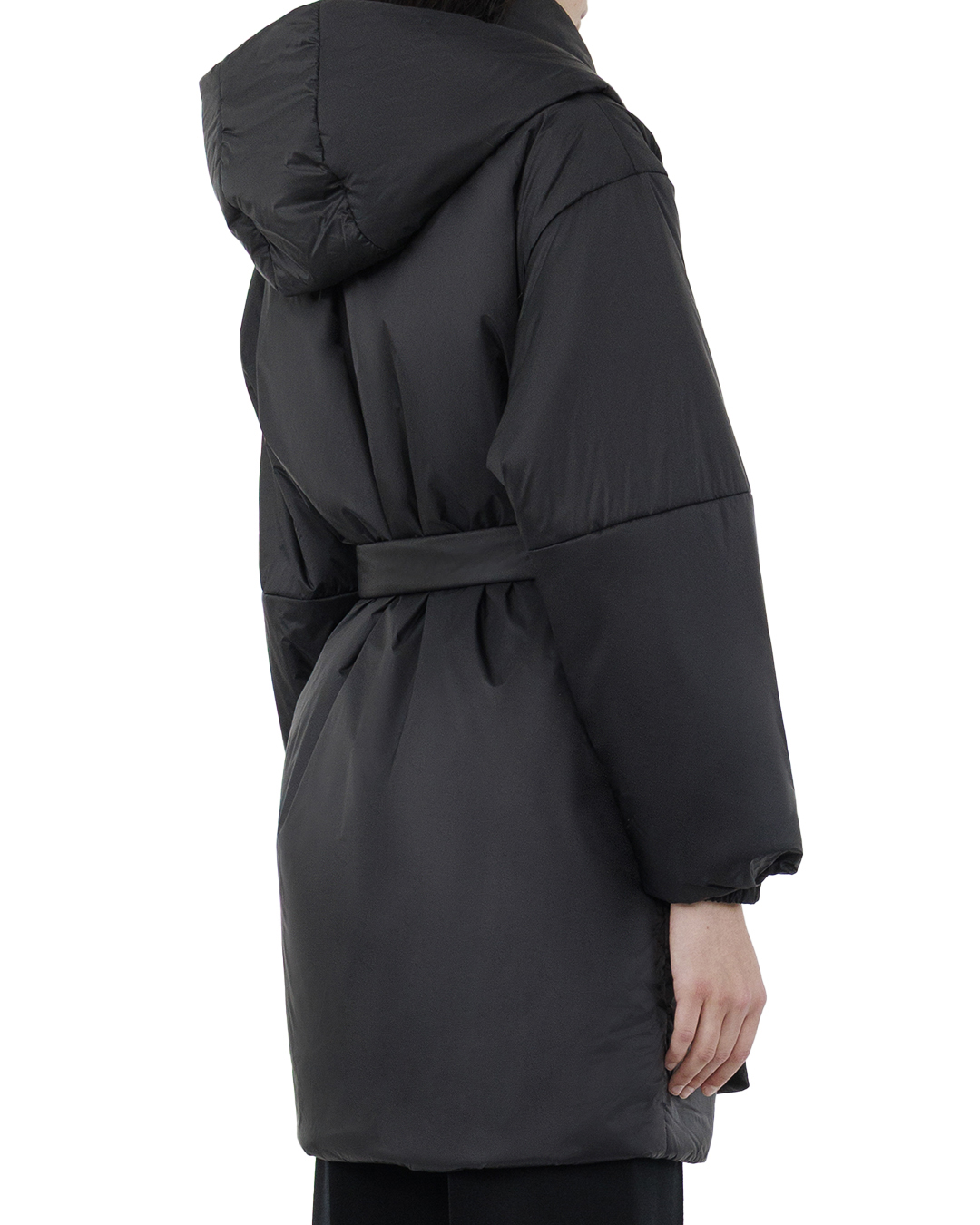 Этот изысканный пуховик представляет собой идеальное сочетание стиля и функциональности, создавая впечатляющий образ в холодное время года. Выполненный из гладкой, блестящей ткани насыщенного черного цвета, он придаёт облику динамичность и элегантность. Объёмный воротник с высокой посадкой не только защищает от ветра, но и добавляет эффектный дизайнерский акцент, подчёркивая утонченность силуэта. Скрытая застёжка на молнию обеспечивает минималистичный и изысканный вид, сохраняя при этом комфорт и тепло. Широкий пояс, завязывающийся на талии, подчёркивает женственный силуэт и позволяет регулировать посадку, создавая индивидуальный стиль. Этот элемент добавляет динамики в общий лаконичный дизайн. Вместительные накладные карманы с аккуратными швами не только добавляют практичности, но и создают текстурный контраст, обеспечивая баланс между эстетикой и функциональностью. Этот пуховик, благодаря своему универсальному дизайну, станет ключевым элементом вашего зимнего гардероба, обволакивая в уют и подчёркивая вашу индивидуальность и следование современным тенденциям.