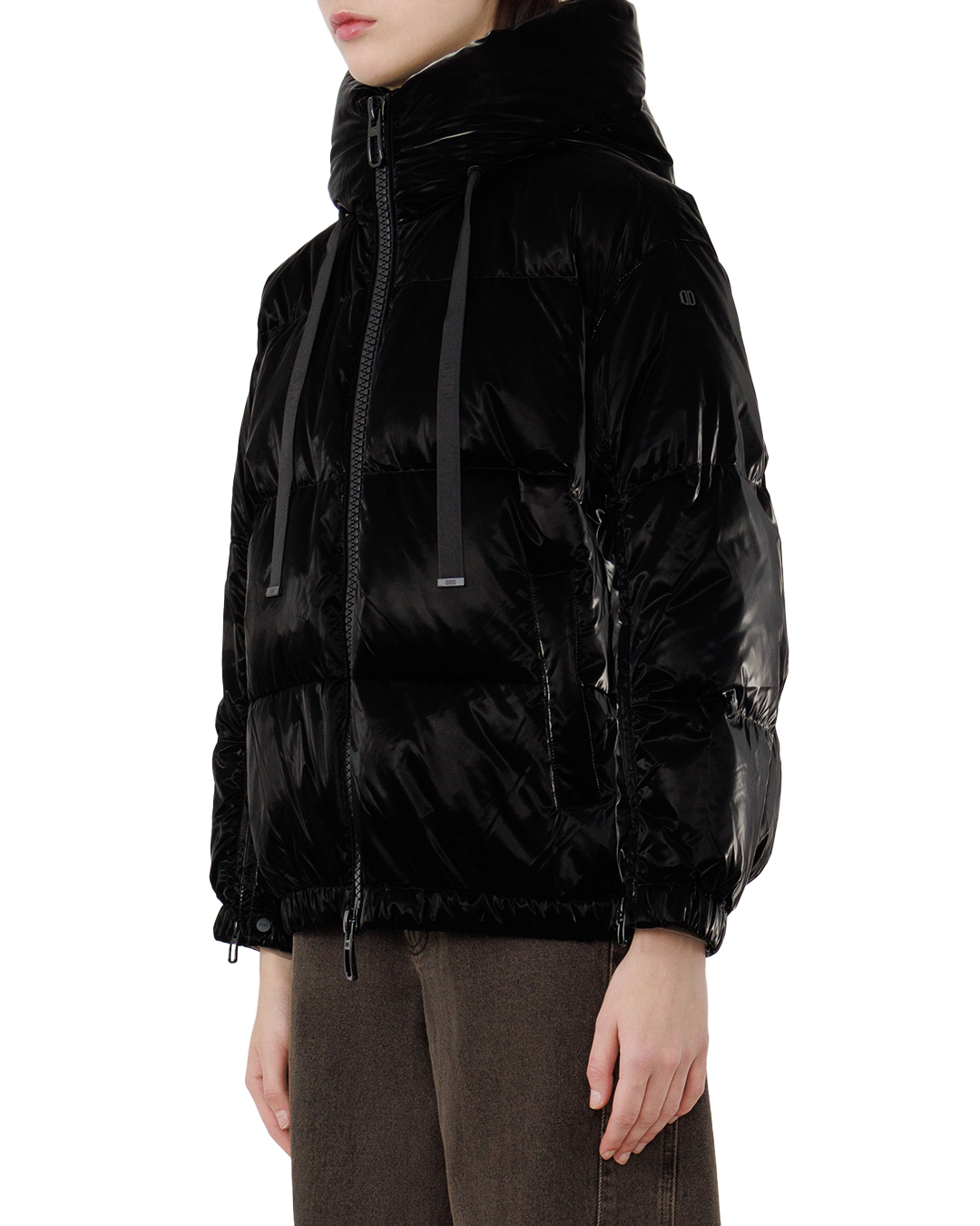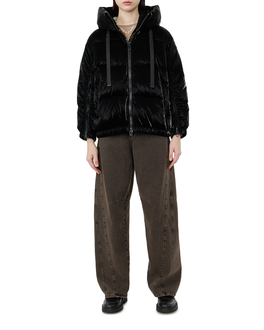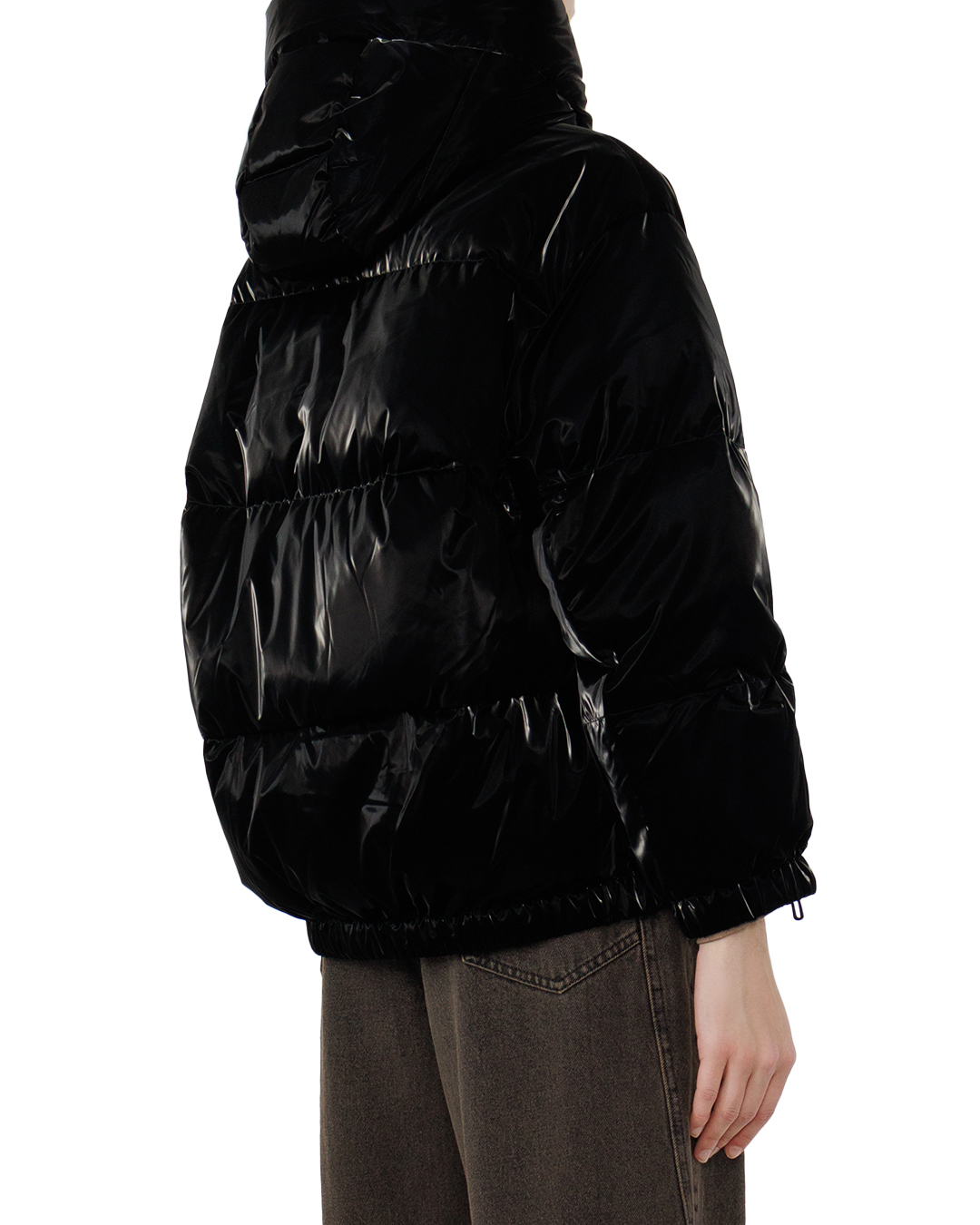 Этот уникальный черный пуховик воплощает в себе смелость и современный стиль. Глянцевая ткань добавляет эффектности и притягивает внимание, придавая образу динамичность и элегантность. Силуэт пуховика прямой, что обеспечивает комфорт и легкость в движении. Объемный капюшон с регулируемыми шнурками не только защищает от непогоды, но и добавляет изделию модный акцент, подчеркивая урбанистический стиль. Горизонтальная простежка создает эффектный ритм и помогает удерживать форму, сохраняя тепло. Центральная застежка-молния выполнена в контрастном оттенке, что добавляет элемент интриги и завершенности в общий дизайн. Эластичные манжеты и подол обеспечивают надежную защиту от ветра, подчеркивая заботу о деталях и удобстве. Боковые карманы удобно вписываются в общий стиль, оставаясь практически незаметными и добавляя функциональности. Этот пуховик станет ярким акцентом в зимнем гардеробе, идеально подходя как для городского шика, так и для выхода за пределы привычного образа. Средоточие актуальных тенденций и практичности делает его незаменимым выбором для современного стиля.