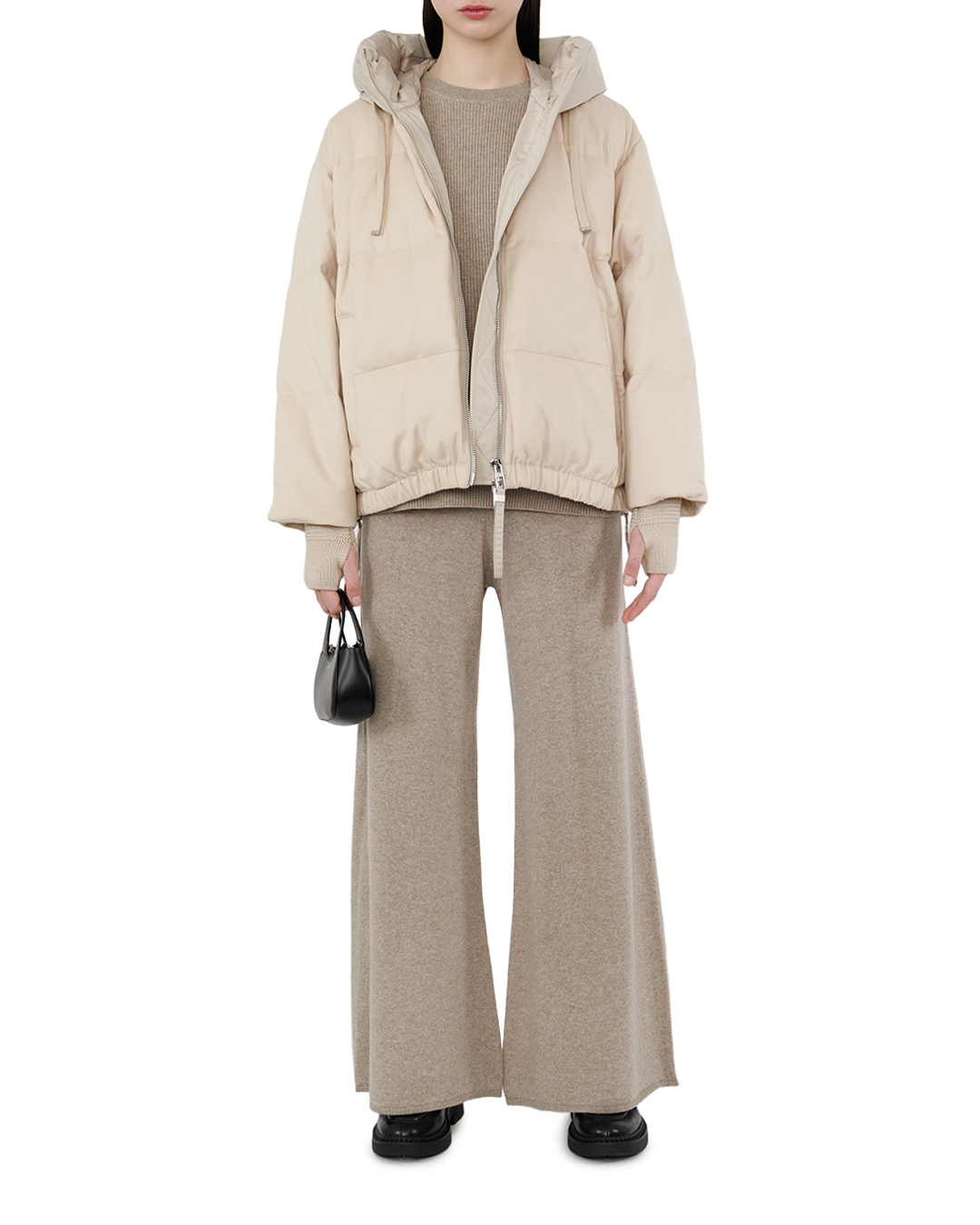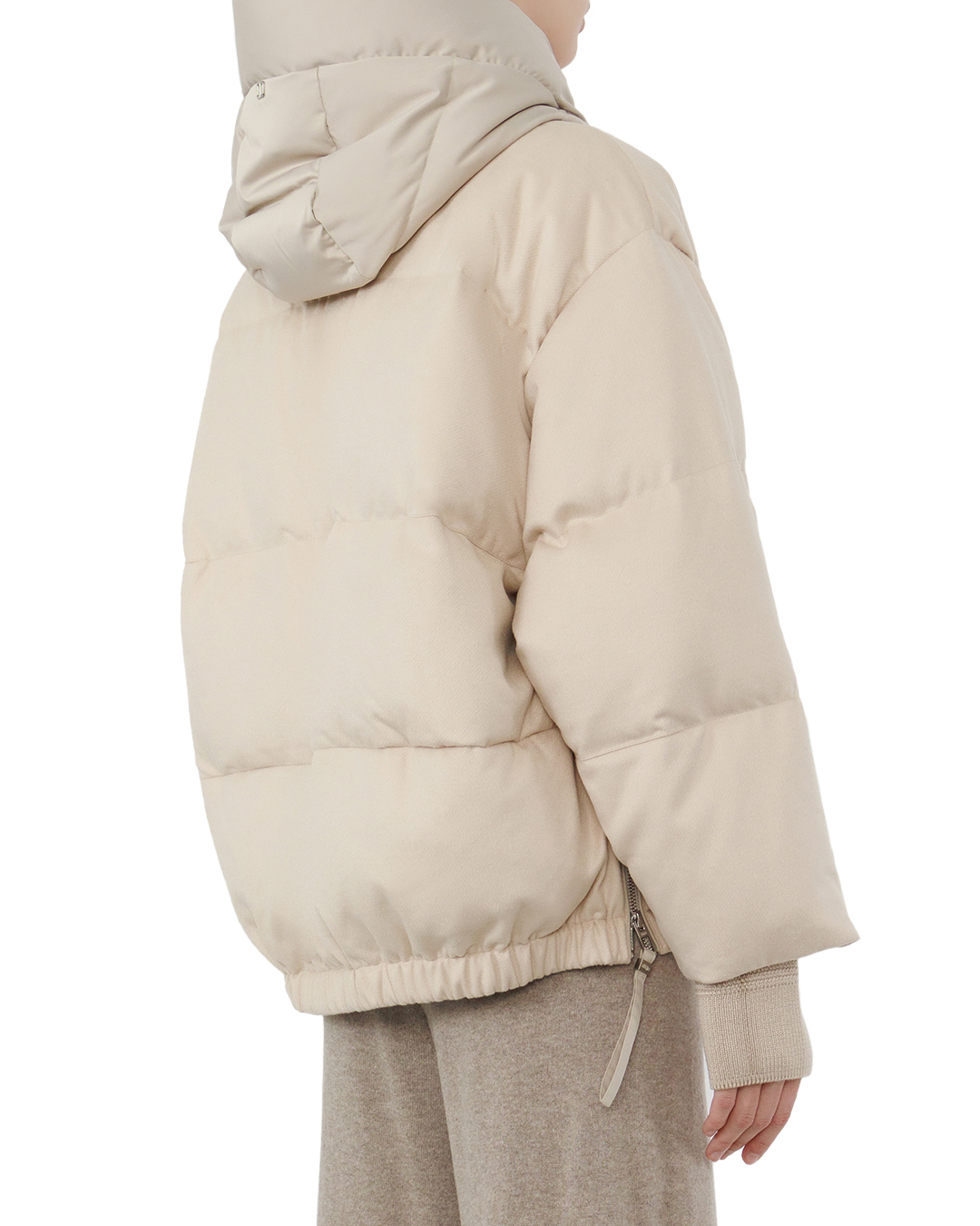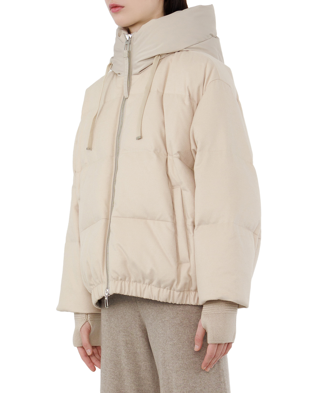 Этот стильный пуховик в изысканном бежевом оттенке представляет собой идеальное сочетание современного дизайна и функциональности. Его мягкая, слегка оверсайз форма создает актуальный силуэт, обеспечивая комфорт и защиту от холода. Верхняя часть изделия украшена капюшоном, который выделяется своим объёмом и плавными линиями, добавляя модели динамичный акцент. Регулируемые шнурки на капюшоне позволяют адаптировать его под индивидуальные предпочтения, добавляя функциональности. Горизонтальная простежка создает четкие линии, обеспечивающие равномерность наполнения и визуальную текстурированность. Центральная застежка-молния с яркими декоративными элементами добавляет динамики и завершает образ. Объемные карманы, расположенные спереди, не только функциональны, но и служат стильным элементом отделки, сохраняющим общую эстетику минимализма. Манжеты и подол на резинке обеспечивают идеальную посадку и комфортное прилегание. Этот пуховик станет универсальным элементом в зимнем гардеробе, предлагая стиль и тепло в любых условиях. Отлично подходящий как для городских прогулок, так и для активного отдыха на свежем воздухе, он подчеркнет ваш уверенный и модный облик.