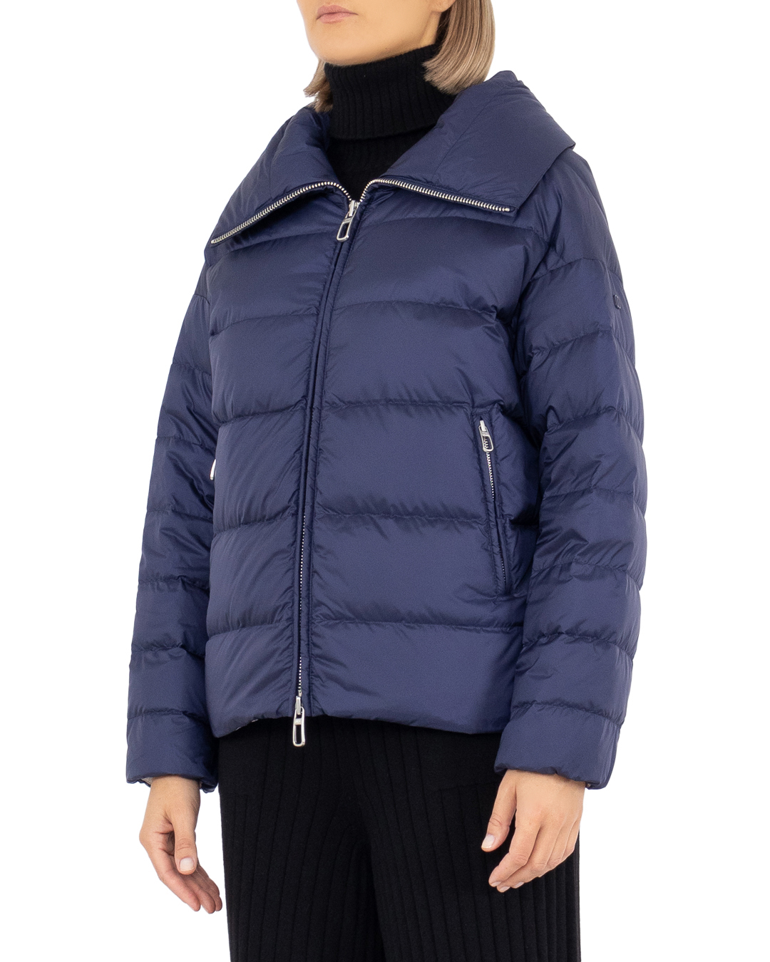 Стеганый пуховик из нейлона на утином пуху разбавленным пером, дополнили двумя прорезными карманами. Модель застегивается молнией. Высокий воротник защитит Вас в ветреную погоду.