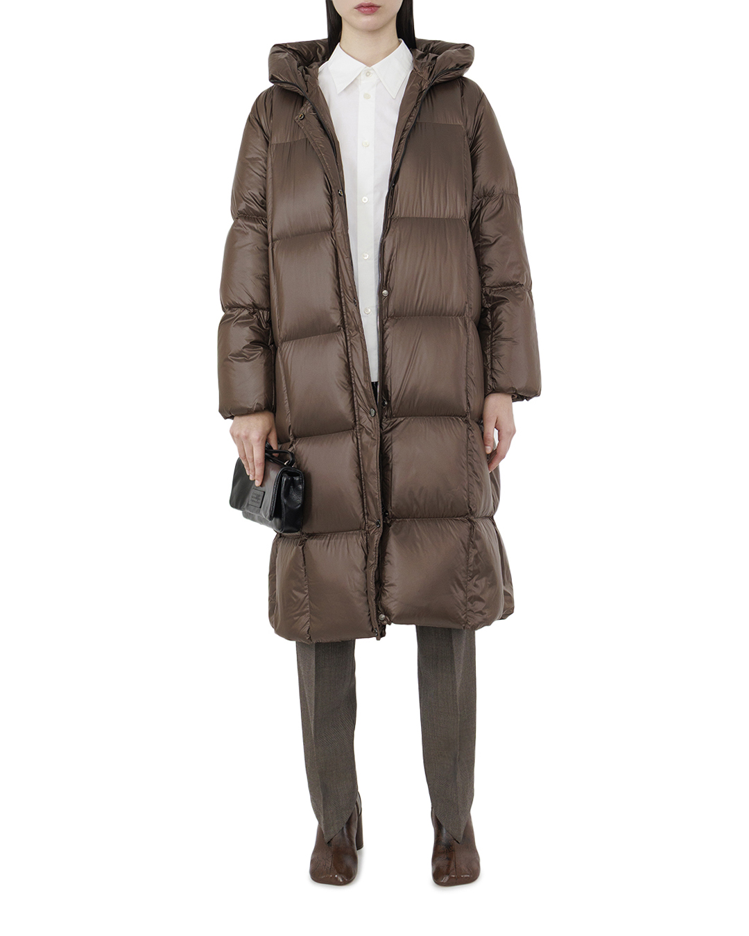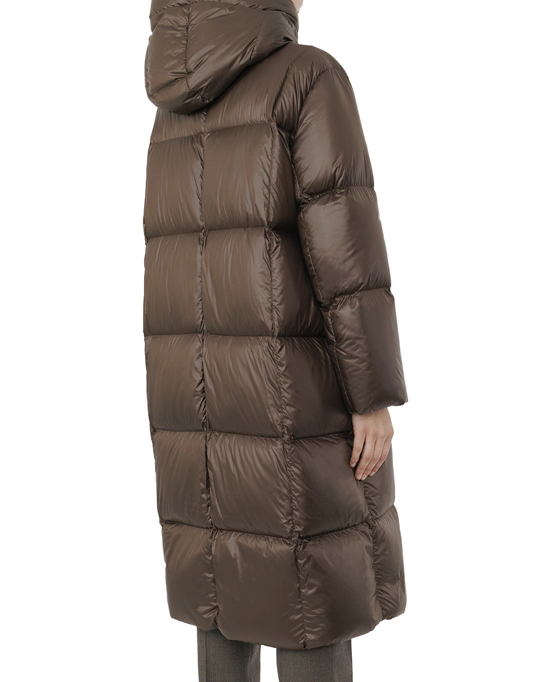 Этот пуховик — воплощение комфорта и элегантности в зимней моде. Выполненный из высококачественного легкого материала с бархатистой текстурой, он обеспечивает стиль и тепло в холодные дни. Шоколадный оттенок добавляет образу свежести и универсальности. Удлинённый силуэт с чётко выраженной геометрией пуховых панелей подчёркивает фигуру, сохраняя при этом максимальное тепло. Капюшон, обеспечивающий дополнительную защиту от ветра и снега, добавляет функциональности и завершённости дизайну. Двусторонняя застёжка-молния и кнопки обеспечивают комфорт и удобство, позволяя регулировать степень утепления. Контрастные металлические кнопки служат стильным акцентом, подчёркивая утончённый минимализм модели. Изящные боковые карманы гармонично вписываются в общий дизайн, сохраняя функциональность и практичность. Этот пуховик станет неотъемлемой частью вашего зимнего гардероба, подчёркивая ваш вкус и стремление к абсолютному комфорту.