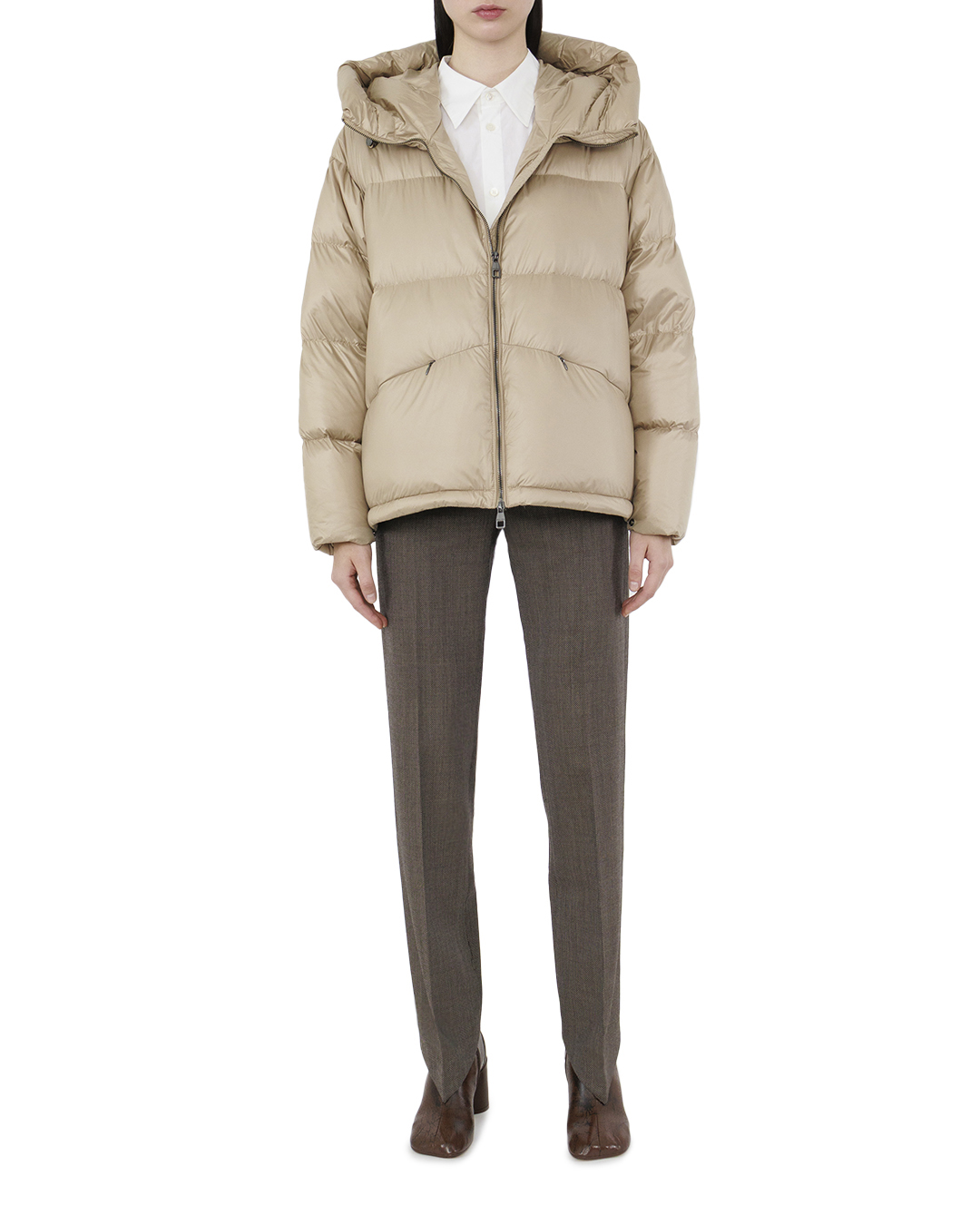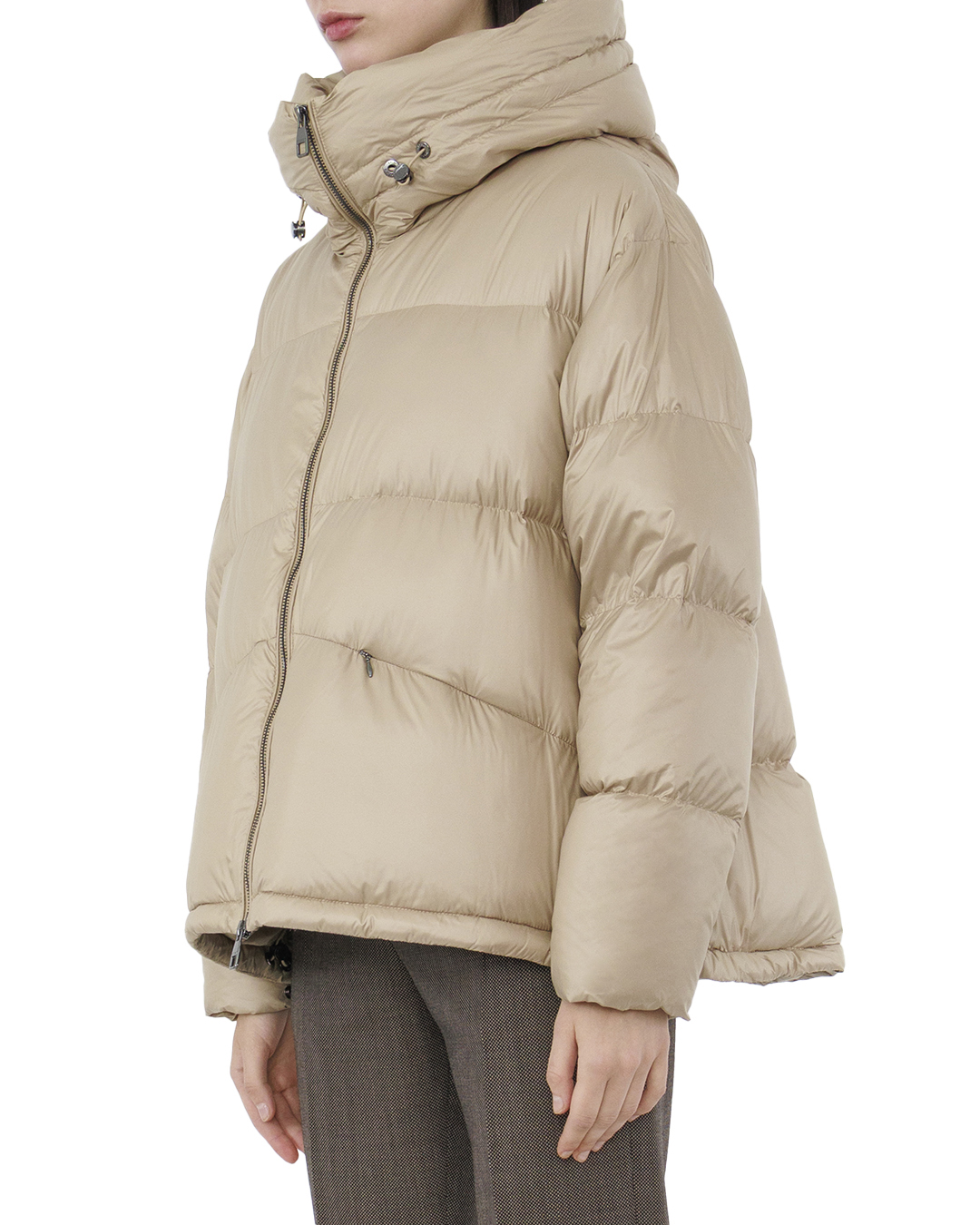 Этот стильный пуховик — идеальное сочетание функциональности и модного дизайна. Выполненный из прочного, водоотталкивающего материала с лёгким блеском, он дарит комфорт и защиту в холодную погоду. Нежный бежевый оттенок создает впечатление воздушности и лёгкости, добавляя элегантности всему образу. Объемный крой в стиле “oversize” обеспечивает свободу движений и подчёркивает актуальный городской стиль. Капюшон с утяжкой добавляет практичности и позволяет адаптироваться к изменяющимся погодным условиям, а также формирует изысканную линию воротника. Застёжка-молния по всей длине и скрытые кнопки позволяют легко изменять уровень утепления, при этом создавая чистый силуэт. Боковые карманы с застежками на молнии обеспечивают надежное хранение мелочей и добавляют изделию функциональности. Тщательно продуманные детали и высокого качества фурнитура подчёркивают долговечность и эксклюзивность этого пуховика. Этот модный и теплый пуховик станет идеальным выбором для современных, уверенных в себе людей, стремящихся выразить свой уникальный стиль.